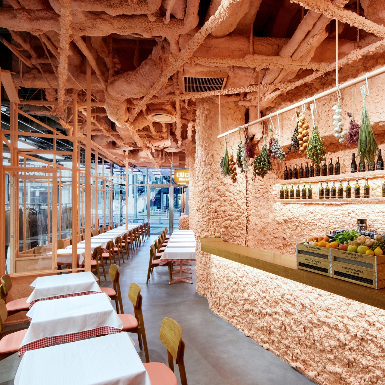 新たに併設されたレストラン「Cucina Diesel Farm (クッチーナ ディーゼル ファーム)」では、DIESEL 創始者 Renzo Rosso (レンツォ・ロッソ) の故郷、イタリア北東部に店をかまえる「Cucina Diesel Farm」で提供されている伝統的な料理を使用し、Renzo Rosso が30年前から所有する「ディーゼル・ファーム」で生産されたワインも展開される。