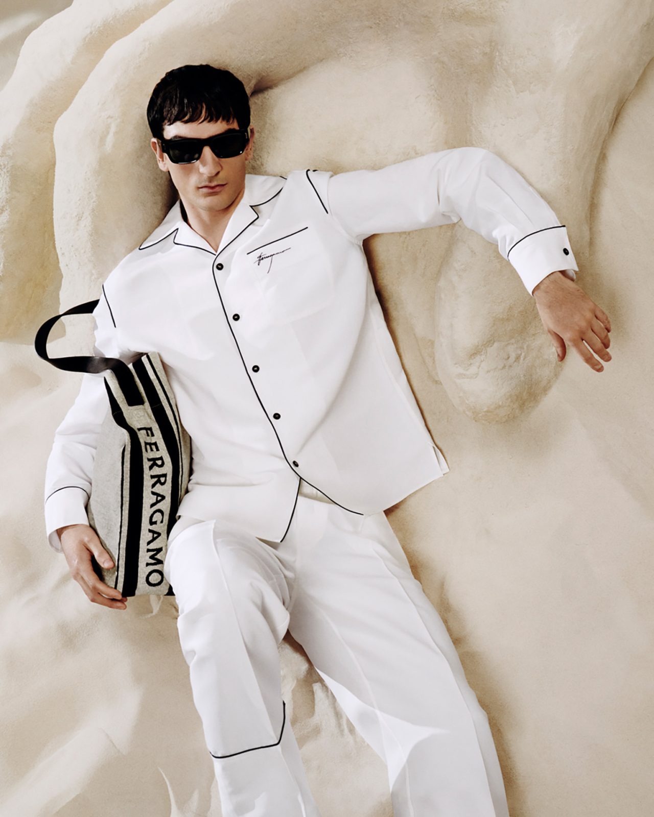 エフォートレスなパジャマルックやカフタンドレスもラインナップ。飾らない雰囲気のなかに、FERRAGAMO らしい確かな仕立てが輝きを放つ。