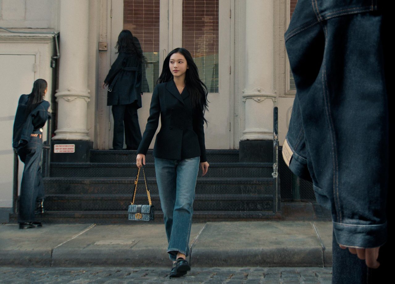 韓国の5人組 K-POP ガールズグループである NewJeans (ニュージーンズ) のメンバーである Haerin がニューヨークの象徴的な街角で、「Dior ブックトート」やエターナルな「サドル」「ディオール トゥジュール」に加え、「30 モンテーニュ」ラインから「イースト ウェスト」や「ミニヴァニティ」などの新たなシグネチャーとなる素材で飾られたアイテムを装う。