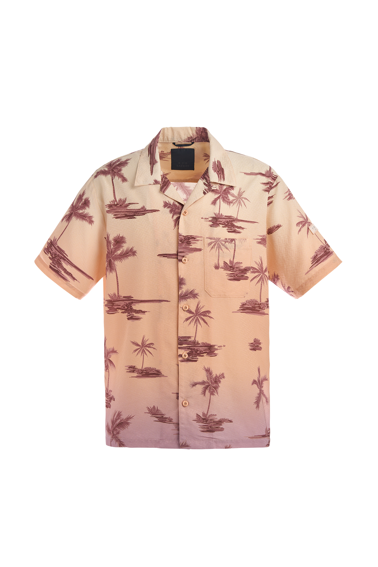 今回のコレクションの象徴となるのは、サンセットの移り変わりを表現したアイテム。オレンジからパープルに変化するグラデーションに、オリジナルのパームツリー柄を描き上げたクラシックなデザインが目を惹く。シャツやパンツ、ハットが展開され、オレンジを基調とした華やかな雰囲気でリゾート感を演出する。そのほか、TATRAS の「T」のモノグラム柄を織りあげたパーカーや、胸元に D カンを施したレーヨン素材のシャツのセットアップ、高品質コットンを使用した、表面に凹凸の出る鹿の子編みのポロシャツなどがラインナップ。