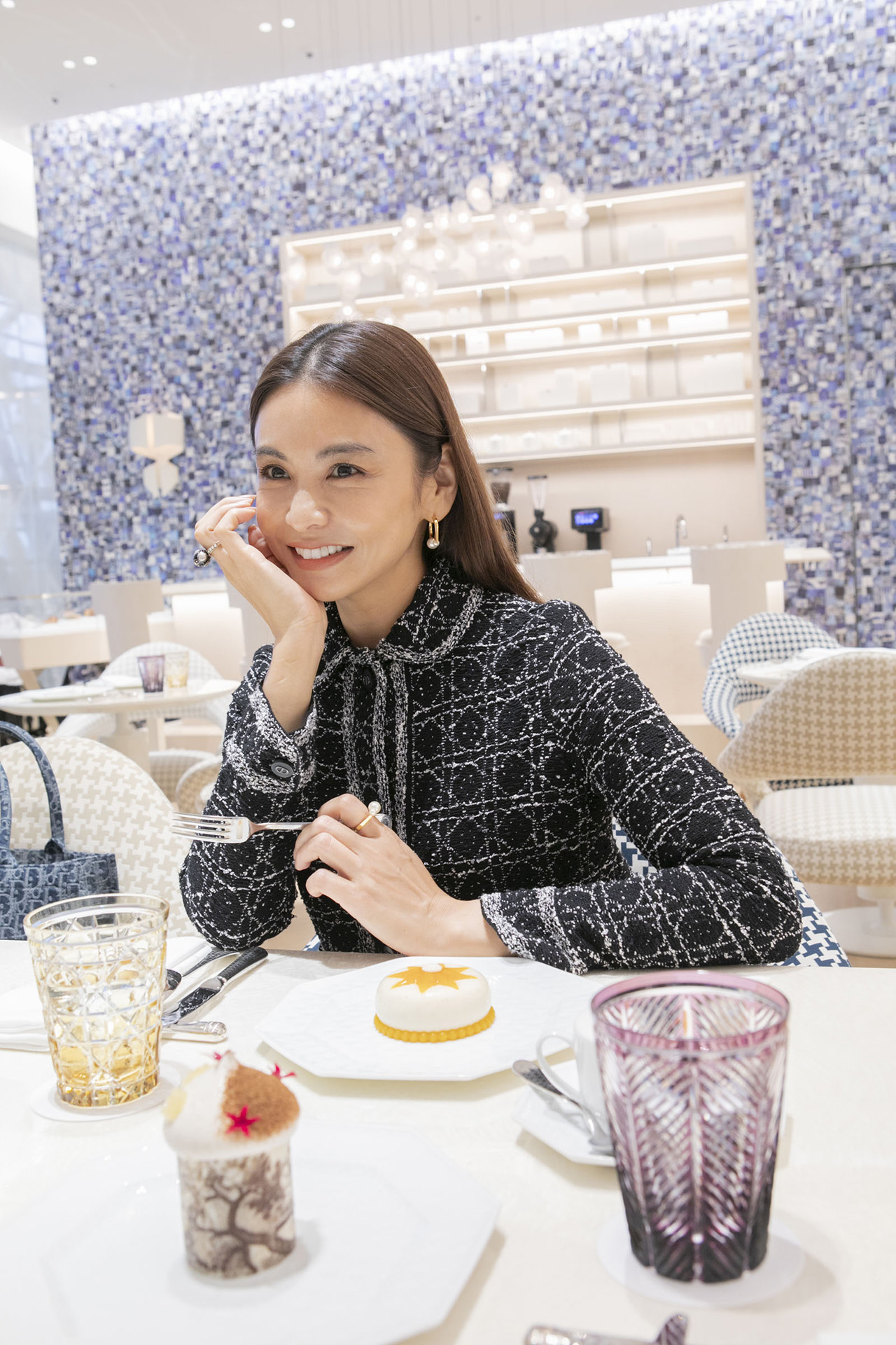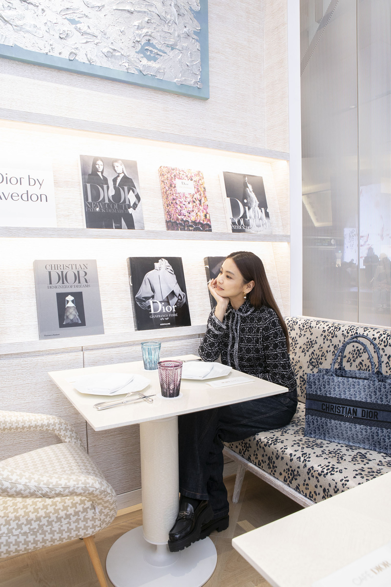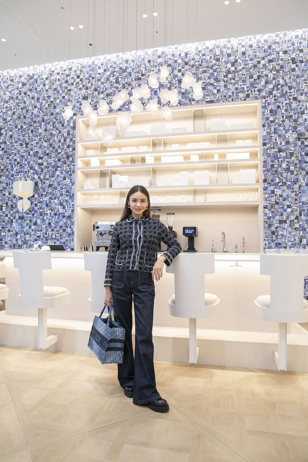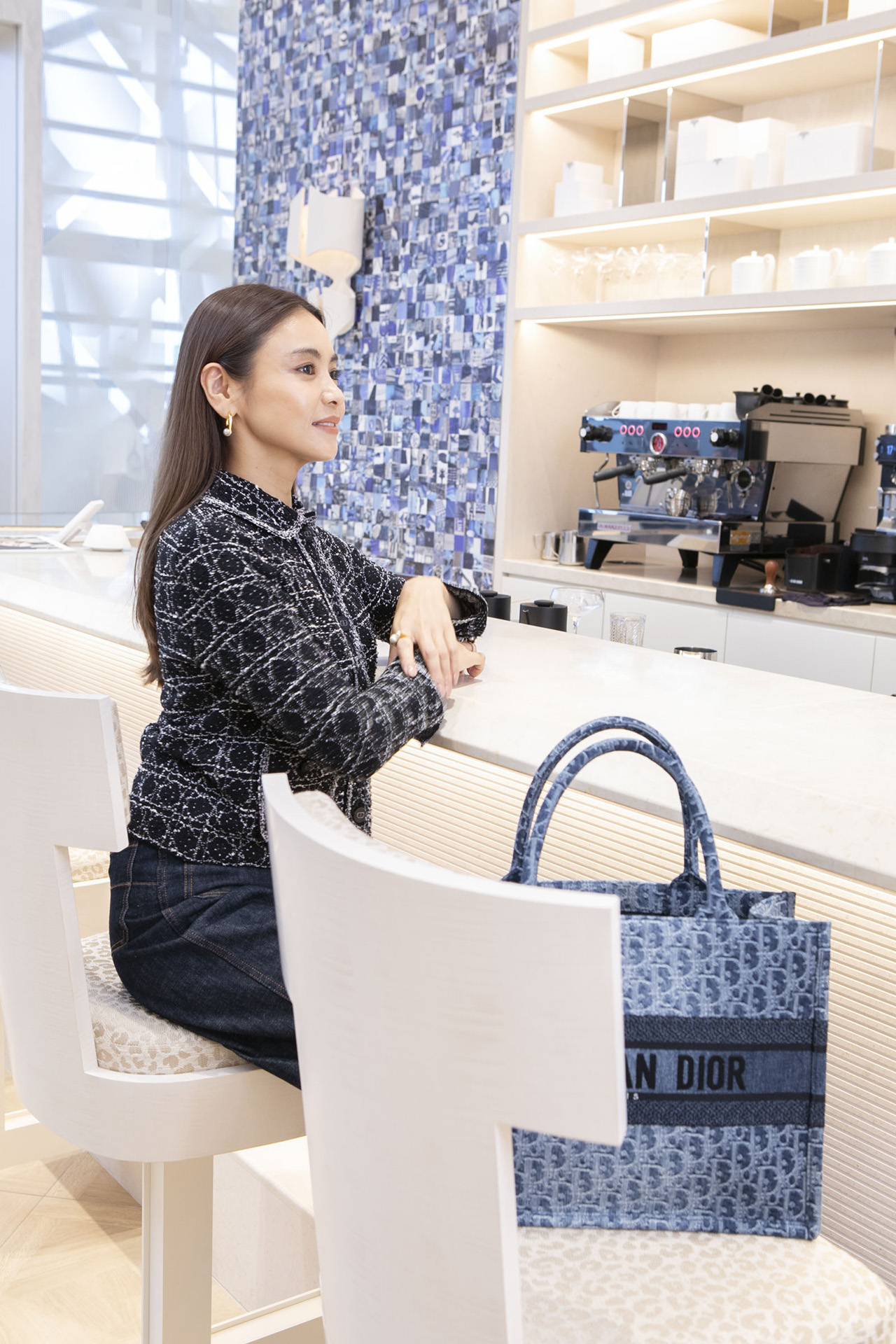 Dior を象徴するカナージュをあしらったカーディガンに Denim Couture (デニム クチュール) のフレアジーンズ、Dior Boy のプラットフォームローファーを合わせたエレガントかつ機能性のある装いを纏った滝沢眞規子。ルックにアクセントを加える「ディオール デニム オブリーク」をあしらったメゾンのアイコン「ブックトート」がよく似合う。雑誌『VERY NAVY (ベリー ネイビー)』のかバーモデルを務め、ライフスタイルを中心に発信する自身の Youtube チャンネルが話題を呼んでいる彼女が、新しくオープンした「カフェ ディオール バイ アンヌ=ソフィ-・ピック」を訪れ、エクスクルーシブ・メニューを楽しんだ。彼女の Youtube チャンネルにて、韓国旅行の前に Dior カフェを訪れた際の様子を公開。実際に味わったケーキやドリンクをはじめ、店舗で購入することのできるチョコレートなども紹介されている。