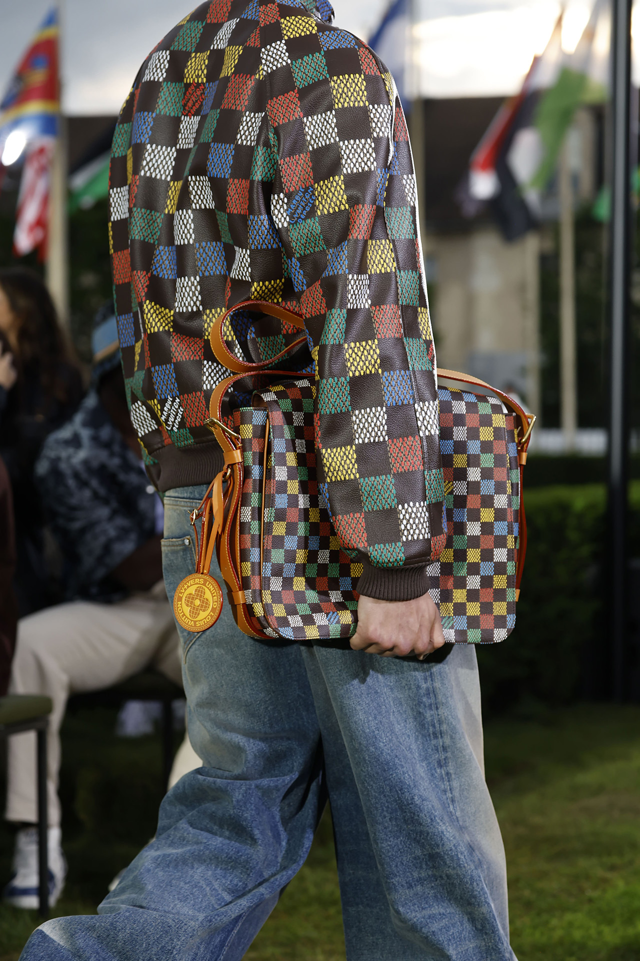 Louis Vuitton 2025年春夏メンズショーは、クリエイター集団 Air Afrique (エール・アフリック) が監督を務めた前奏曲にて幕を開けた。今回メゾンは、フランスとアフリカの文化を繋ぐプラットフォームとして活動する Air Afrique を本コレクションにてフィーチャー。この集団は、2002年まで運航していたアフリカの航空会社 Air Afrique からインスピレーション源を得たという。彼らを語る上で欠かせない航空会社 Air Afrique に注目し、Louis Vuitton は、ラゲージのパターンをもとに青と緑のタータンチェックをデザイン。アイコニックな柄がセットアップやバッグなどにあしらわれて登場した。彼らに大きな影響を与えた航空会社 Air Afrique の存在は、本コレクションの核となる「旅」の要素を強調するかのよう。ワードローブのシルエットには、パイロットの服に見られるクロップド丈のテーラードジャケットやボマージャケット、フライトスーツなど、旅人の象徴である航空服のコードが取り入れられた。
