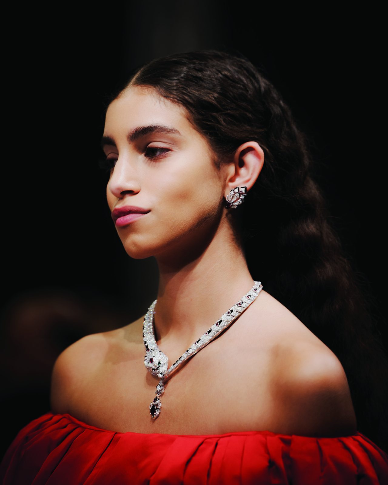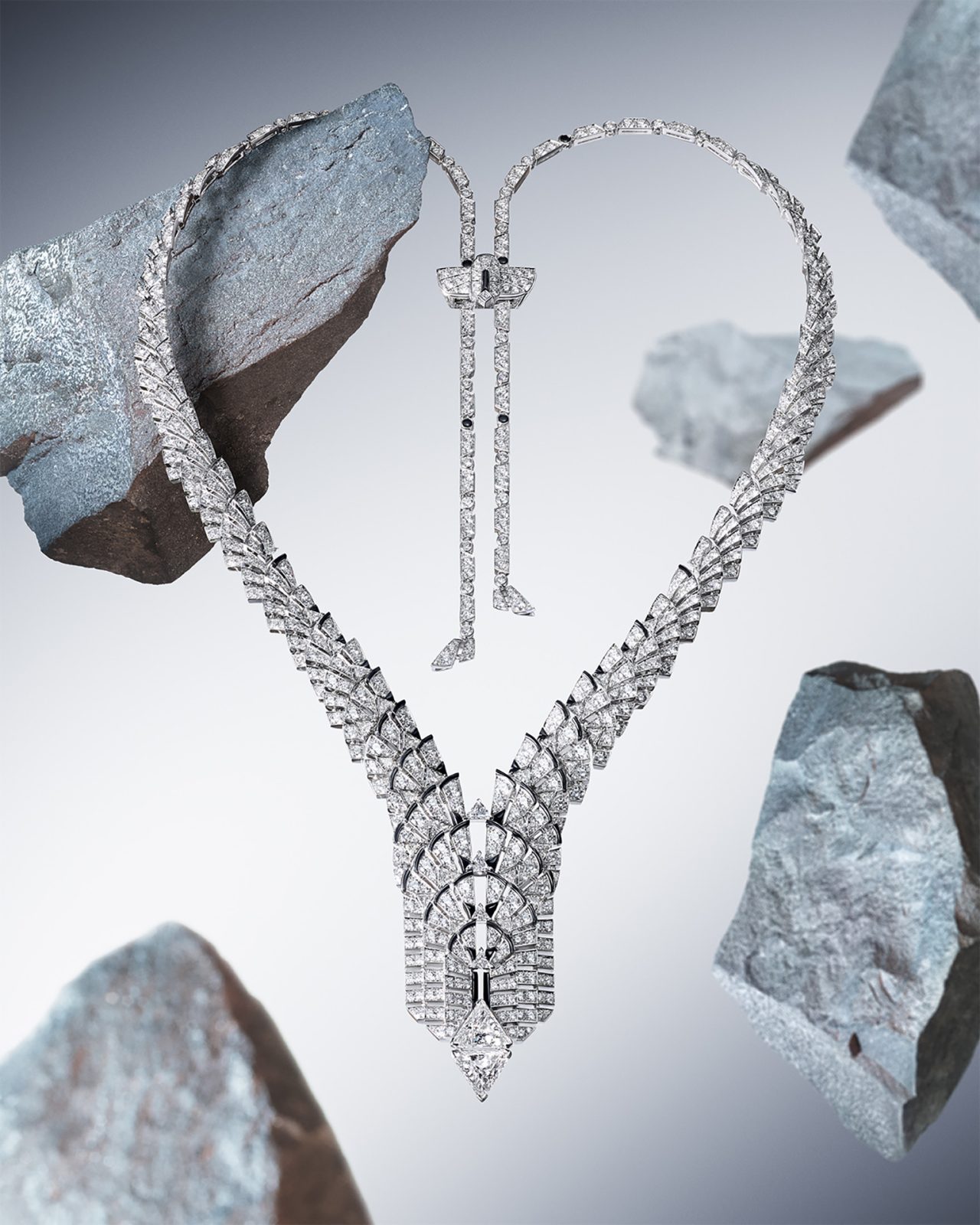 「PANTHÈRE DES GLACES (パンテール デ グラス)」は、これまでになくリアルに描かれたメゾンの象徴パンテールが魅惑的な氷の大地をゆっくりと闊歩。中国のドラゴンをモチーフにした「TATSU (タツ)」は東洋芸術の特徴的なカラーであるレッドとブラックのコントラストが作品全体に生命力と力強いリズムを加えている。ワニの鱗にインスパイアされた「SCUTELLIA (スクテリア)」はエメラルドカットおよびブリリアントカットのダイヤモンドを緻密に造形されたプレシャスメタルと組み合わせ、ピラミッドをイメージした複雑なデザインを作り上げた。
