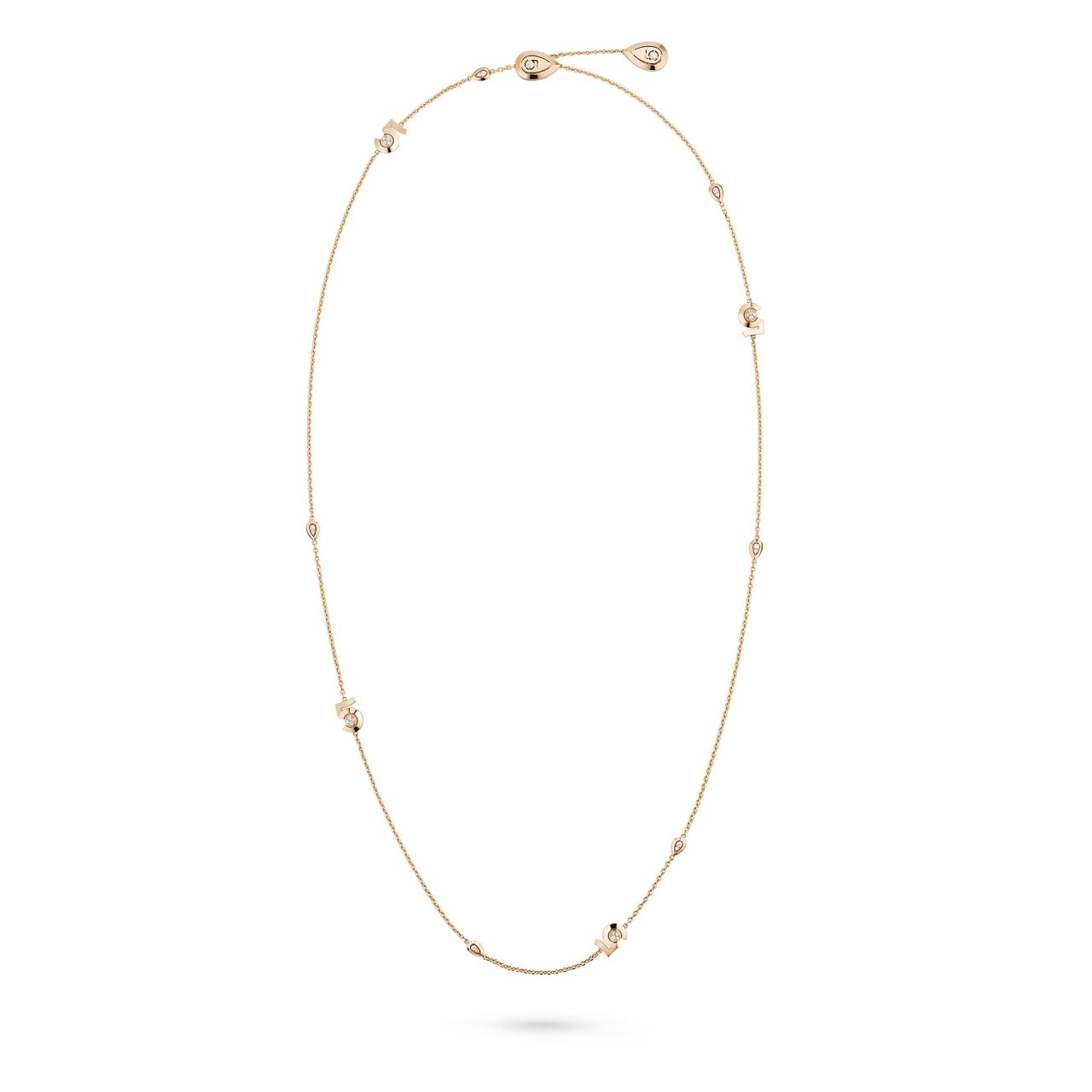 CHANEL のシグネチャーとも言える数字「5」を冠した「Collection N°5」は、グラフィカルに描かれたゴールドの「5」に、ダイヤモンドをあしらったプレシャスなファインジュエリーコレクション。「Collection N°5」にとって初のロングネックレスになる今作は、ベージュゴールドとホワイトゴールドの2素材で展開され、ホワイトゴールドのタイプには「CHANEL N°5」のボトルストッパーを想起させる八角形のモチーフが添えられている。93.5 cm のチェーンには、ダイヤモンドがきらめく「5」や 香水の滴に着想を得たドロップモチーフをランダムに配置。また、チェーンの両端に配されたドロップモチーフが、クリップ式の留め具になっているのもポイントだ。留め方次第で、ロング、2連、Y 字、ブレスレットなど、無限のスタイリングを楽しめる。Gabrielle Chanel のスピリットが反映された今作を、ぜひチェックしてみて。