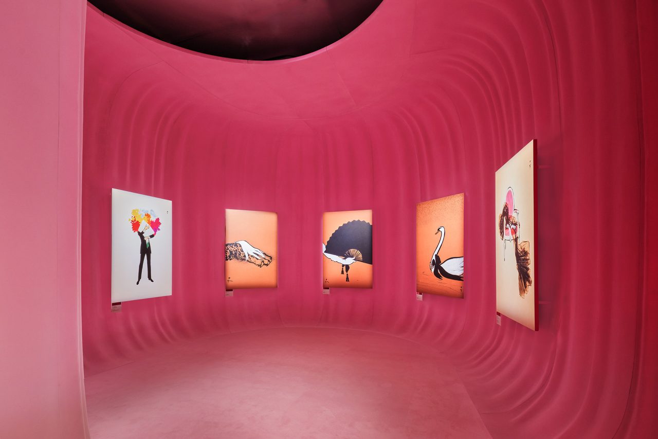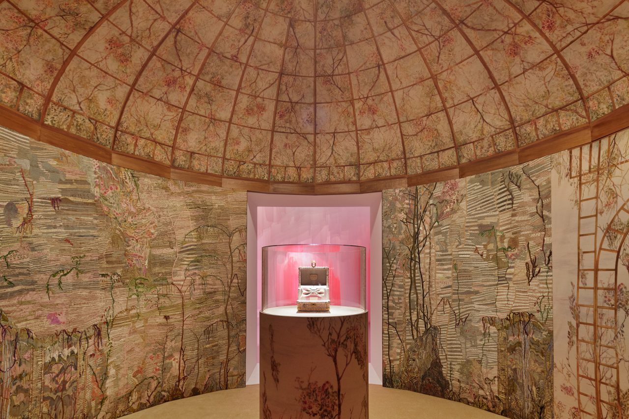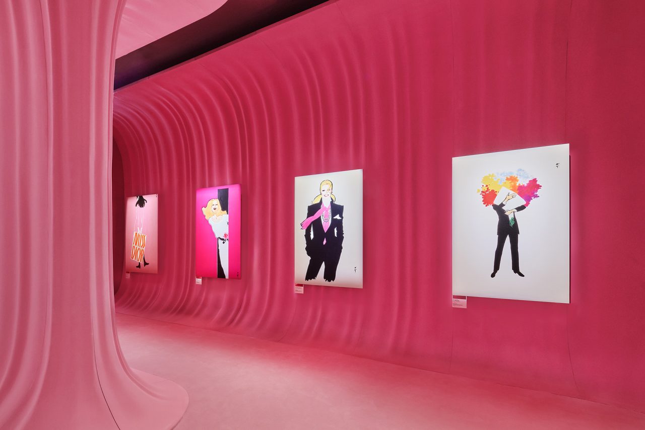 「ミス ディオール」の歴史を体感できる本展では、建築家の重松象平が空間デザインを手掛けた。ここでは、メゾンで受け継がれるクチュール ドレスやアーカイブ コレクションなどが一堂に会する。さらに、Rene Gruau (ルネ・グリュオー)や Mats Gustafson (マッツ・グスタフソン) によるドローイングや水彩画とともに、国際的に活躍するアーティストの Eva Jospin (エヴァ・ジョスパン) や Sabine Marcelis (サビーヌ・マルセリス)、井田幸昌、荒神明香、江上越などの特別な作品も展示している。