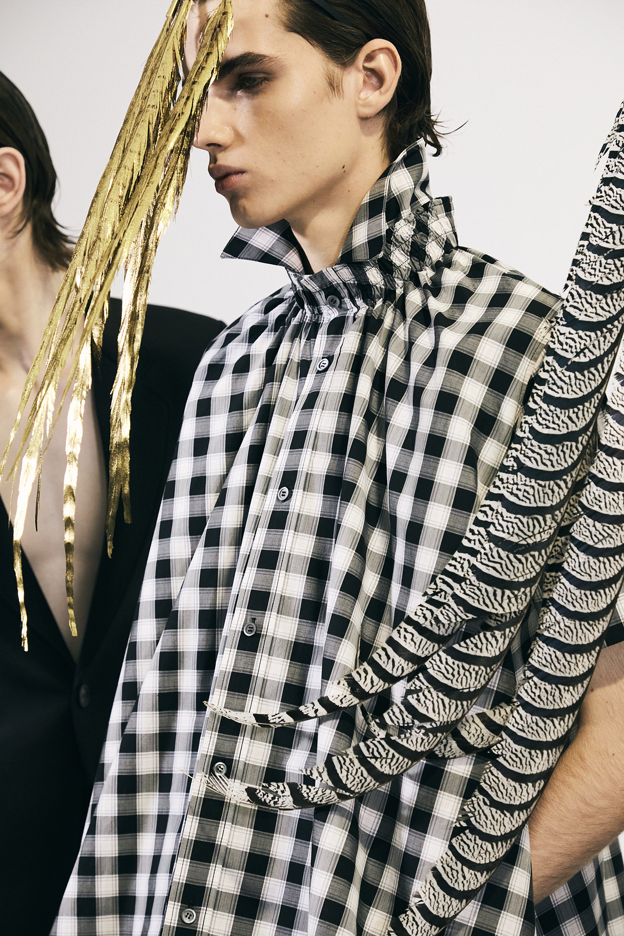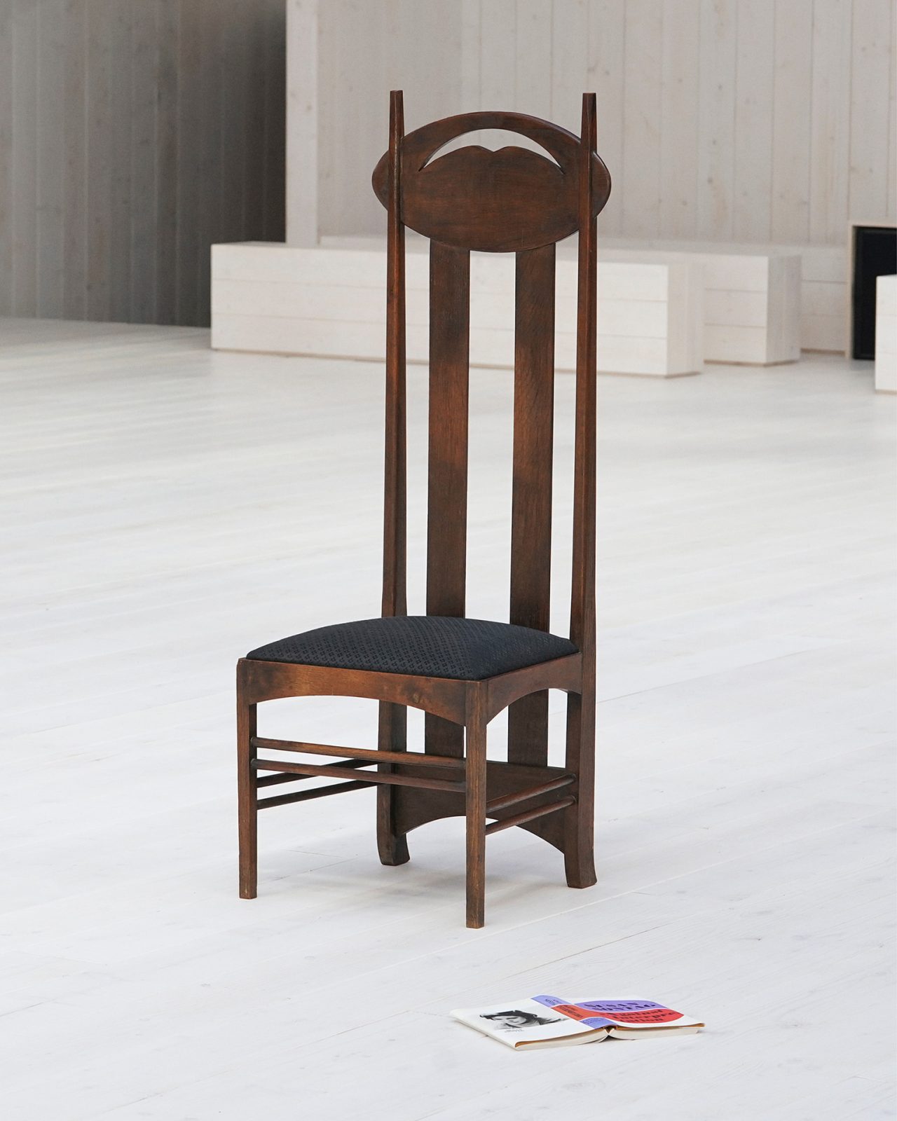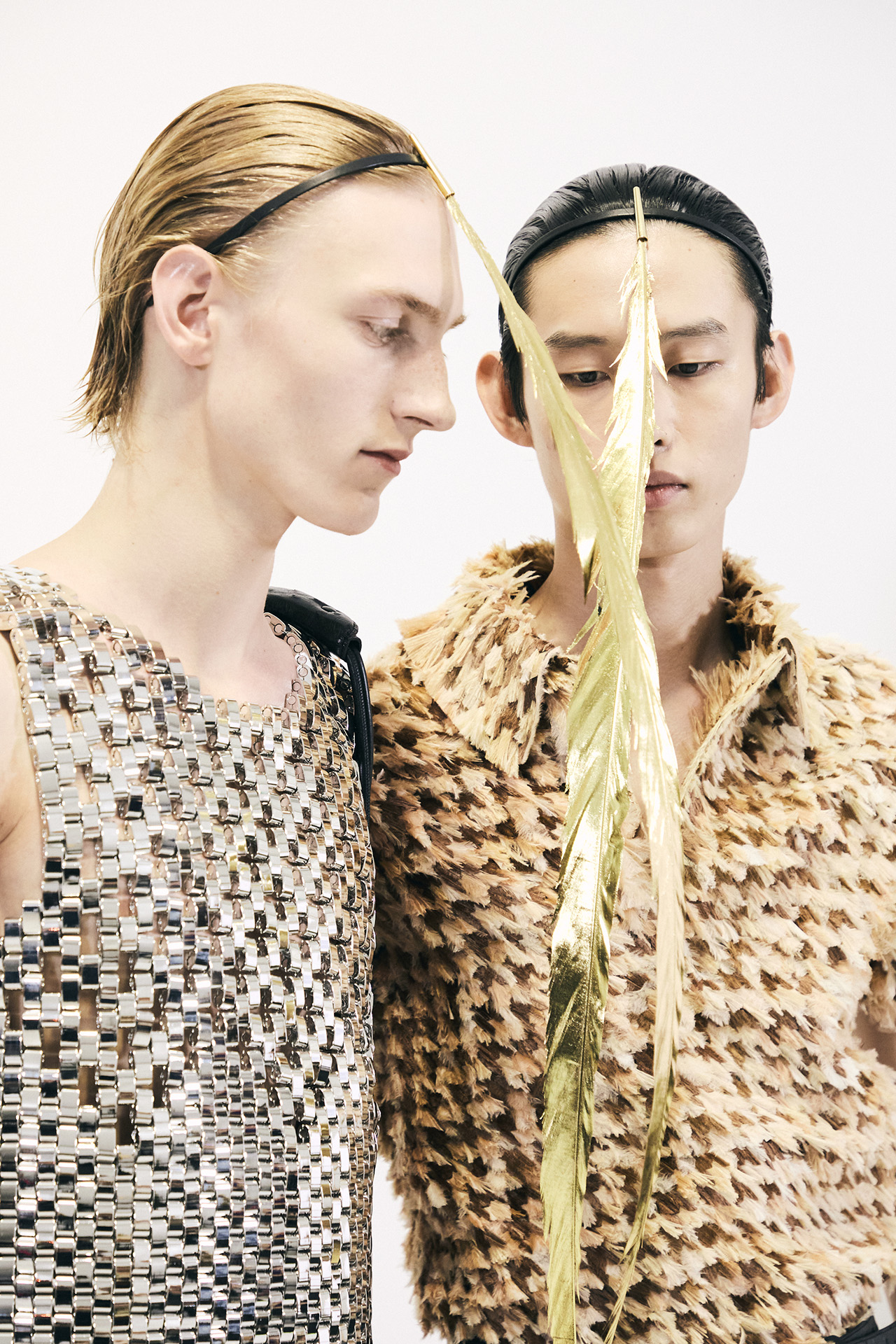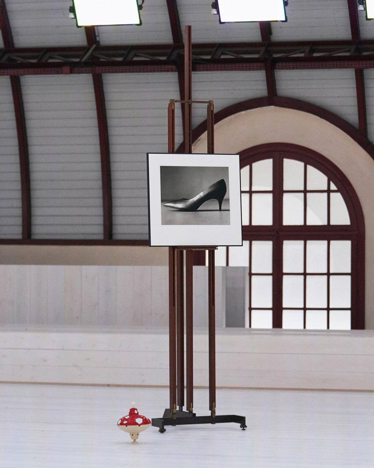 70年代、80年代ニューヨークのダウンタウンを写したポートレートで知られる Peter Hujar (ピーター・ヒュージャー) が撮影した一足のハイヒールの写真は、ショーのプレゼンテーションにも使用された。 スコットランドの先駆的な建築家兼デザイナー Charles Rennie Mackintosh (チャールズ・レニー・マッキントッシュ) の作品からは、彼が1897年にアーガイル ストリート ティールームのためにデザインした「Half Moon Chair」と「Hat, Coat and Umbrella Stand」がピックアップされた。