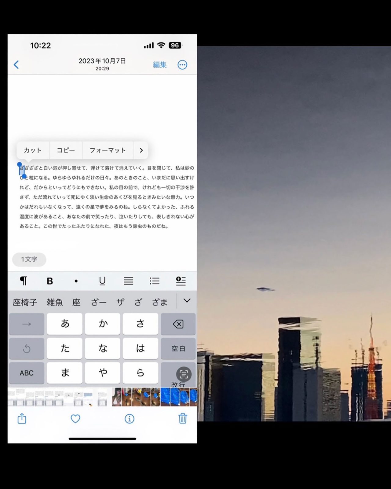 「いつからか身体が反応した瞬間を記録するという行為に中毒的に陥った。その欲望は時間や場所を問わずに湧き上がってくる。反射的にiPhoneで撮影した写真やショートフィルムには、些細だけど、決して永遠では無いその瞬間が記録されている。いわば記憶のビジュアルメモのような存在だ。思えばアートブックやエッセイ集もまた、記録の集合体なのかもしれない。今回、内田さんにお誘いいただき、これまで撮影してきたビジュアルメモの一部を彼女が残してきた記録や記憶と合わせて、flotsam booksに集めた。」髙田将伍