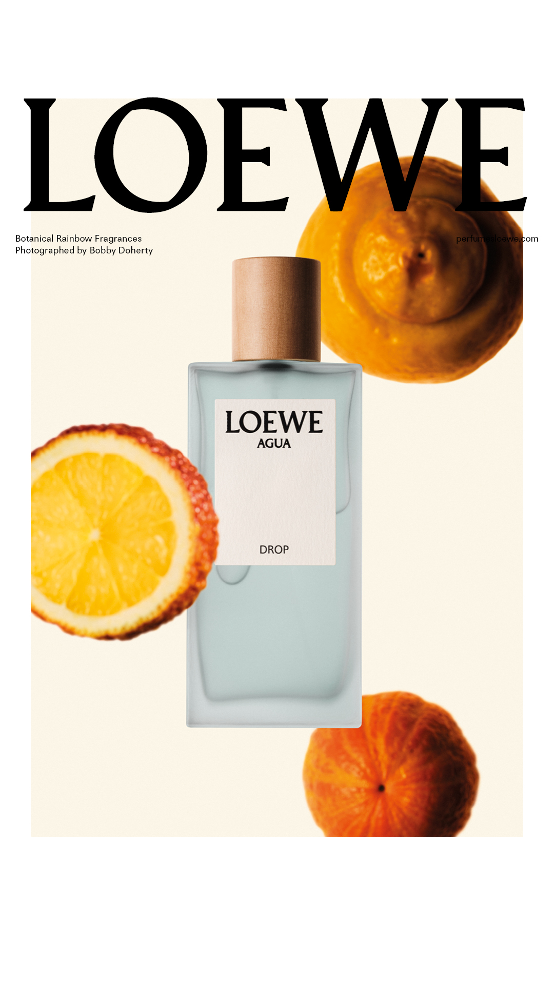フレグランスとホームセンツのキャンペーンは、柑橘類の希少品種である Citrus limonimedica Maxima や Citrus fortunella Maxima などと共に撮影された。これらの柑橘の凸凹した有機的な形色彩の美しさを見せ、自然から得たインスピレーションを描写している。この夏、自分だけのユニークな香りを創造できる、LOEWE Perfumes の世界へ旅してみるのはいかが。