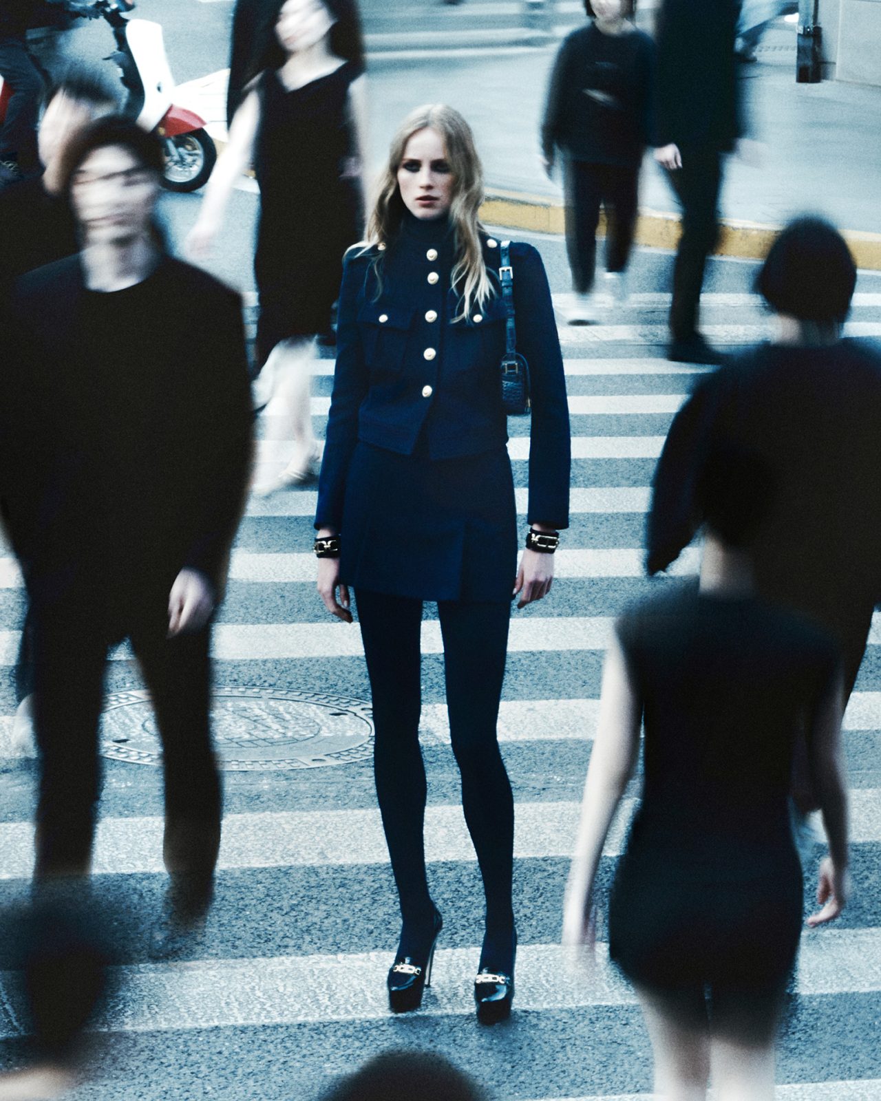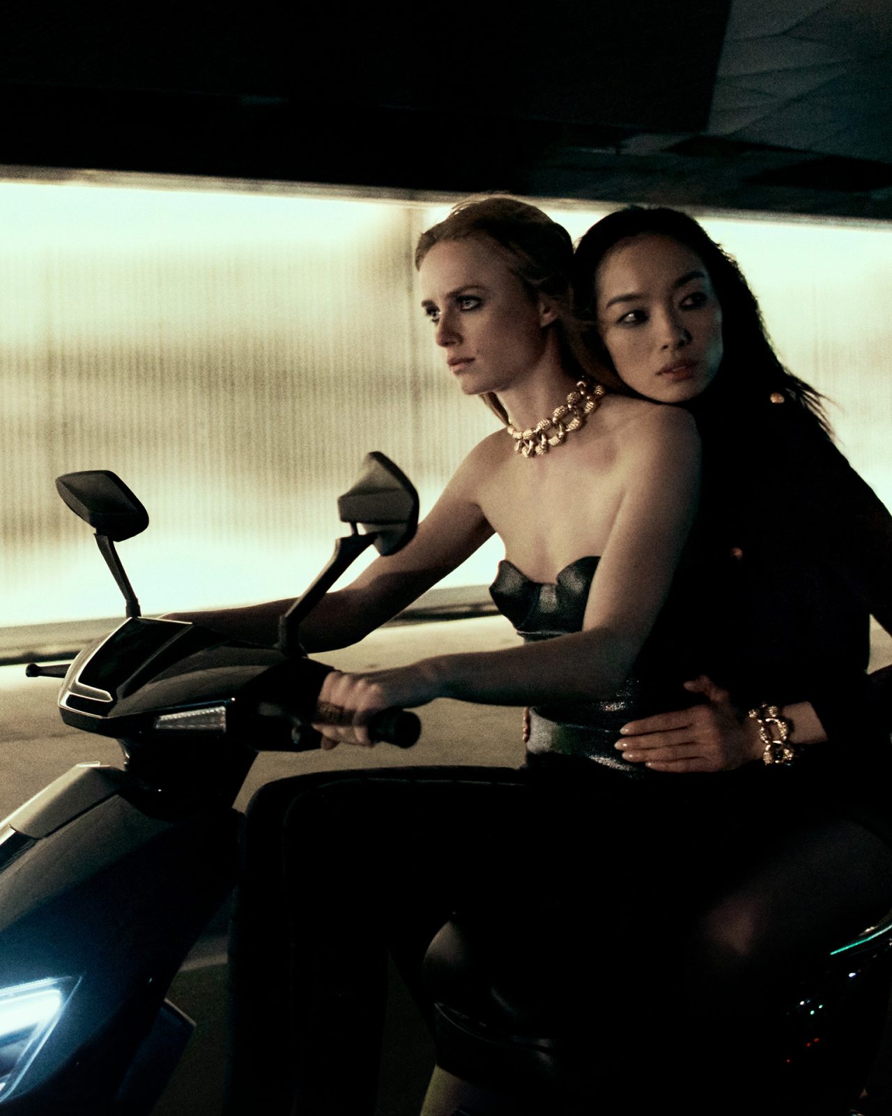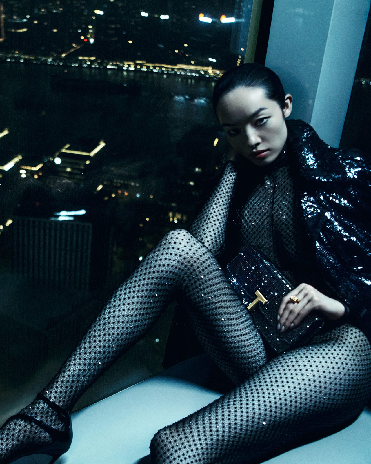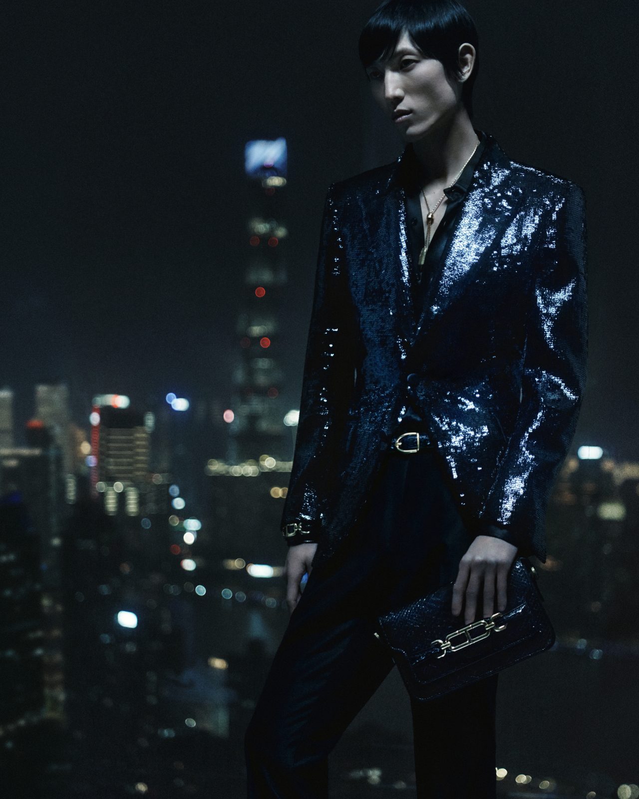 Peter Hawkings (ピーター・ホーキングス) がクリエイティブディレクターを退任してから約2ヶ月後の9月5日、新たなクリエイティブディレクターに Haider Ackermann (ハイダー・アッカーマン) を起用し、大きな話題を呼んでいる。そんな TOM FORD からローンチされた本キャンペーンは、居住者から魔都として知られている上海で撮影され、超近代性、スピード、スケールが融合した映画のような世界観を表現。3つの物語から成る本作は、3人の個性的なキャラクターの視点からアンソロジー形式で流れる。初めに登場するのは、漆黒のスパンコールとミッドナイトブルーのベルベットをミックスしたミリタリー風のテーラリングを身に纏った中国北部出身のモデル FeiFei Sun。2010年代からトップモデルとして活躍する彼女が TOM FORD のバッグを手に、高層ビルのきらびやかな窓を通して眼下に広がる通りを見下ろす。はるか下には、数多くのラグジュアリーブランドのショーや広告に出演してきた売れっ子モデル Rianne Van Rompaey。しなやかなオープンニットのシースドレスに黒のヒールをあわせた、オールブラックコーデの彼女が後部座席に FeiFei Sun を乗せてバイクを操る。