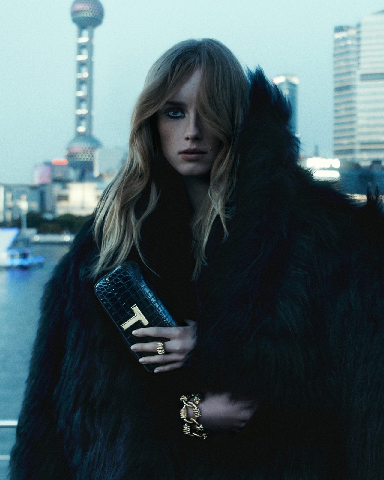 TOM FORD (トム フォード) が2024年ウィンターキャンペーンを公開。トップモデル3名 FeiFei Sun (フェイフェイ・サン)、Rianne Van Rompaey (リアン・ヴァン・ロンパエイ)、Meng Yuqi (モン・ユーチー) が TOM FORD を身にまとい、魔都・上海の光と闇の中できらめく。