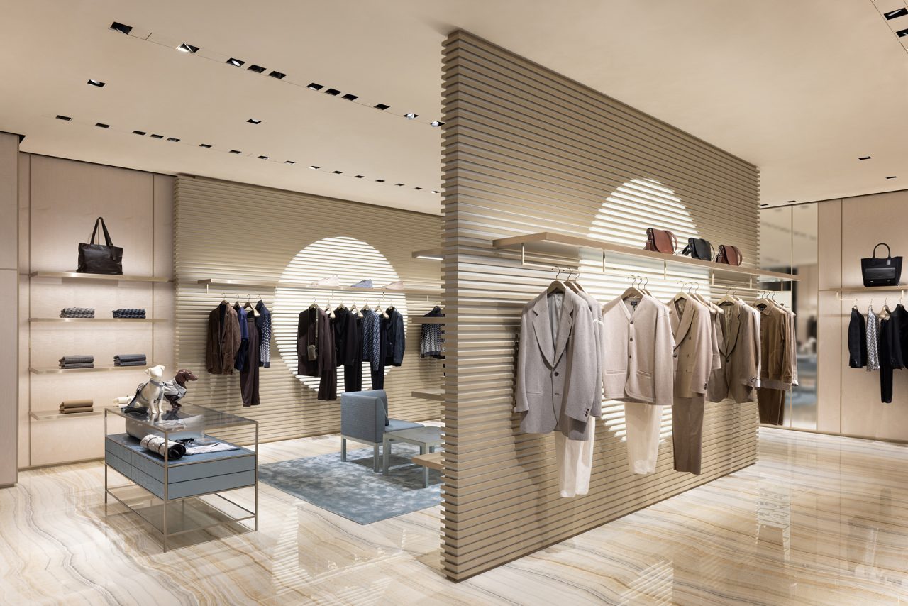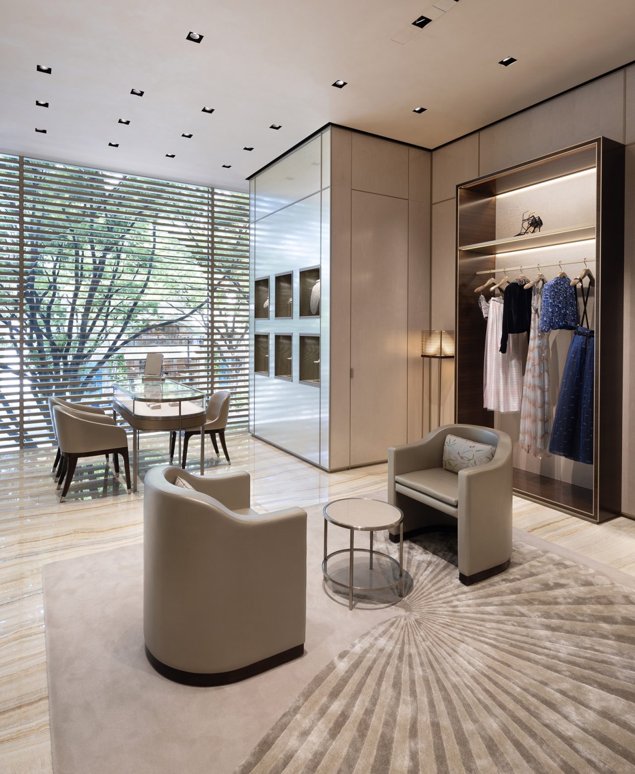 2フロアからなる表参道店は、総面積450 ㎡ を誇る国内最大規模のブティック。日本文化を取り入れ、和を感じる洗練された雰囲気となった。1階にはメンズウェア、レザーグッズ、フレグランスを、2階にはウィメンズウェア、ジュエリー、時計などをラインナップ。また、オーダーサービス「メイド トゥ メジャー」が体験できるエリアや個室も用意され、プライベートな空間でじっくりと買い物を楽しむことができる。