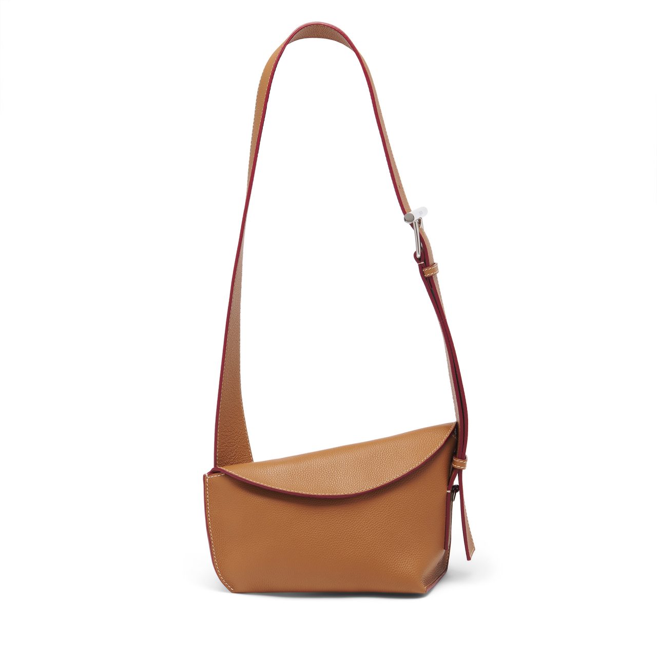 新作「スリングバッグ」は、一枚のグレイニーカーフレザーを丁寧に折りたたみ、縫いあわせることで、どの角度から見てもアシンメトリーが楽しめるデザイン。長さが調節可能なレザーストラップには、「McQueen」のロゴを刻印したクロスバーバックルがあしられている。また、幅広のストラップを締めることで、体のラインに沿うようにしっかりとボディにフィットしながら使用できる。カラーは、ブラウン、ブラック、クランベリー、コニャックの4色展開。