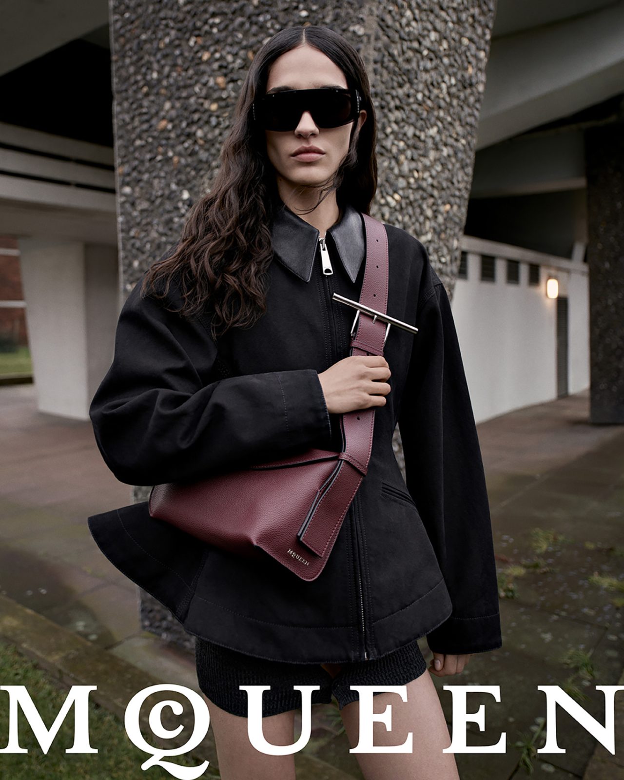 この新作バッグのローンチを記念して、世界中の新進気鋭の若手アーティストらとコラボレーションし、McQueen のミューズのエッセンスを表現したビジュアルを撮影。東京の街で写真家の Fish Zhang (フィッシュ・チャン) が撮影したビジュアルには、アオイヤマダ、Hina Yoshihara、弦が登場。アシンメトリーなシルエットがコーディネートにアクセントを加えながらも、日常の装いに取り入れやすいカラーが McQueen の最新スタイルによく馴染む。