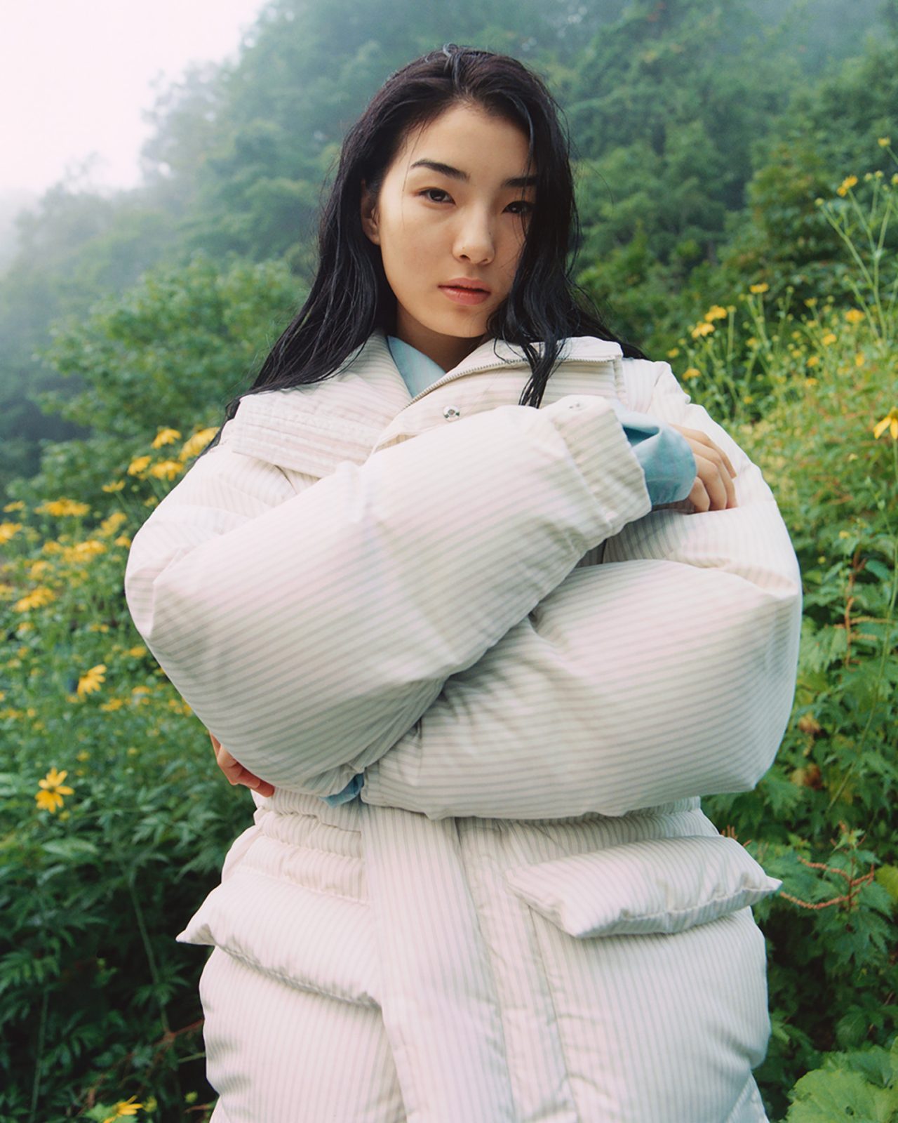 このコレクションは、自然豊かな温泉地での体験を基にデザインされた。温泉の水の流れや、光に照らされた苔、冬の木々や降り積もった雪などからイメージした色合いをAURALEE の特徴的なカラーリングでスリープウェアやタオルに反映。首や頭に巻きやすい長めに設定された温泉サイズのタオルは、今回のコラボレーションのためにオリジナルで製作された。