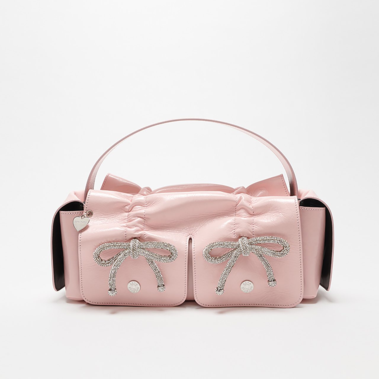 本ポップアップで先行販売する新作「マルチポケットバッグ」は、やわらかなパステルピンクのボディに、きらびやかなクリスタルのリボンがあしらわれており、ホリデーシーズンにぴったりなデザインに。収納力に優れた2サイズを展開し、デイリーにもパーティーシーンにも活躍する。存在感抜群な Acne Studios のアイテムで、冬の気分を盛り上げて。