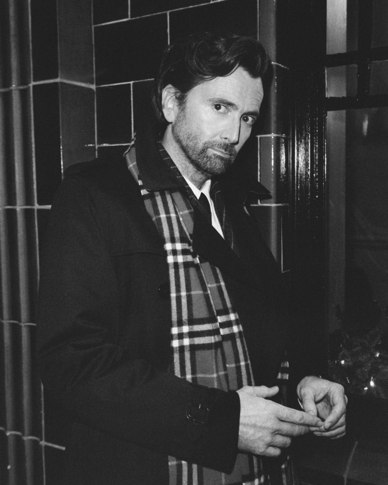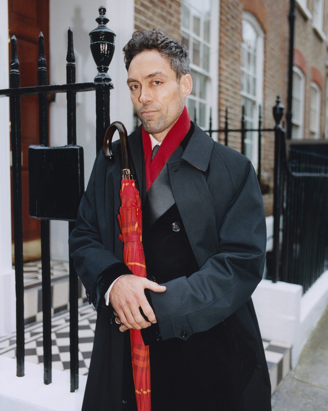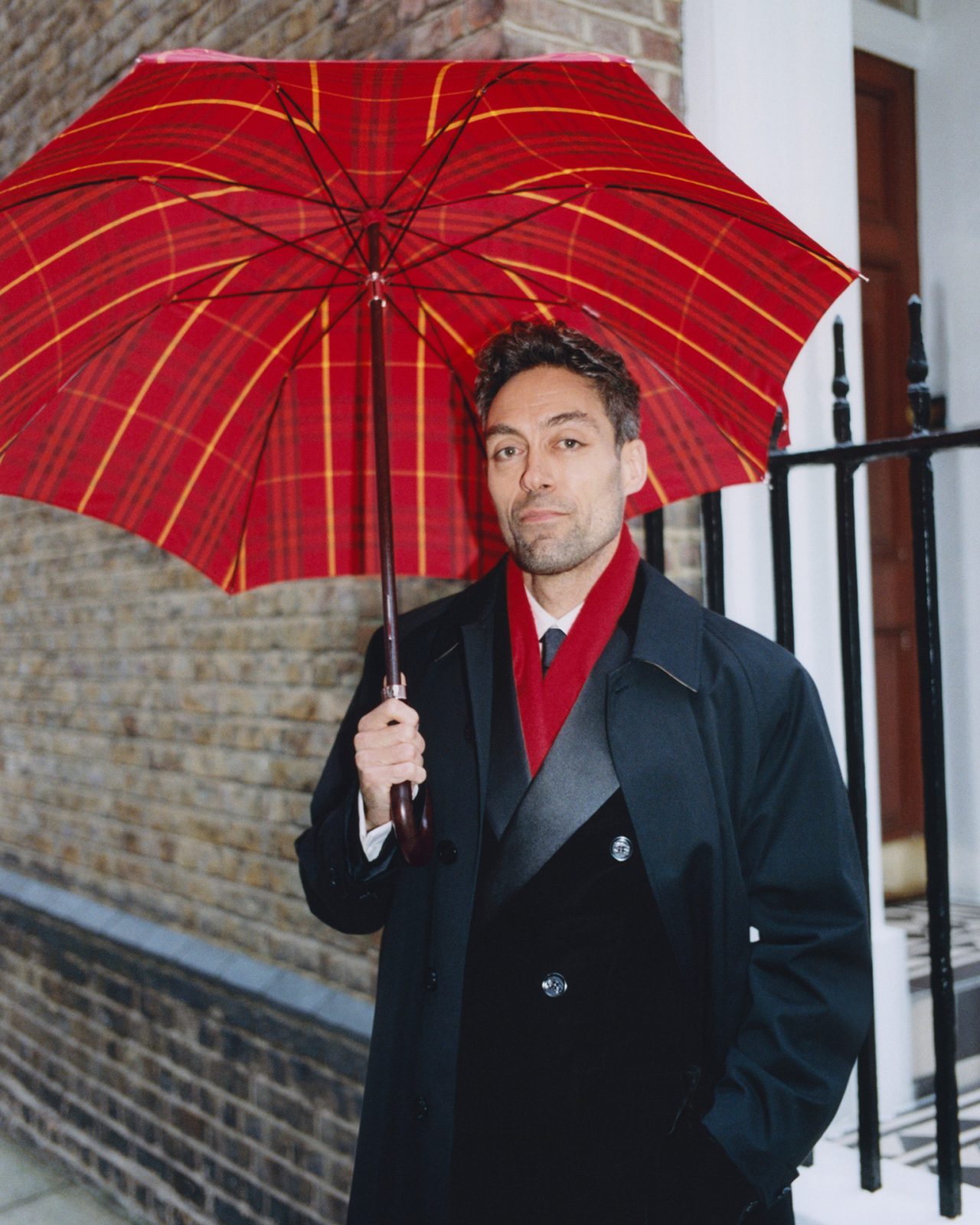 また、芸術や文化で有名なロンドンのブルームズベリー地区の通りで撮影されたシリーズには、 David Tennant (デイヴィッド・テナント) と Alex Hassell (アレックス・ハッセル) が登場。2人は英国の舞台・映画のアイコンであり、テレビヒット作「ライバルズ」で共演していながらリアルライフの親友でもあるという。今シーズンのフェスティブ・コレクションからセレクトされた傘とスカーフ、そしてタイムレスなアウターウェアを合わせ、ホリデーシーズンを華やかに彩る。