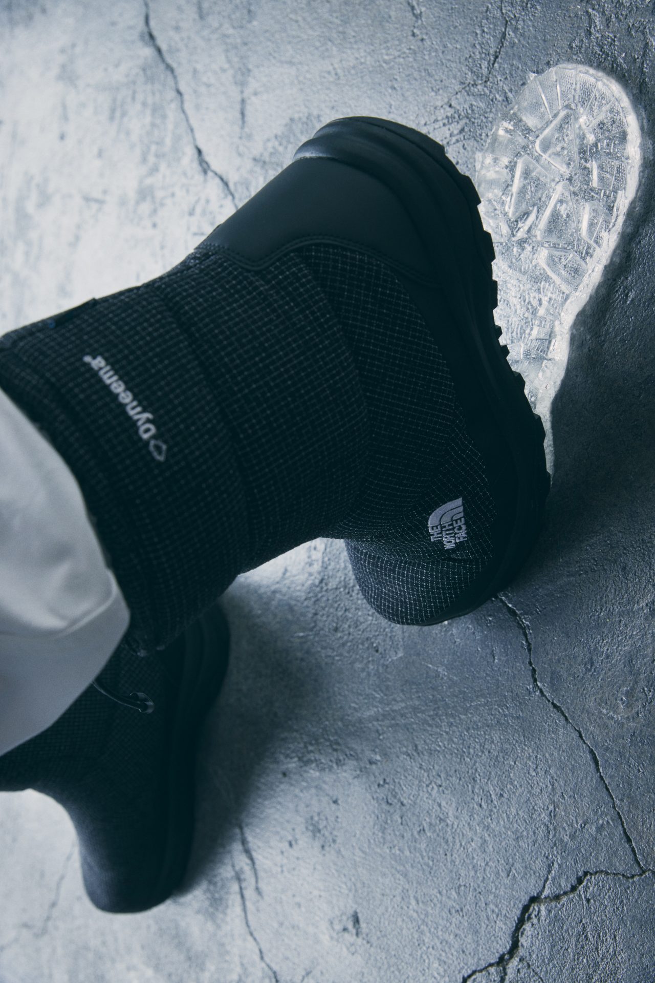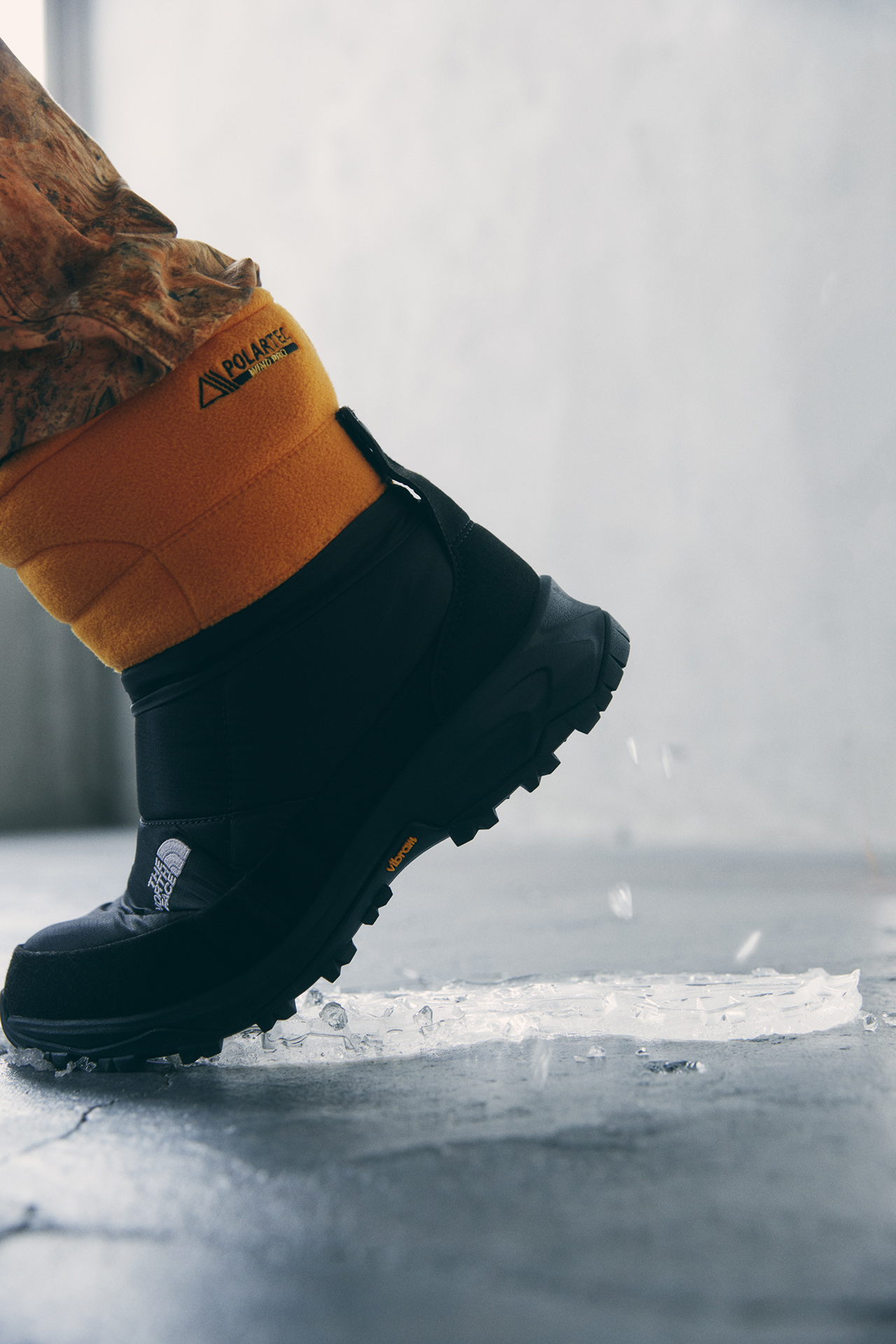 本コレクションには、さまざまな気温や天候、路面状況に適応する多彩なラインナップが揃う。「Detacheble Nuptse Bootie POLARTEC (デタッチャブルヌプシブーティポーラテック)」 は、くるぶしから上の筒部分をファスナーで取り外すことができる機能的なシューズ。気温に合わせてブーツタイプにもクロッグタイプにもできる2way 仕様なのがポイントだ。また、アッパーには暖かさを追求したフリースニットを採用したほか、アウトソールには氷上でのグリップ力に優れた Vibram® Arctic Grip ALL TERRAIN を使用。