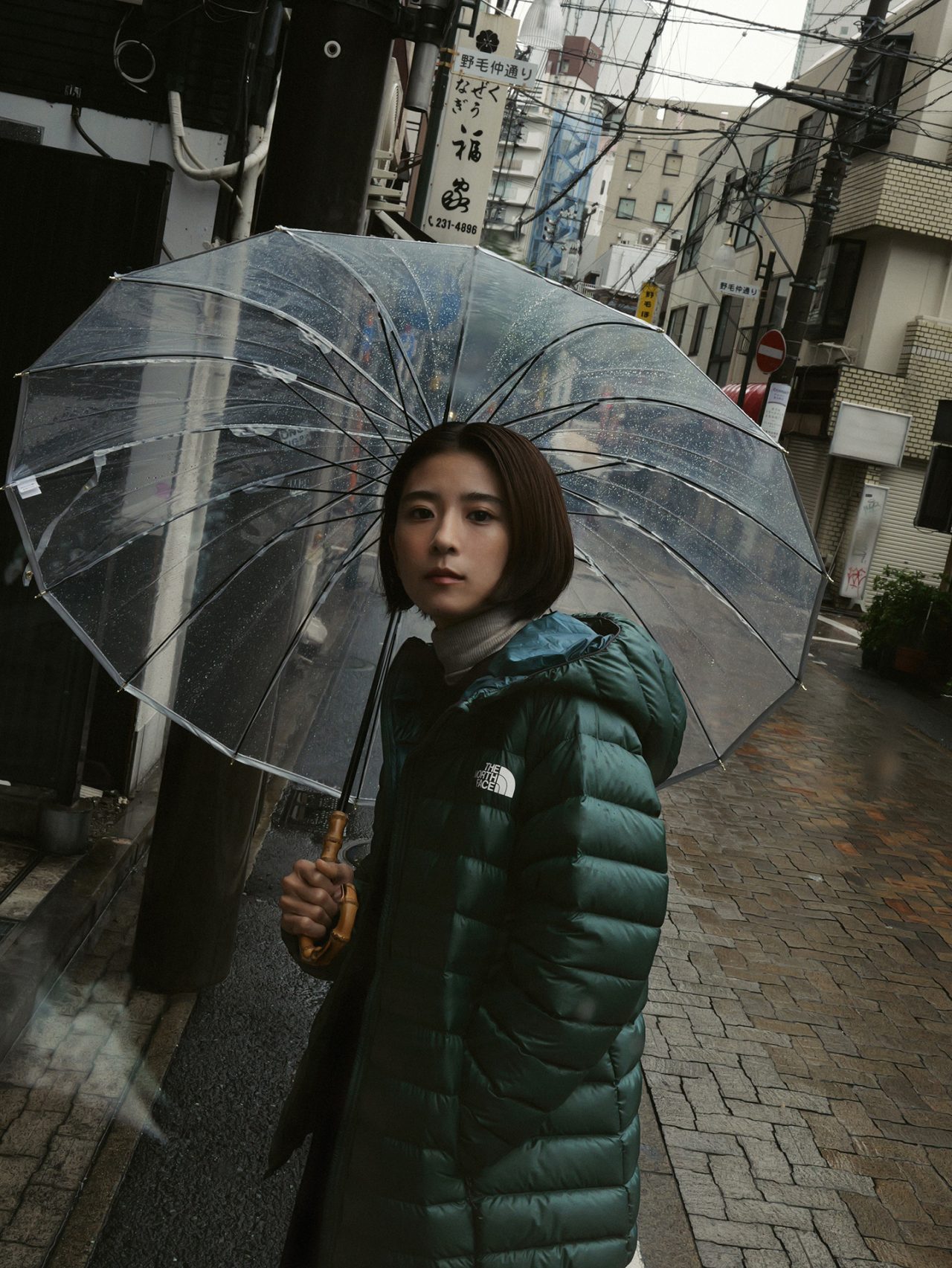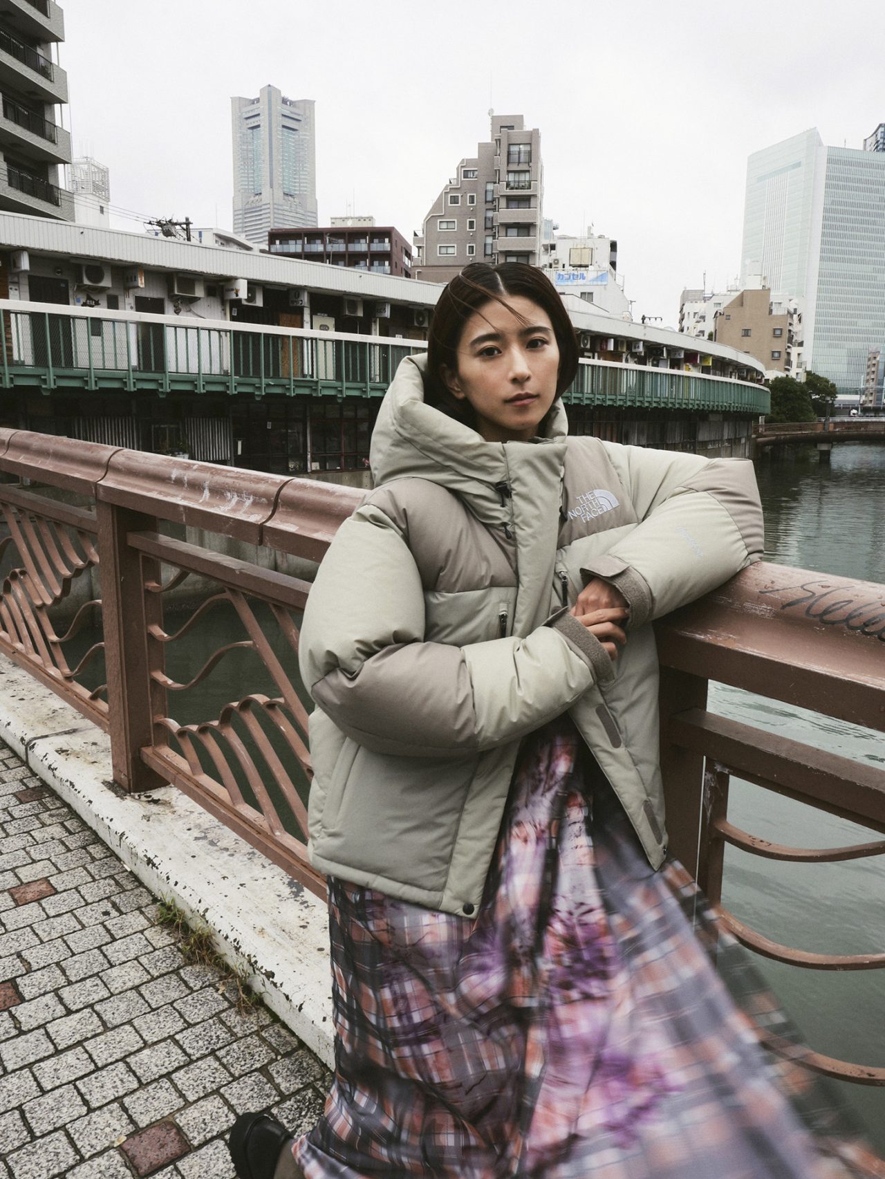 そして本コレクションで初披露されるのは、900フィルパワーのダウンを使用した「ウーゼルフーディ」。付属のスタッフサックでコンパクトに収納できる本アイテムは、空間を行き来し寒暖差の激しい日常を過ごす都市生活者にも最適だ。また同じく新作として、高い保温性が人気のアウターをショート丈に刷新したウィメンズモデル「ショートバルトロライトジャケット」もお目見え。ビジュアルでは黒島結菜が華やかなボトムスと合わせ、コントラストの効いたルックに仕上がっている。