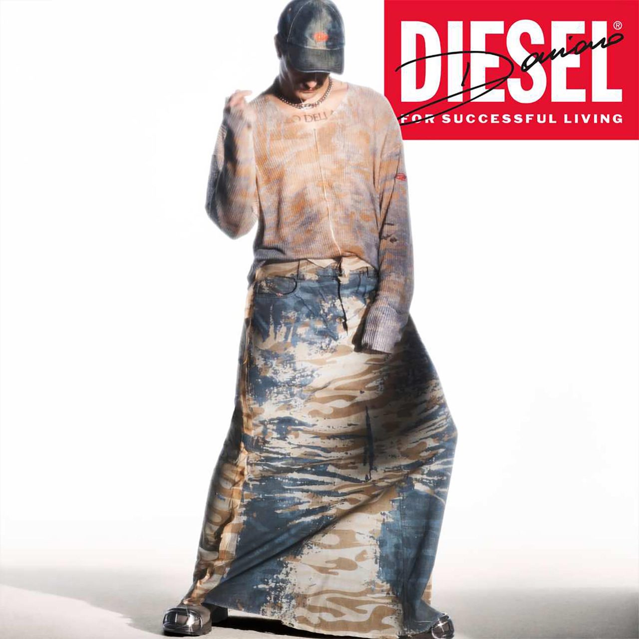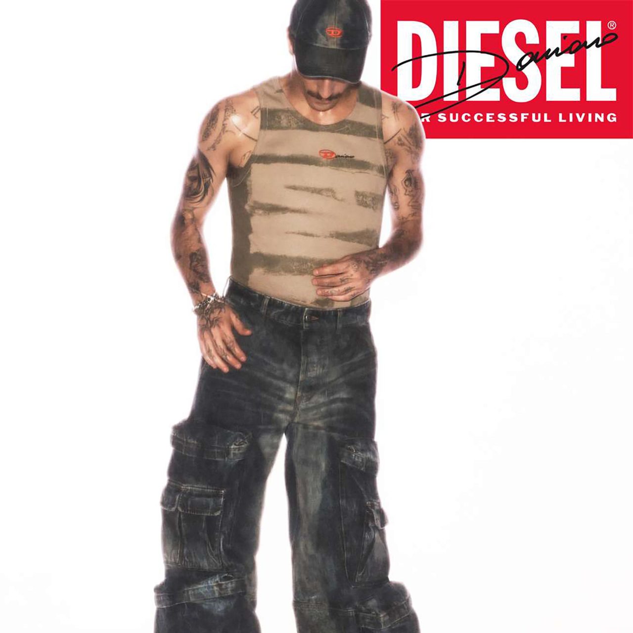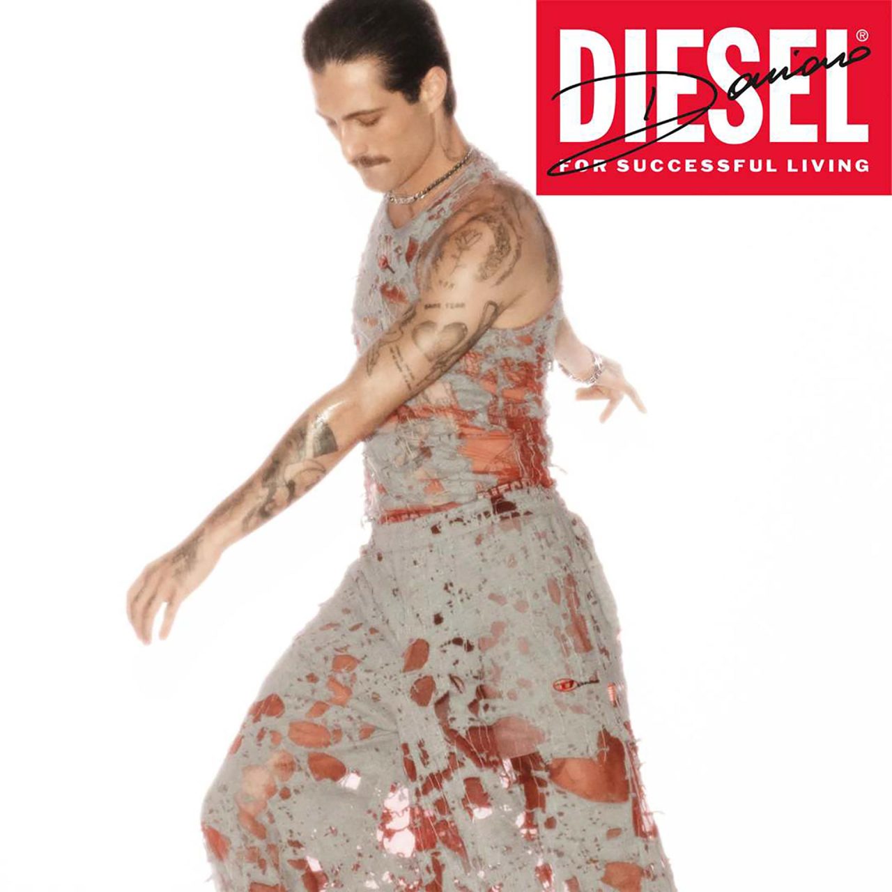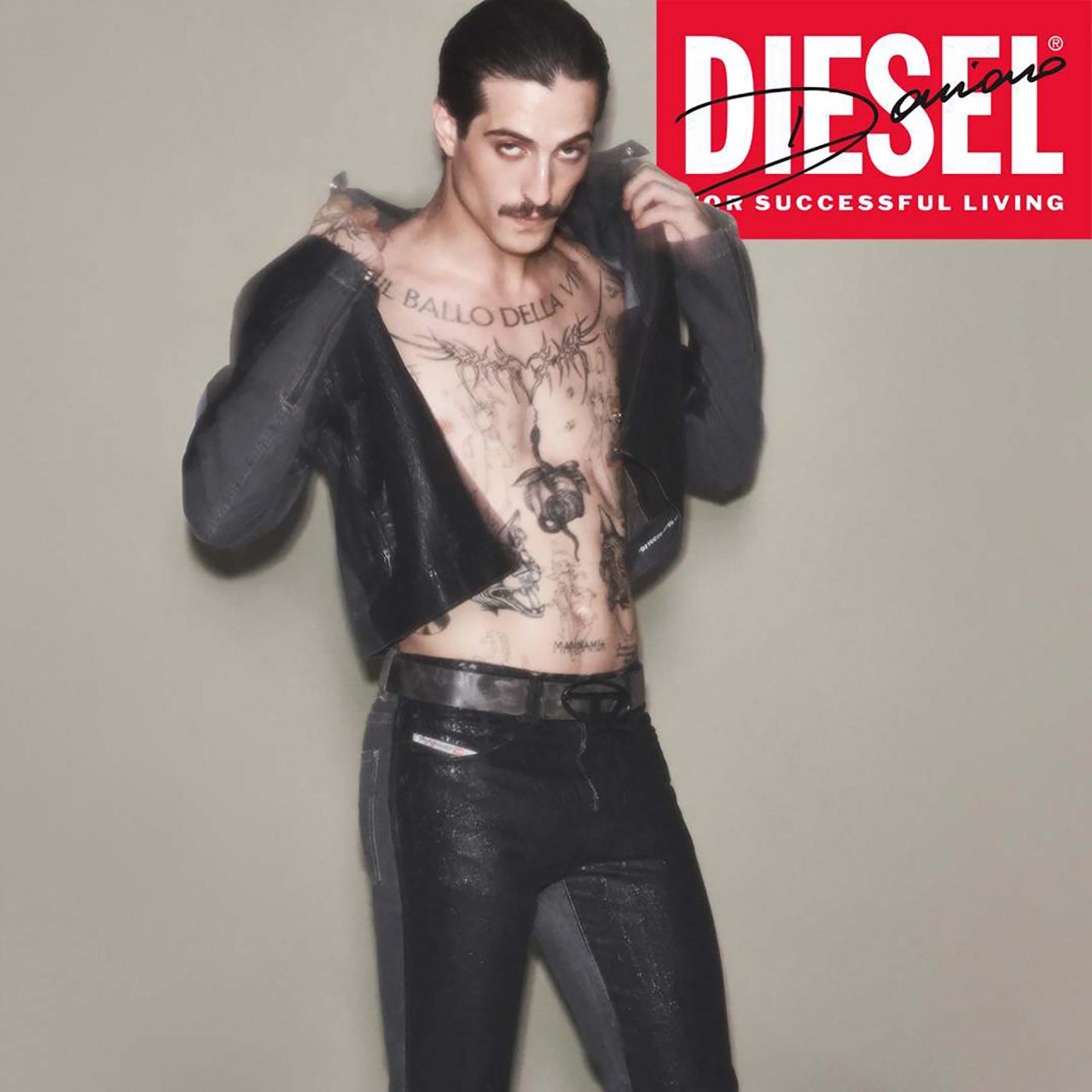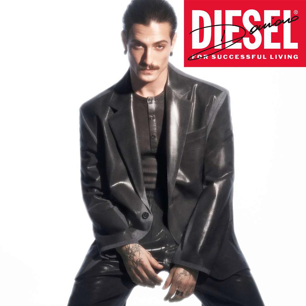ロックバンド「Måneskin (マネスキン)」のリード・ヴォーカリストとして、最近ではソロシングル「Born With A Broken Heart」をリリースした Damiano David 。世界の音楽シーンで地位を確立すると同時に、その多彩なパーソナルスタイルと型にはまらない精神で DIESEL の男性像を象徴し、アンバサダーとしても活躍中。共作コレクションでは Glenn Martens のディレクションのもと、DIESEL のシグネチャーを再構築したものを展開。そこに Damiano の文字刺繍や、彼のタトゥーをプリントしたアイテムが加わり、コラボレーションならではの特別感を演出する。