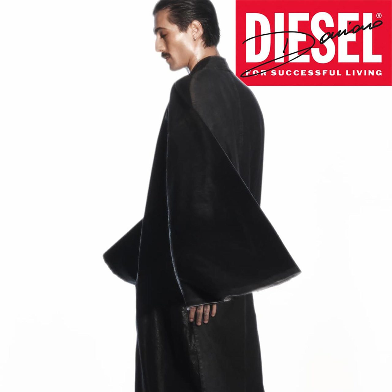 DIESEL (ディーゼル) のクリエイティブ・ディレクター Glenn Martens (グレン・マーティンス) と、ブランドのアンバサダーを務める Damiano David (ダミアーノ・デイヴィッド) がタッグを組みコレクションを発表。新しい男性像とジェンダーの解放をビジョンに掲げ、スーツやセットアップを展開する。
