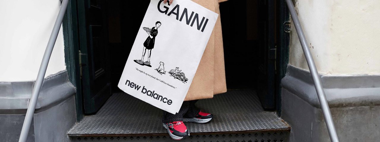 これまで、長期にわたりコラボレーションをし続けてきた GANNI と New Balance 。前作では遊び心あるイエローをメインにしたコレクションを発表し、New Balance の優れた機能性と、GANNI の自由で大胆な色使いの融合が人気を集めた。