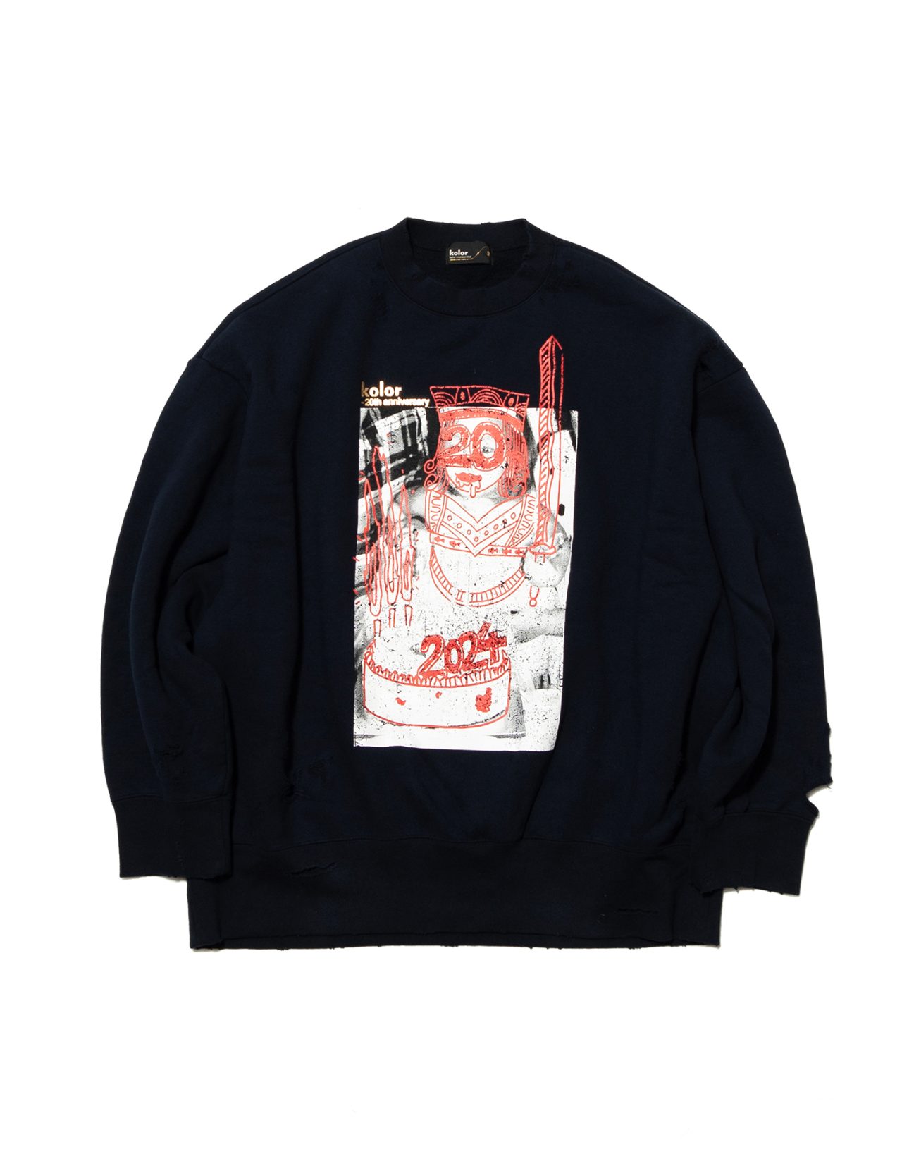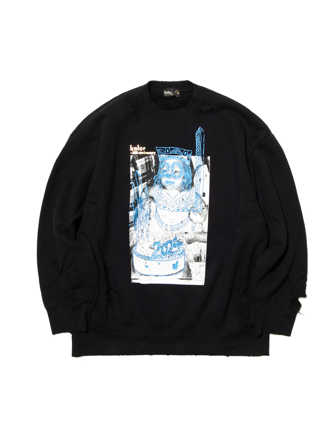 今回発売する2種類のアイテムは、 kolor らしい遊び心が感じられる手書きグラフィックとタイポグラフィを用いたデザインがプリントされている。ダメージ加工が施された裏起毛のボディとゆったりとしたシルエット、色使いが目を引く。この機会にしか手に入らない、エクスクルーシヴなアイテムをぜひチェックしてみて。