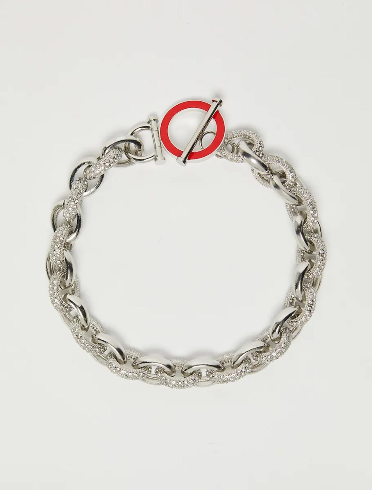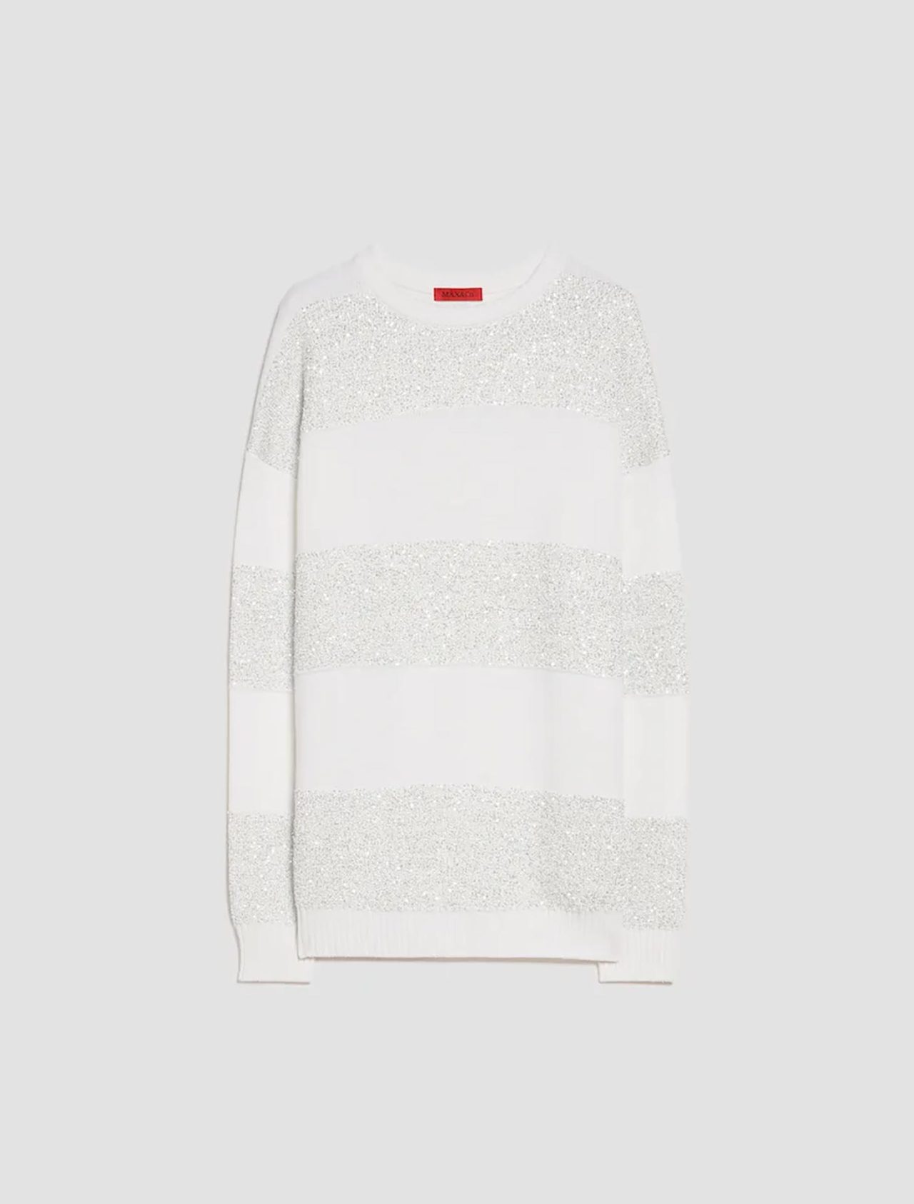 ストアでは、オリジナルオーナメントをあしらったクリスマスツリーがお出迎え。ハッピームードが漂い、このシーズンならではの特別な空気感を演出する。最新コレクションからは、シルバーコーティング加⼯を施したパンツやデニムスカートや、煌びやかなスパンコールをあしらったニットやジュエリーのほか、 90年代のミニマリズムを象徴するリトルブラックドレスやタキシードジャケットなどが登場。シルバーやブラックの洗練されたアイテムが、赤で統一された店内によく映える。また、メタリックビーズのバッグやウールマキシコートはギフトにもおすすめ。