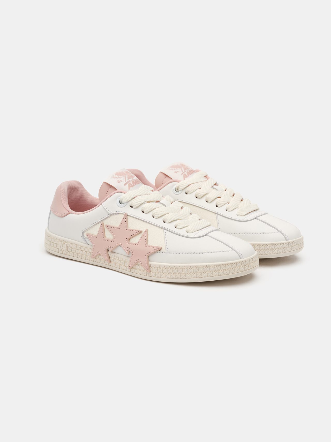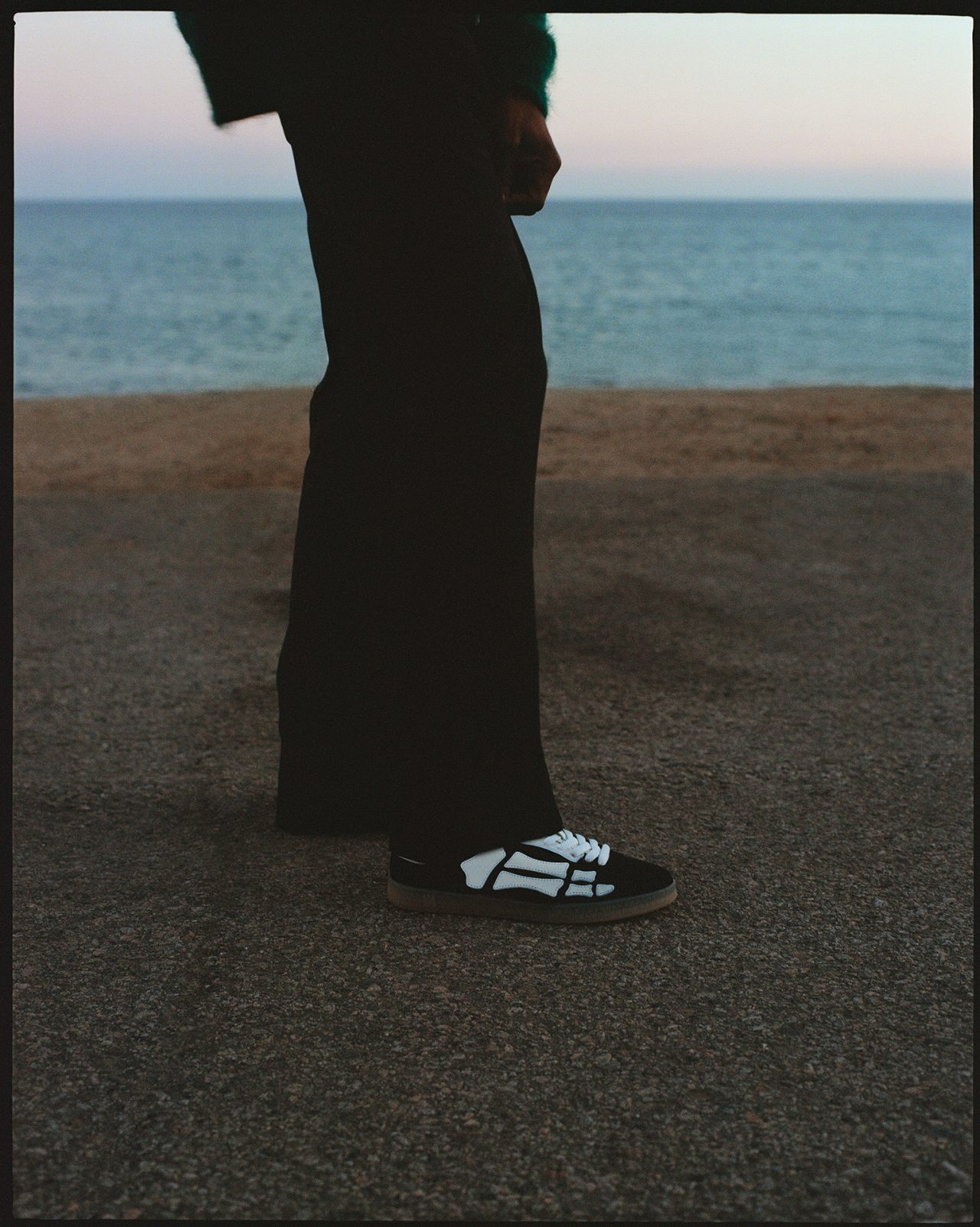 新作「パシフィック・スニーカー」は、AMIRI のルーツでもあるカリフォルニアにインスパイアされたデザインが特徴。西海岸のゆったりとしたライフスタイルを反映し、ブランドの伝統を受け継ぎながらもエフォートレスな美学を追求している。今回は、サイドにレザーのスターアップリケを施した「スター・パシフィック」と、スエード素材のベースに骨のワッペンを配した「ボーンズ・パシフィック」の2型がラインナップ。