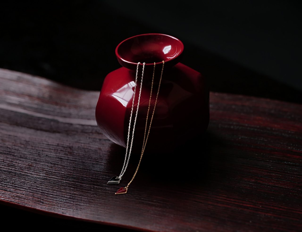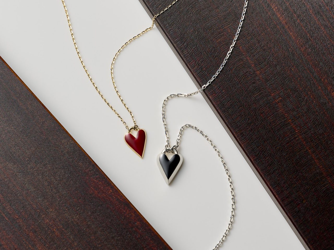 STAR JEWELRY の支援プロジェクト「STAR JEWELRY meets WAJIMA – 響き合うクラフトマンシップ」では、2種類のネックレスを展開。ブランドの定番シリーズに並ぶハートモチーフの「CONNECT WITH LOVE (コネクト ウィズ ラブ)」が、深みのあるレッドとブラックをまとって登場する。ジュエリー職人が製作したペンダントトップに、1888年から続く輪島塗の塗師屋(ぬしや)、「藤八屋」の職人が丁寧に塗りと研ぎを繰り返し、漆の3度塗りで仕上げ、両者の工房を繋ぐ逸品が完成した。朱赤と黒の漆が美しい光沢をたたえ、本漆ならではの存在感を放つ。さらに使用後は柔らかい布で優しく拭くことで漆の艶感が増すという、漆ならではの特長も楽しむことができる。