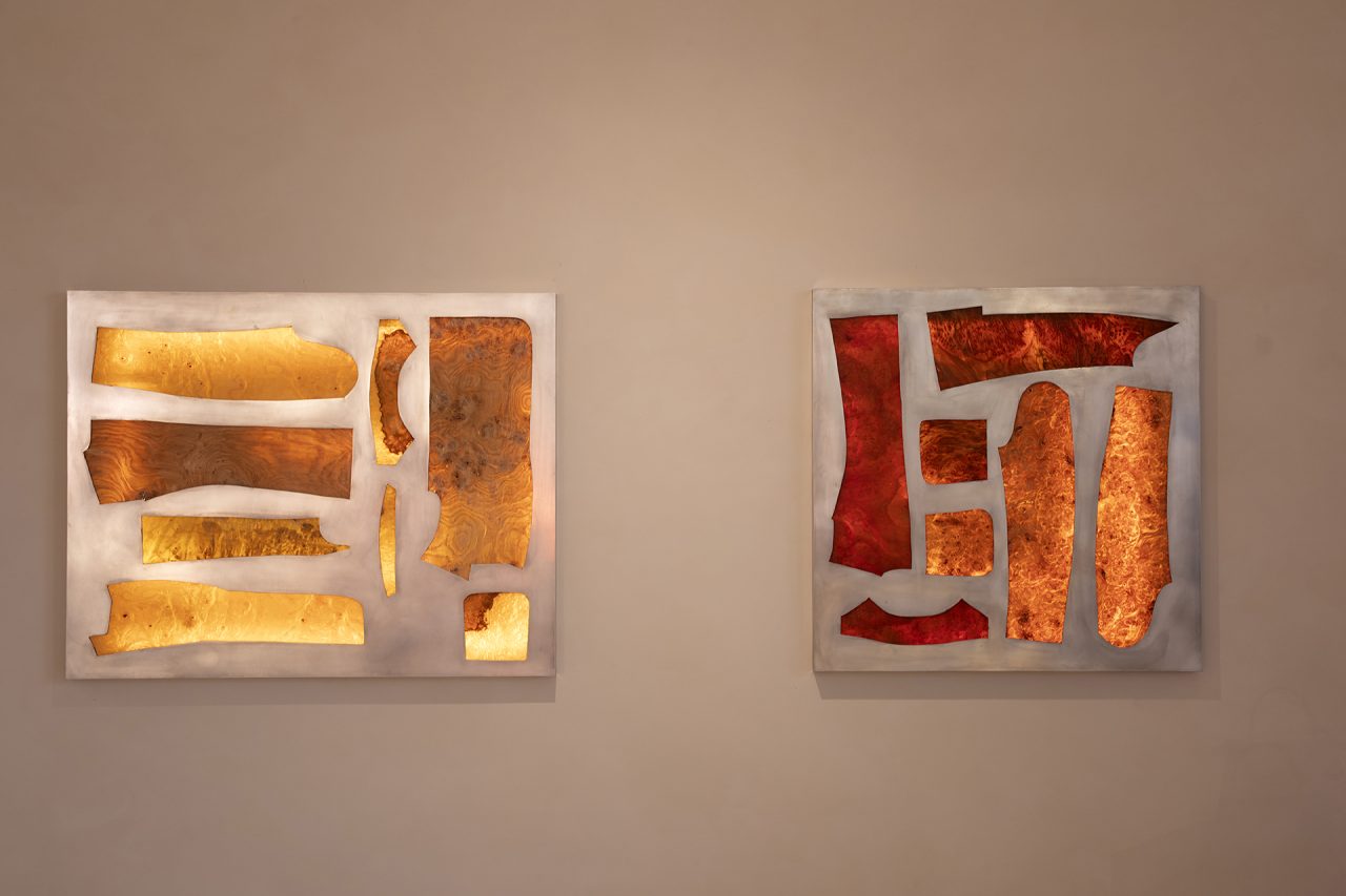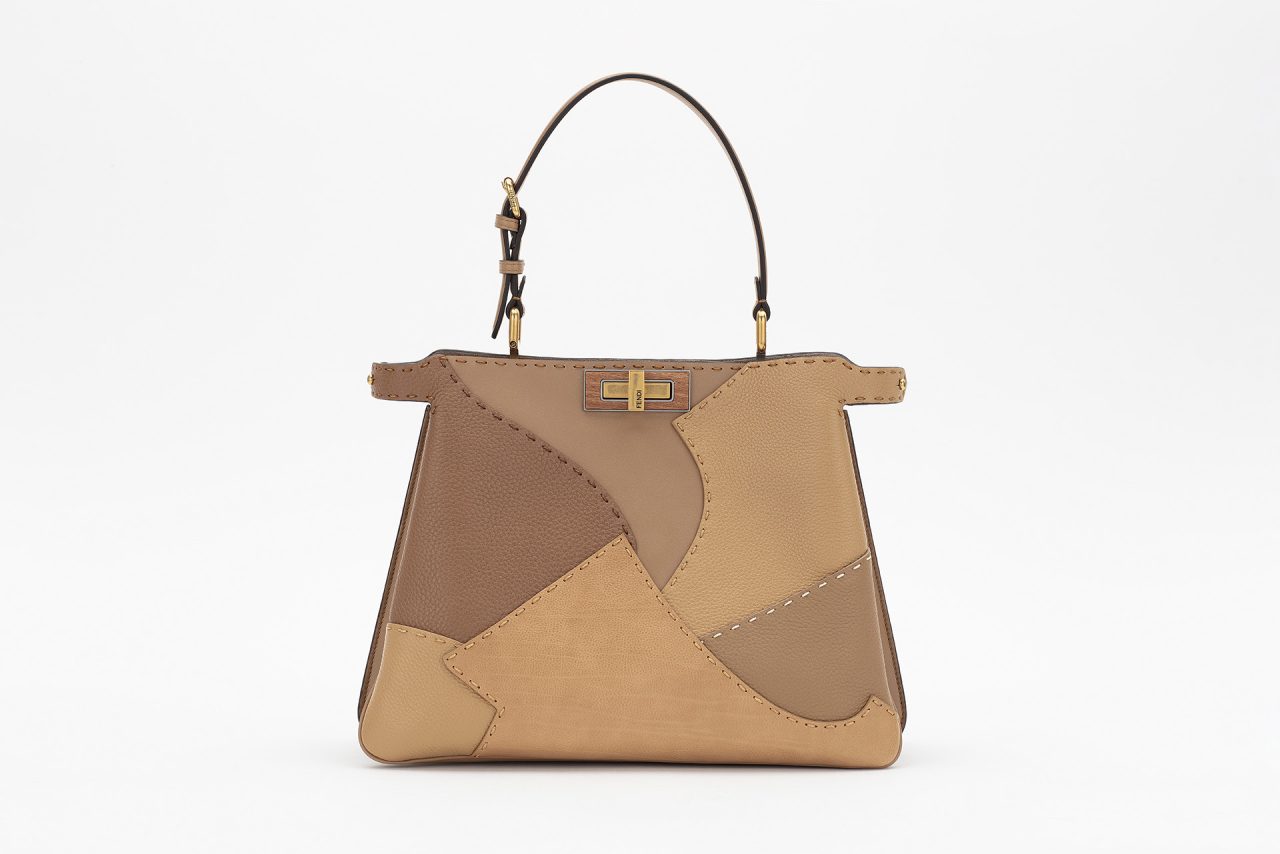 本コレクションでは、ファッションハウスのアトリエにあるジャケットの型紙が Kemmenoe の作品の定番である木材のパッチワークとして再解釈され、ローマの街に広がる松の樹皮は真鍮とアルミニウムへと生まれ変わった。木材や石などと金属のような加工物質の組み合わせは、物質のデュアリズムを表現。また、ボックスジョイントを構造技法としてだけでなく、「FF」ロゴモチーフを統合する手段としても使用している。