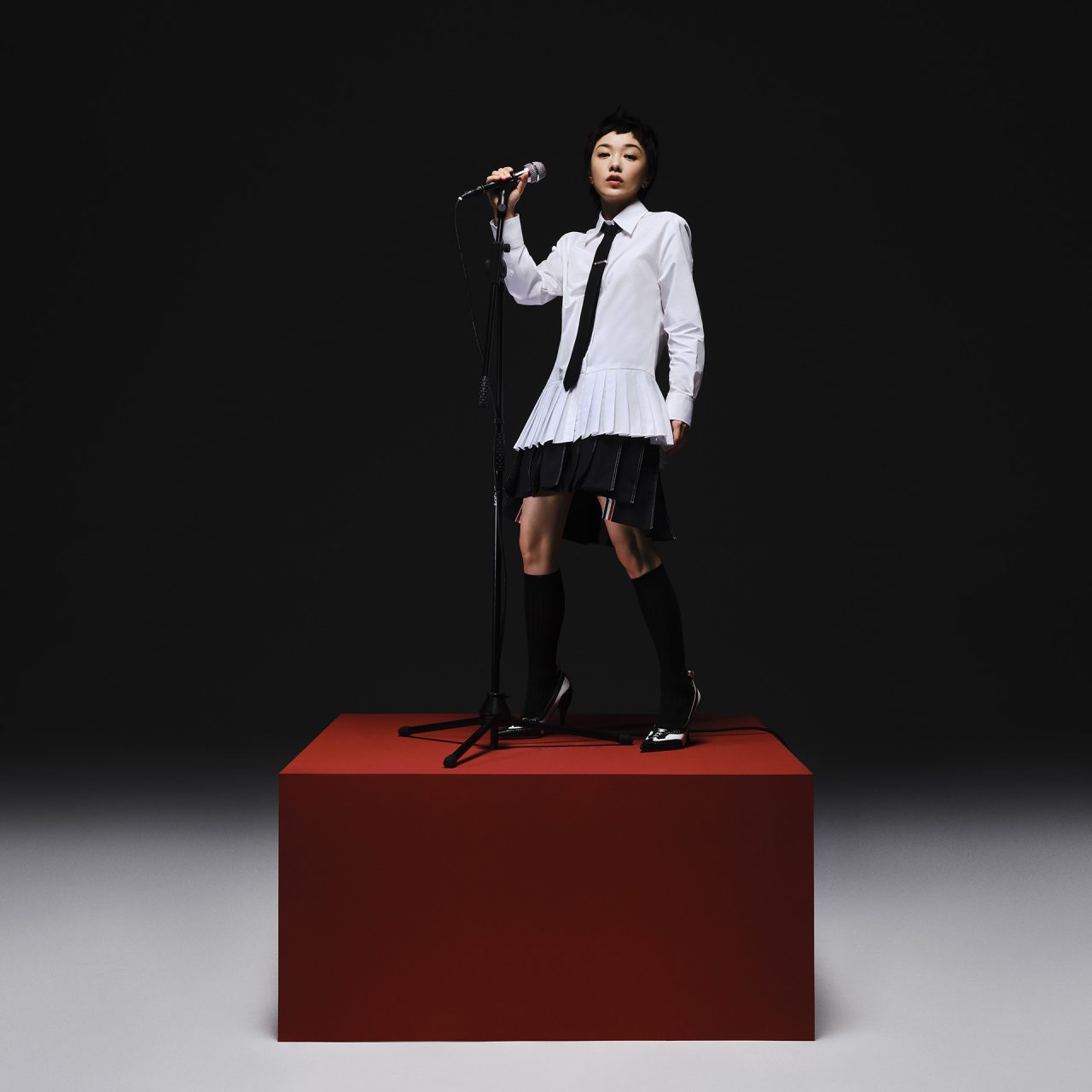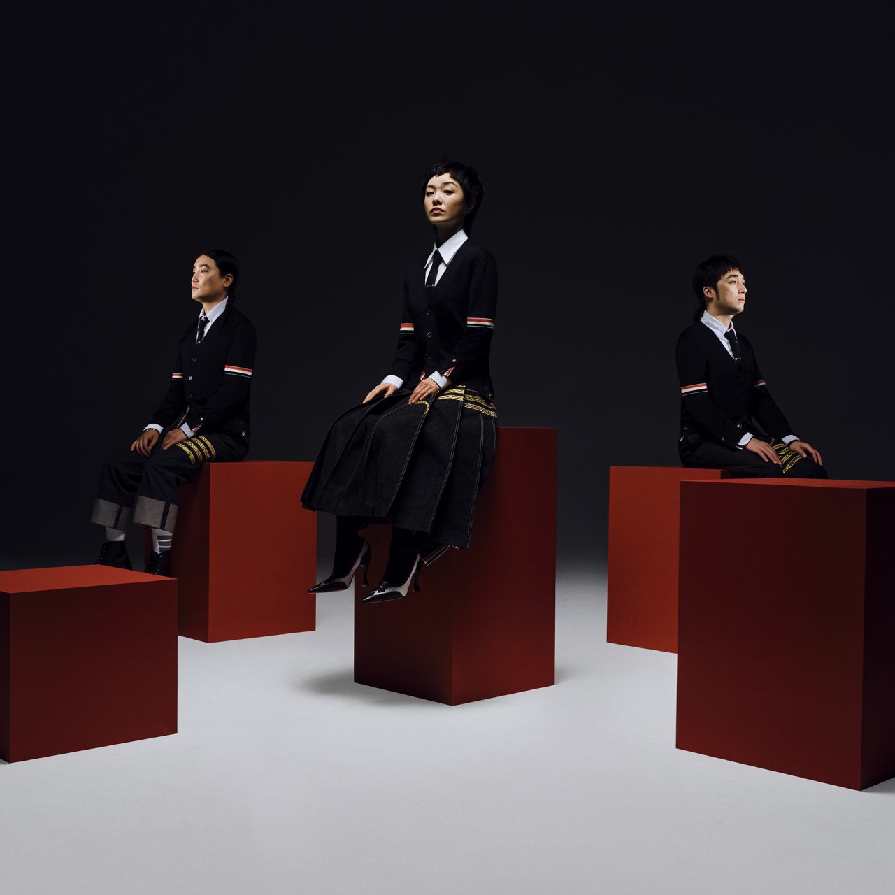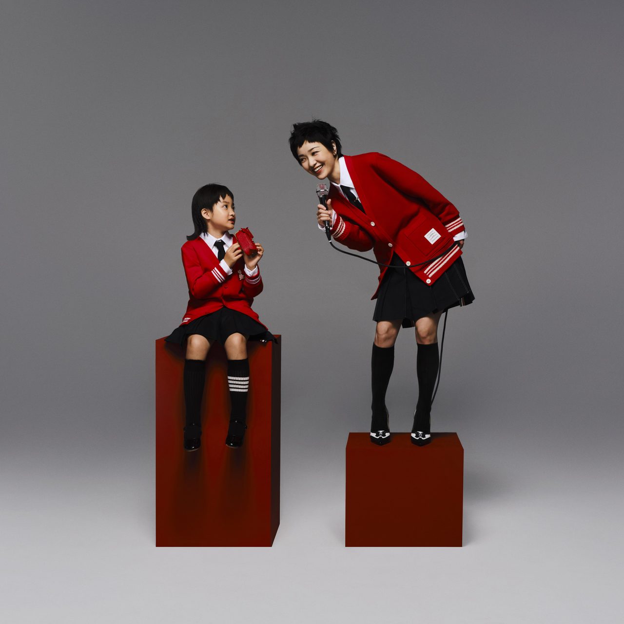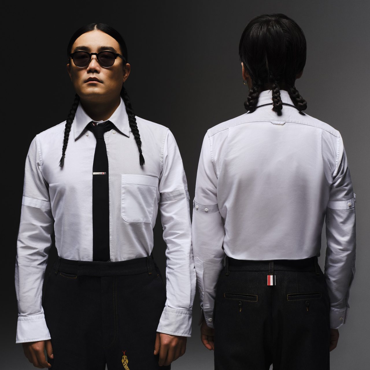 ロックなテイストに落とし込んだビジュアルを披露したのは、Amber Quo と彼女率いるロックバンド Mola Oddity。20世紀のクラシックなロックンロール アイコンを彷彿とさせる出立ちが、トリコロールカラーによく似合う。そしてプレイフルに 4BAR を表現したスネークが化学反応を生み、彼女の個性とクリエイティビティを引き立たせるビジュアルに仕上がった。本キャンペーンは THOM BROWNE の新たな着こなしを体現し、2025年、一歩踏みだす人々に力強さを与えてくれる。