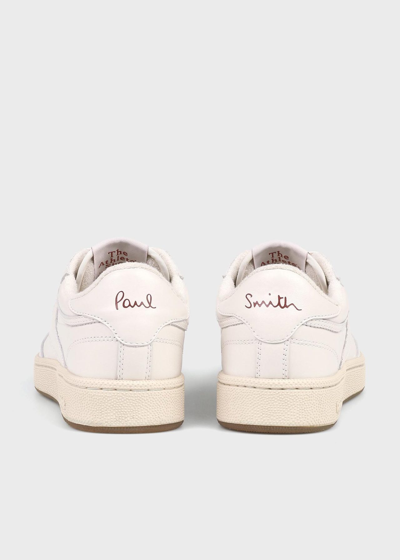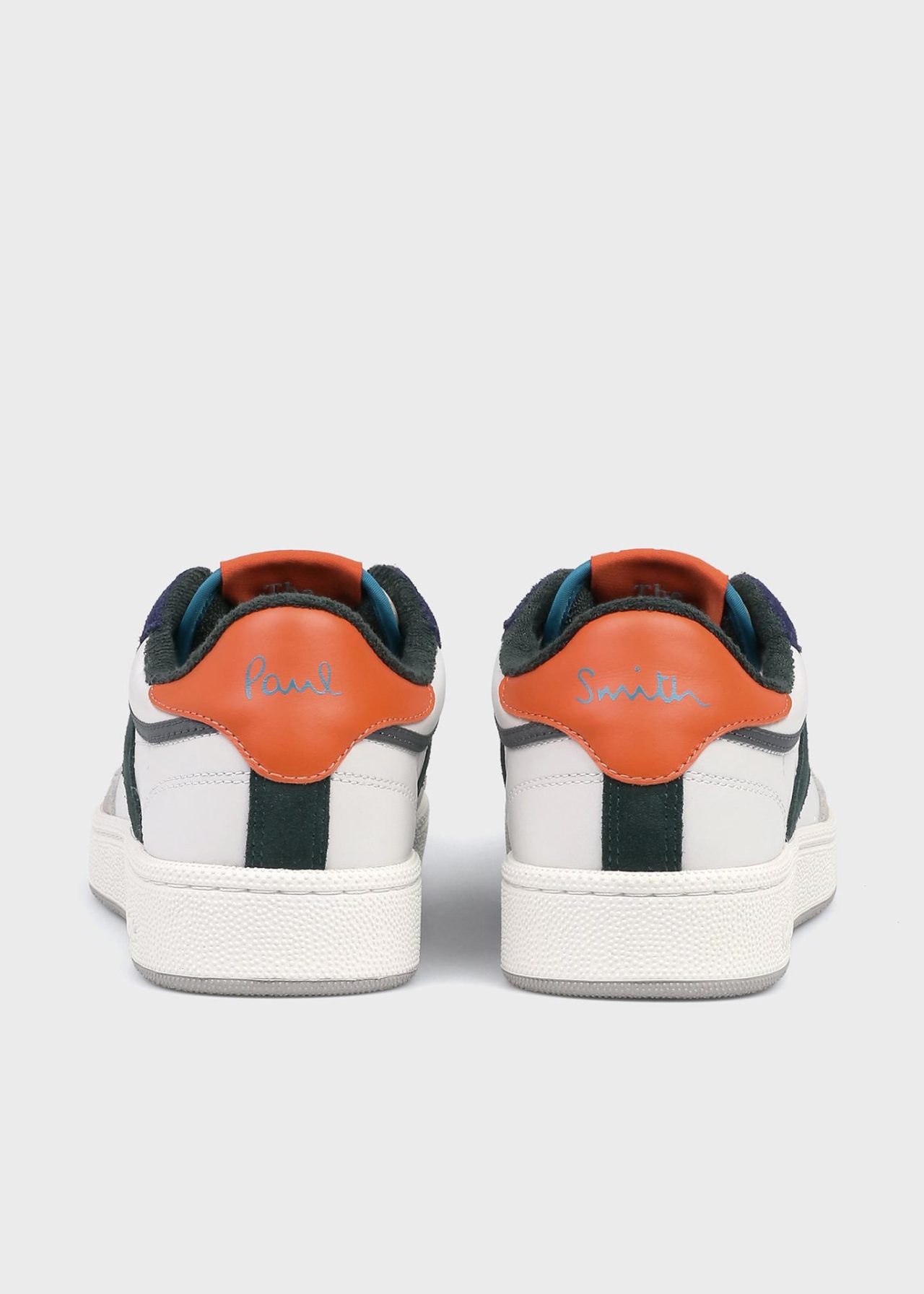 カラーはオフホワイト、バーガンディー、グレーの3色展開。オフホワイトは、ソフトでなめらかなガーメントレザーをアッパーに使用した、しなやかな履き心地が特徴。アウトソールと左足ボディの側面には、Paul Smith のシグネチャーストライプがさりげなくあしらわれている。バーガンディーは、2016年に Paul Smith (ポール・スミス) 氏がデザインを手がけた世界に1台の車両、Land Rover Defender (ランドローバー ディフェンダー) のカラーリングに着想を得たもの。バーガンディー、ネイビー、グリーンの深みのある色合いに、蛍光イエローのラインがアクセントとして加えられている。そして、グレーはイギリスのライトブランド Anglepoise (アングルポイズ) とのコラボレーションで発表した「Anglepoise® Type75ランプ」のカラーにインスパイアを受けたデザイン。グレー、ネイビー、グリーンの引き締まった色味に、明るいオレンジを効かせている。