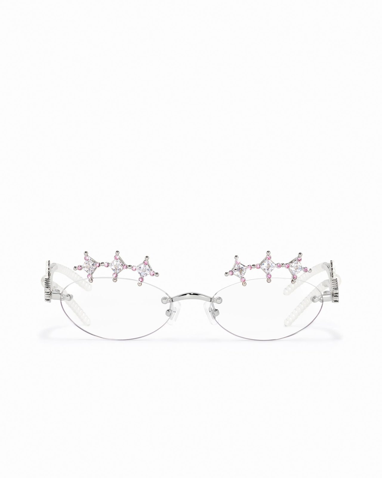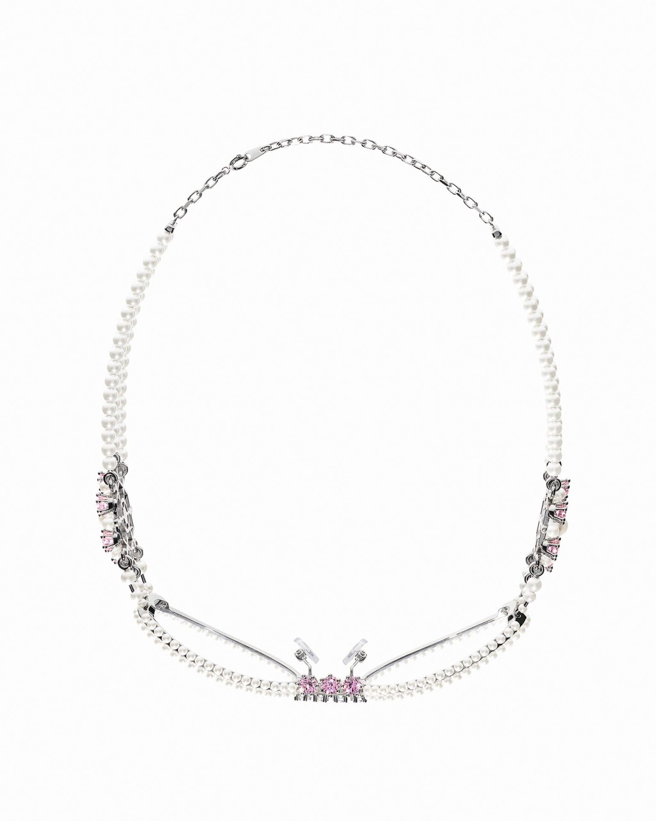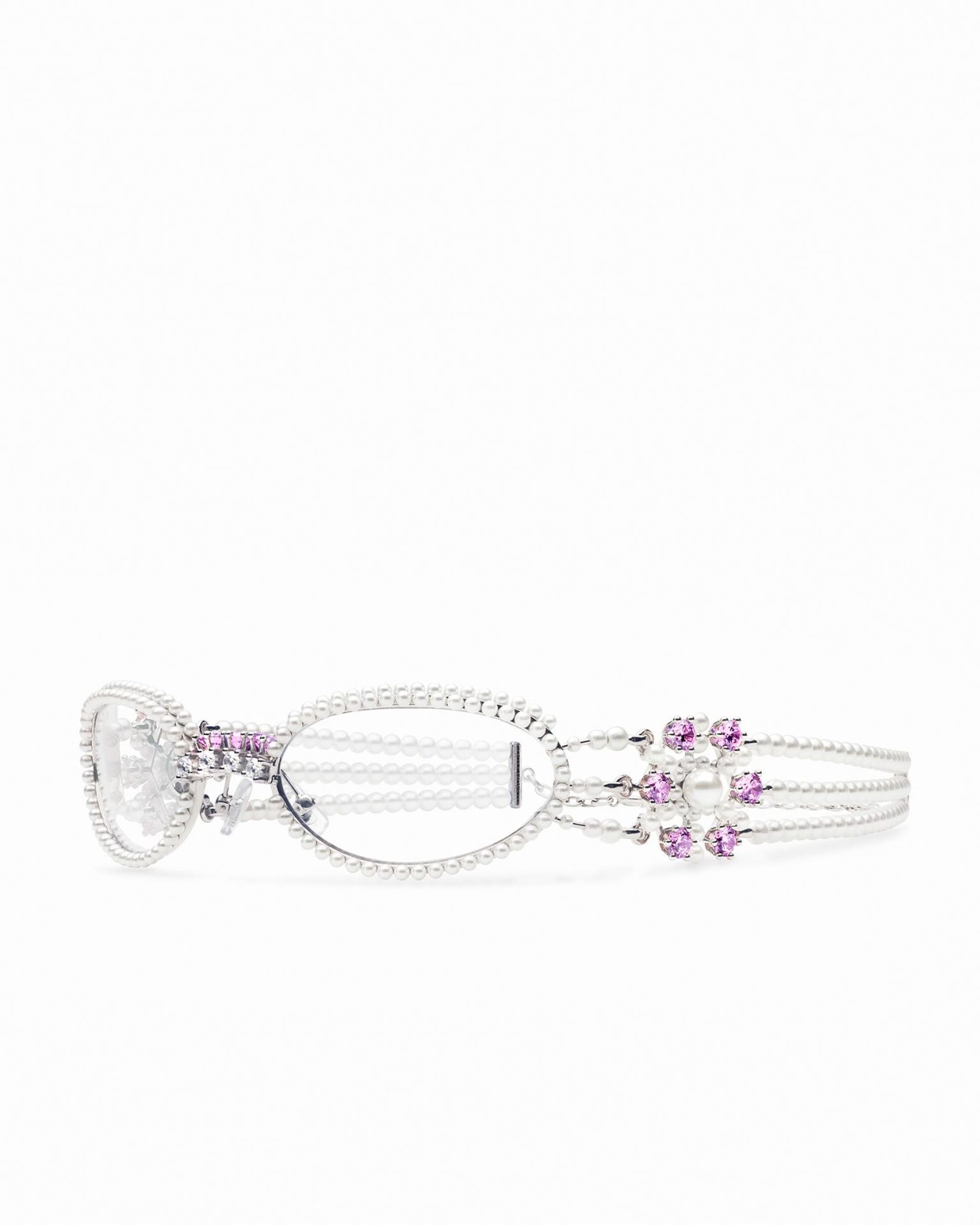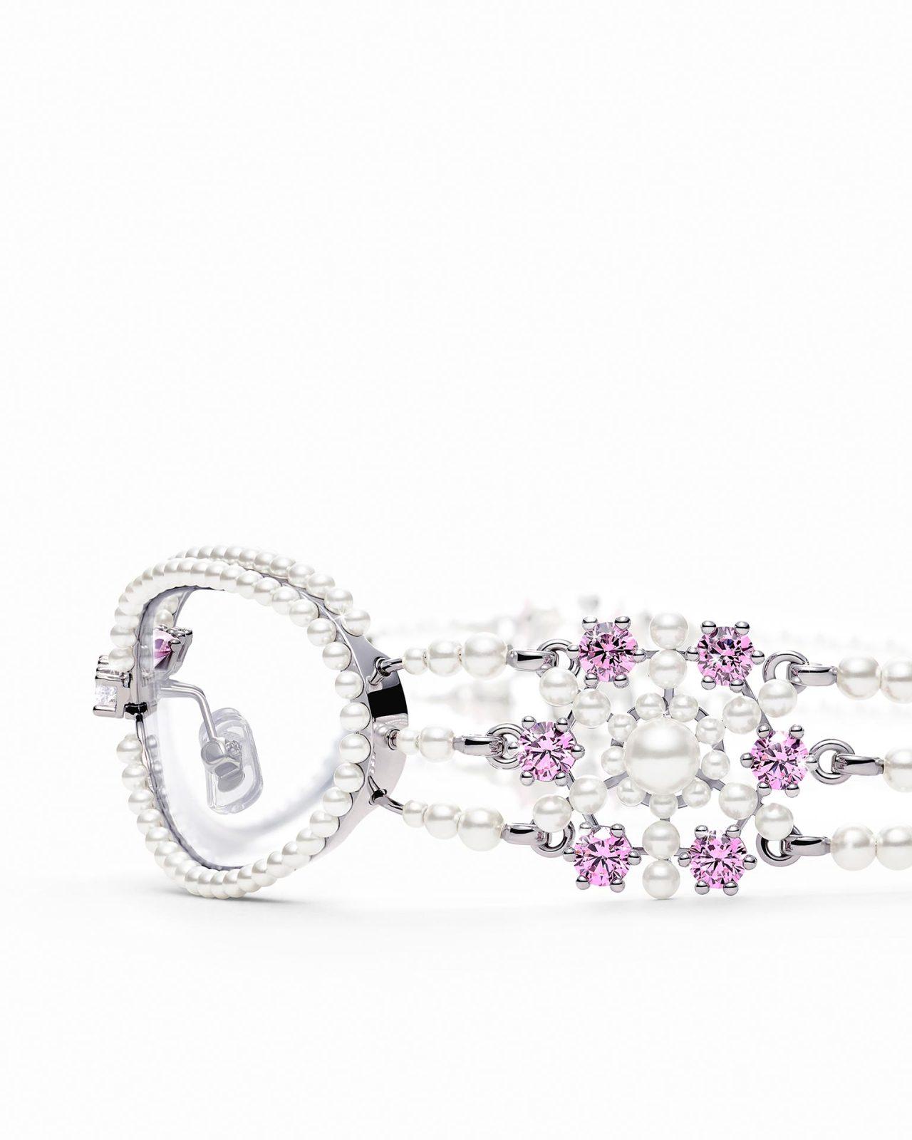 本コレクションでは、ジュエリーのディティールを独創的な美的感覚で再解釈。アイウェアのテンプルにはジュエリーディティールが施され、精巧さが目を惹くデザインに。また、パールネックレスを連想させるようなステートメントピースも登場し、GENTLE MONSTER の芸術的なインスピレーションが集約されたラインナップとなっている。