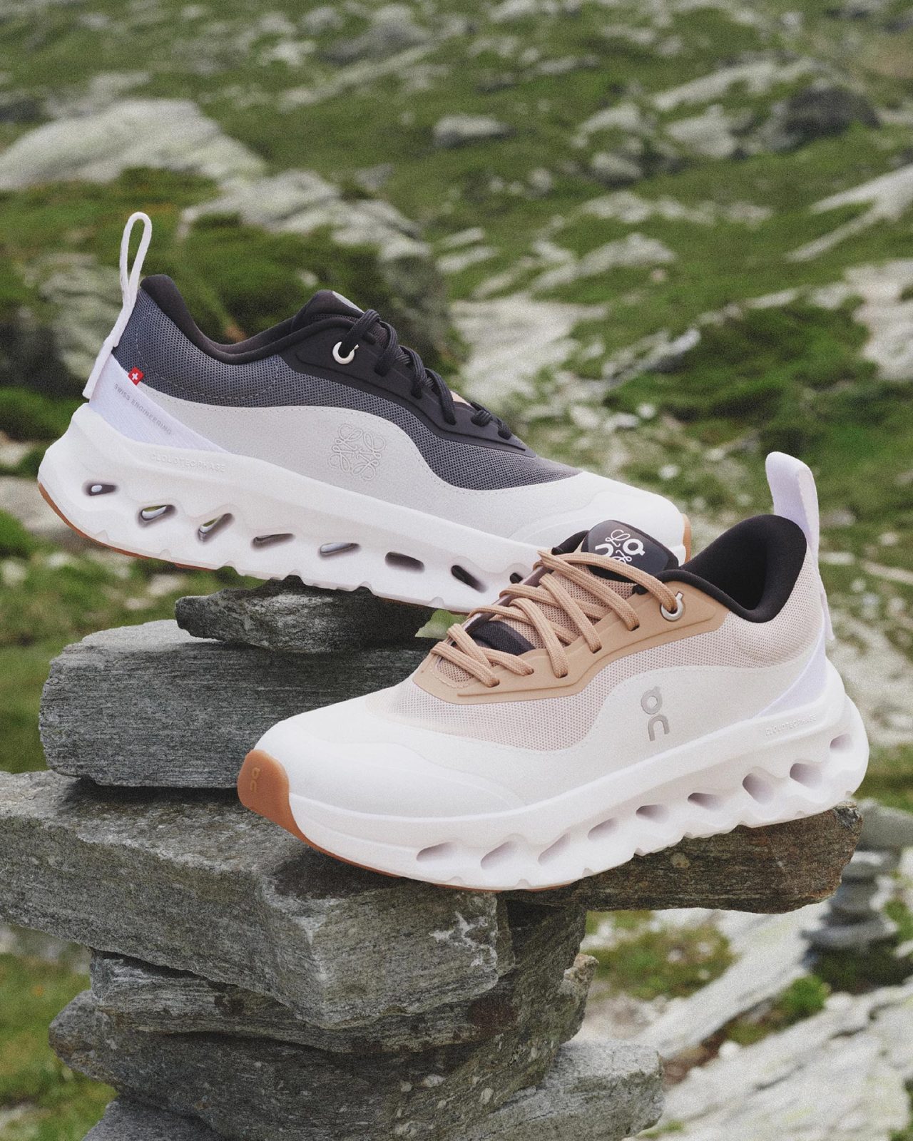 デイリーから雄大な自然の散策にも最適な「クラウドティルト 2.0」はメンズ、ウィメンズを展開。本コレクションでは新色として、オールホワイト、ホワイト/カーキグリーン、ホワイト/オレンジのカラーリングを揃え、ホワイト/ネイビーをオンラインストア限定で販売している。そのほか、ブラックホワイト/ガム、タンホワイト/ガムもお目見え。