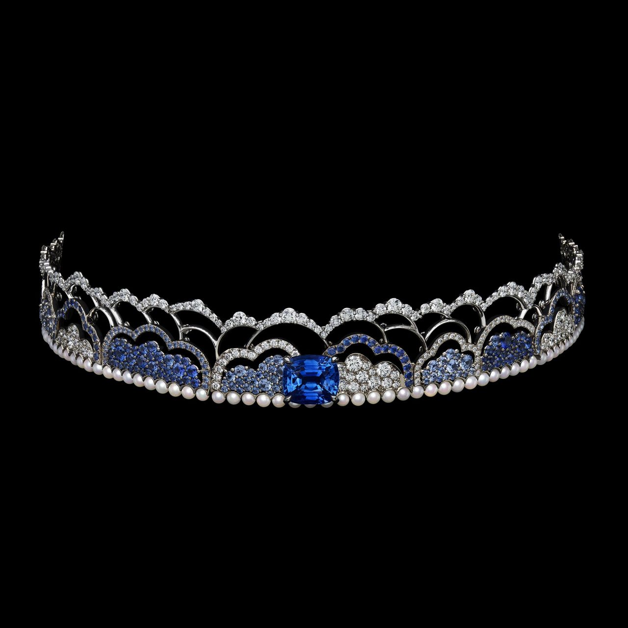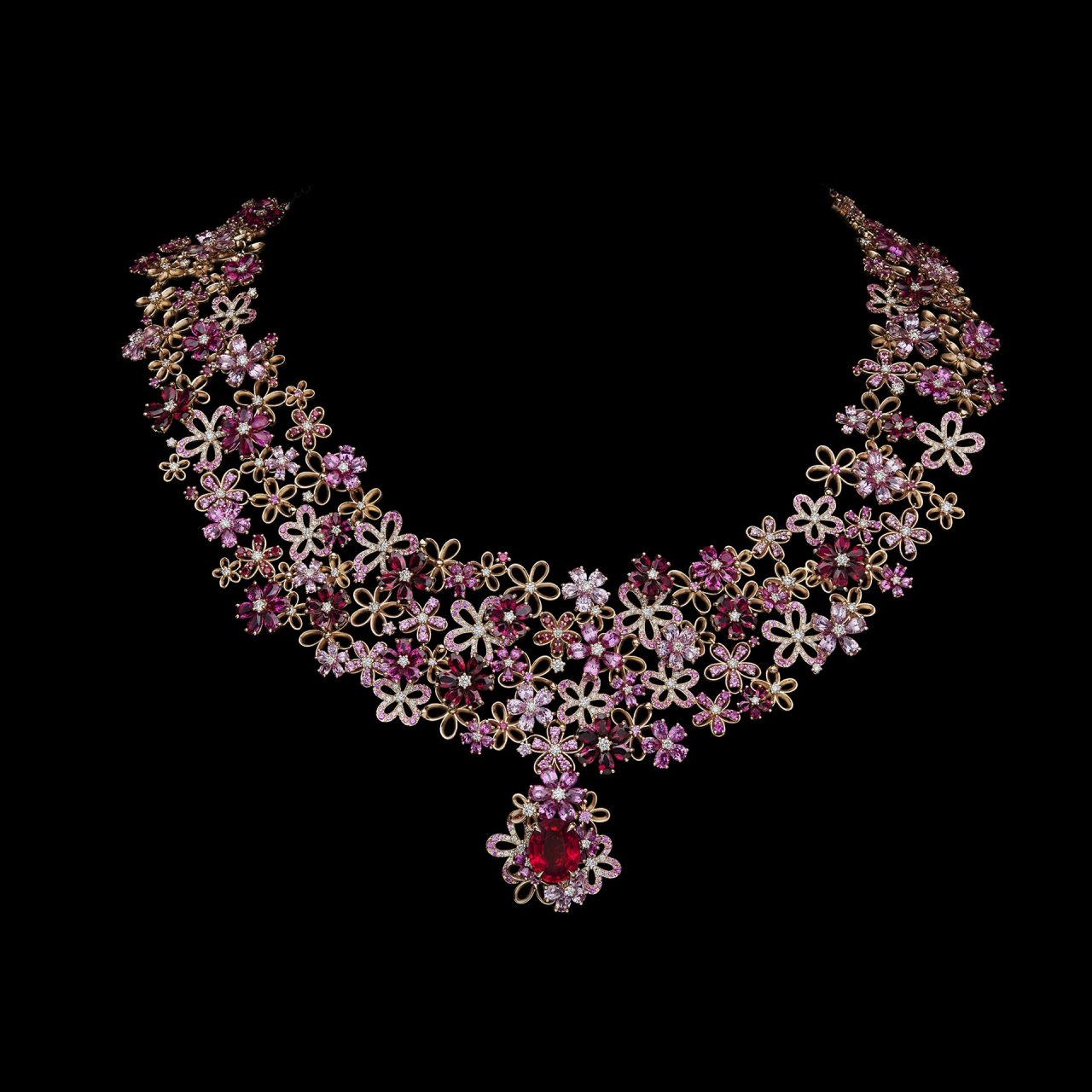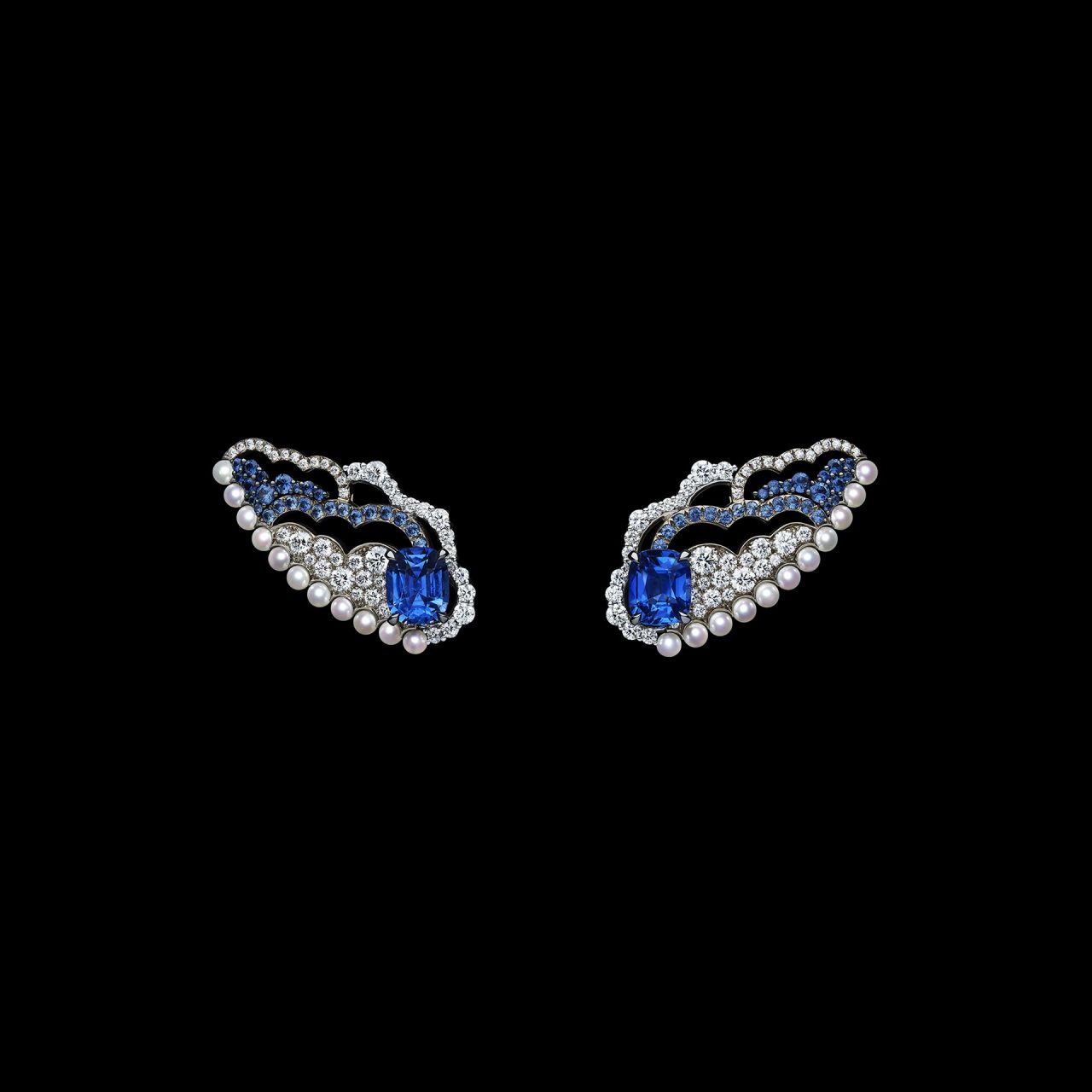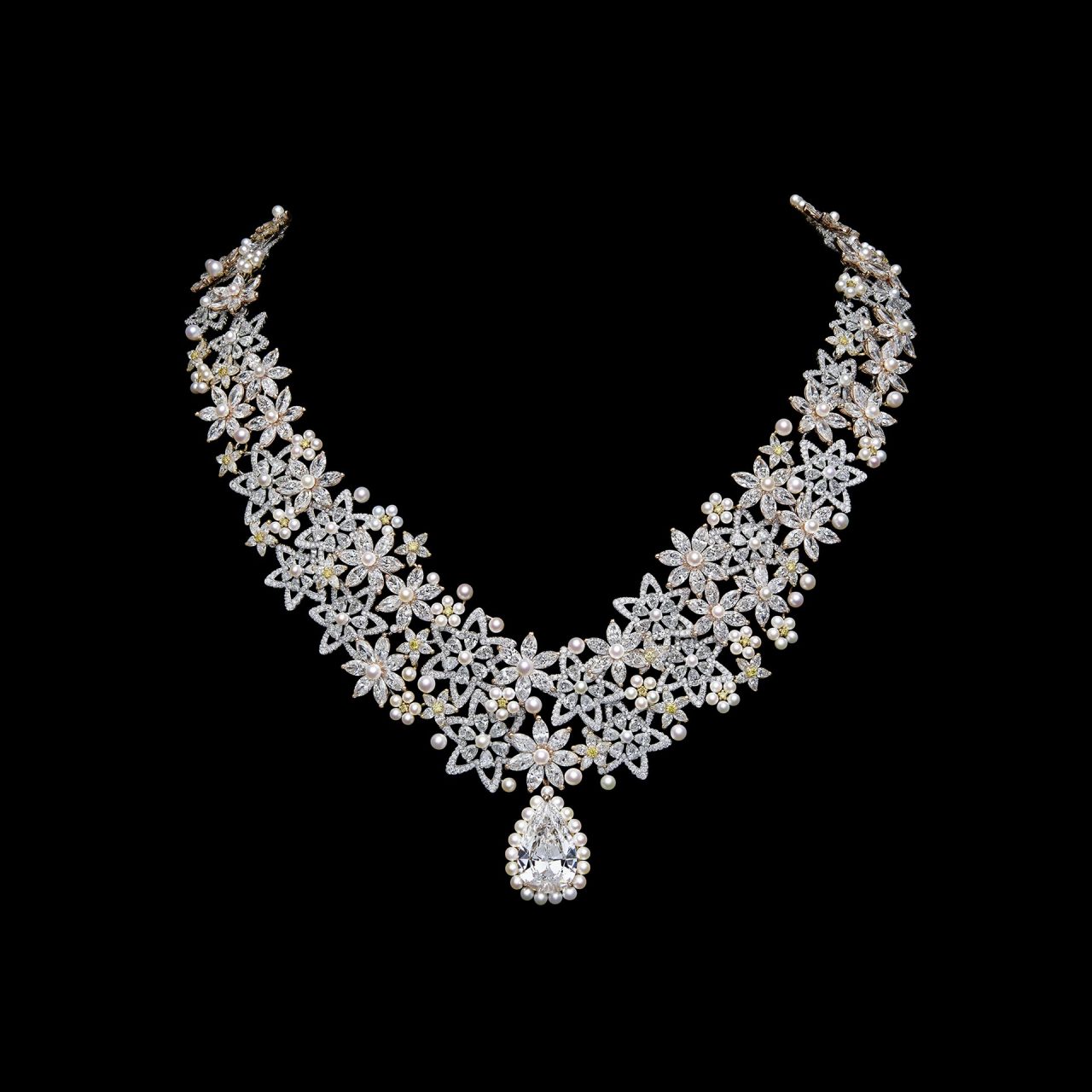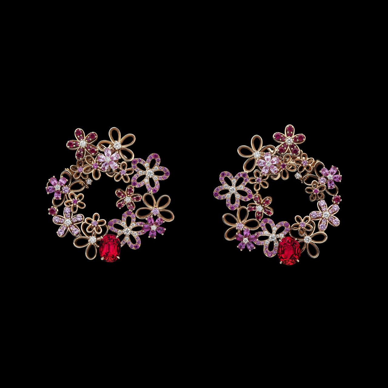 ホワイトやイエロー、ピンクゴールドを基調とし、クチュールの上質な糸で織られたレースを彷彿とさせる精巧なデザインが特徴的な本コレクション。煌めきと軽やかさが交錯し、あしらわれた珠玉の宝石と優美なパールがもたらす輝きの色彩が華やかさを際立たせている。さらに、洗練されたギピュールレースの織り目を思わせる、繊細な細工を施したセッティングとダイヤモンドやルビー、トルマリン、サファイアの幾重にも放たれる輝きの組み合わせも印象的だ。きめ細かさと豊満さが共生した唯一無二のデザインでオートクチュールのエスプリを体現するクリエイションは、Victoire de Castellane の大胆さと創造性、そして卓越した職人技により生み出されていく。