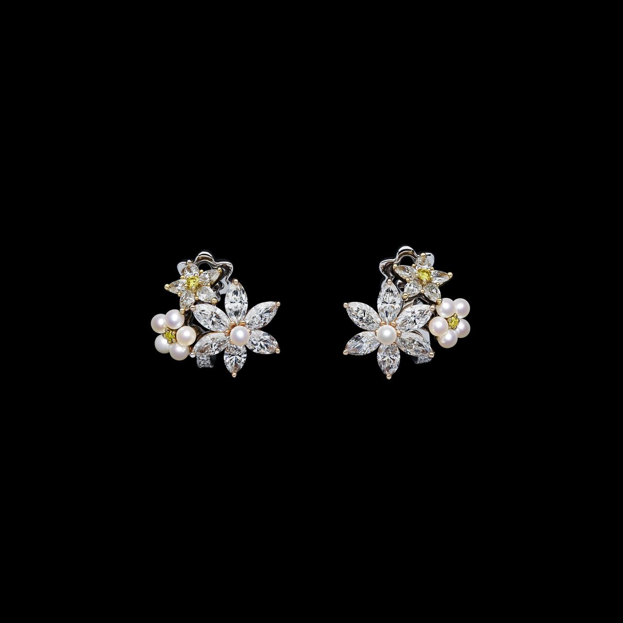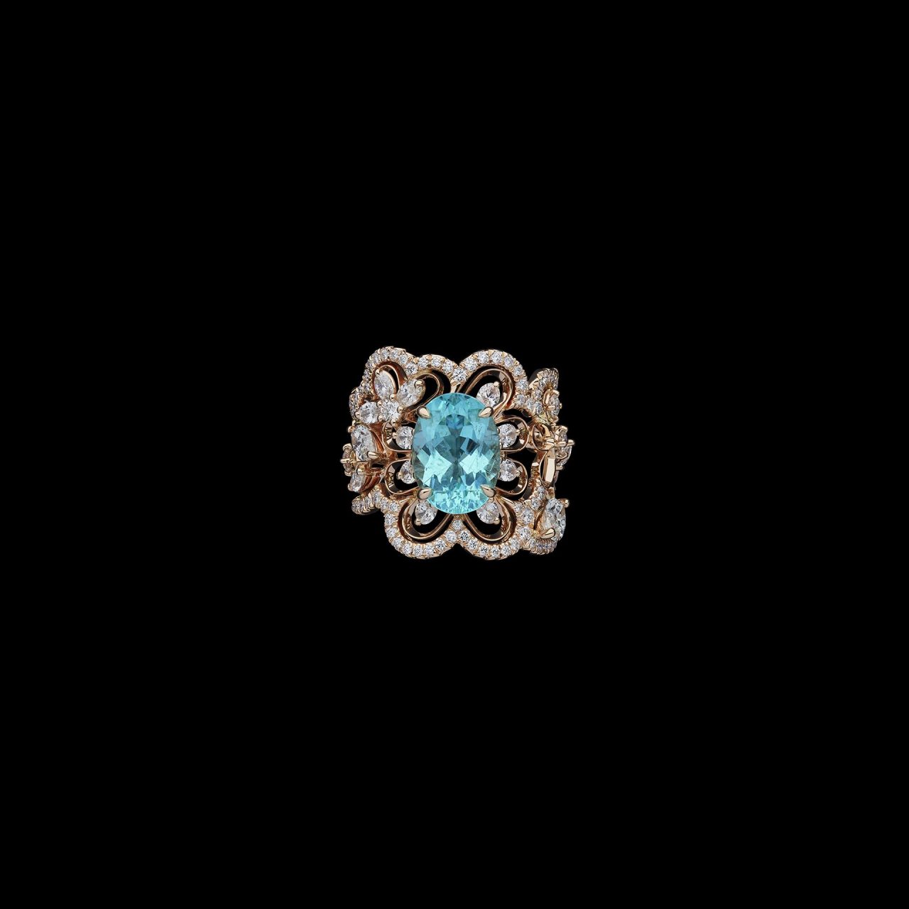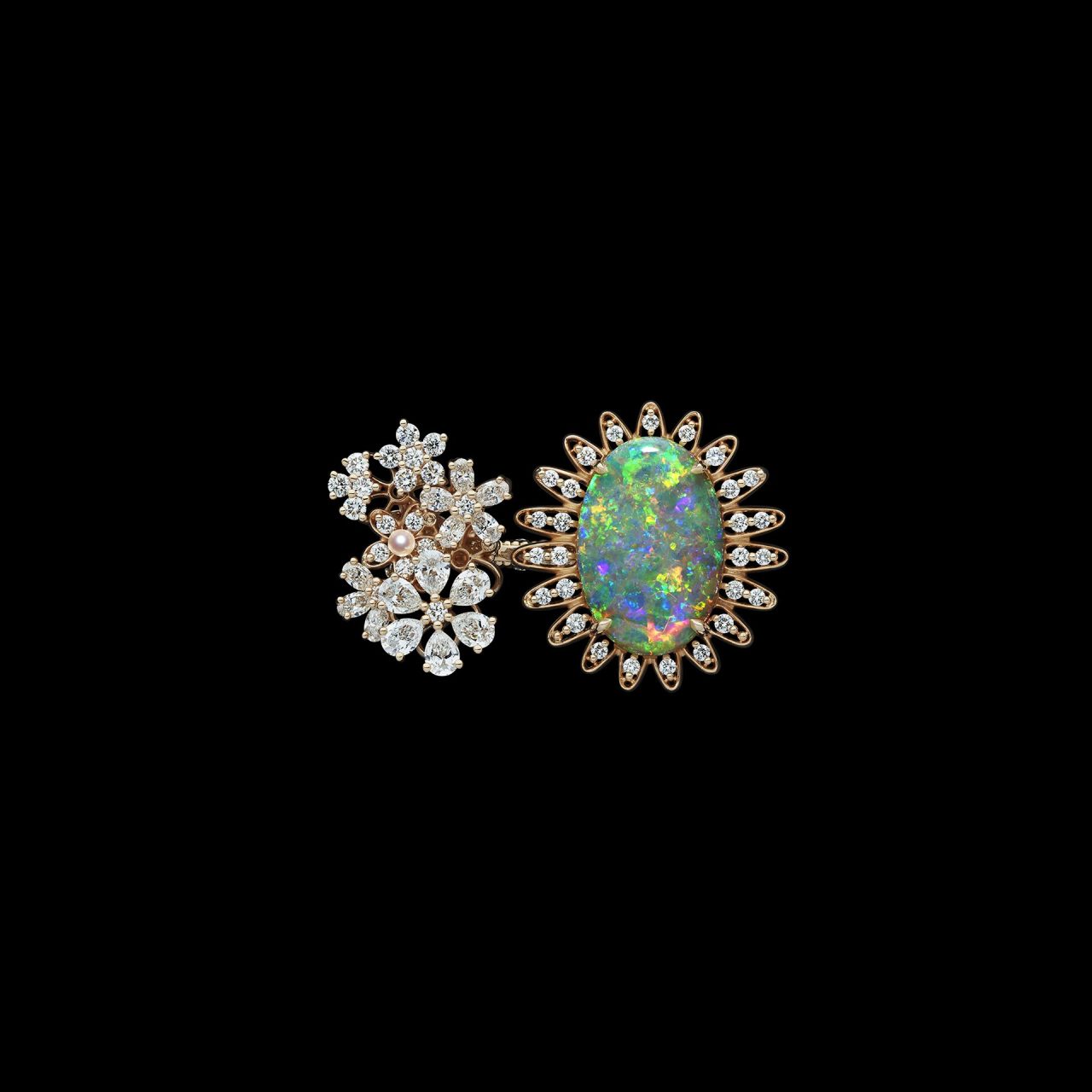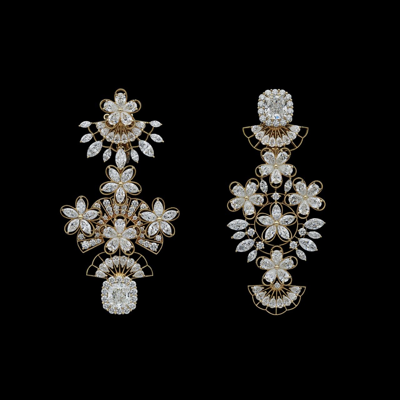ホワイトやイエロー、ピンクゴールドを基調とし、クチュールの上質な糸で織られたレースを彷彿とさせる精巧なデザインが特徴的な本コレクション。煌めきと軽やかさが交錯し、あしらわれた珠玉の宝石と優美なパールがもたらす輝きの色彩が華やかさを際立たせている。さらに、洗練されたギピュールレースの織り目を思わせる、繊細な細工を施したセッティングとダイヤモンドやルビー、トルマリン、サファイアの幾重にも放たれる輝きの組み合わせも印象的だ。きめ細かさと豊満さが共生した唯一無二のデザインでオートクチュールのエスプリを体現するクリエイションは、Victoire de Castellane の大胆さと創造性、そして卓越した職人技により生み出されていく。