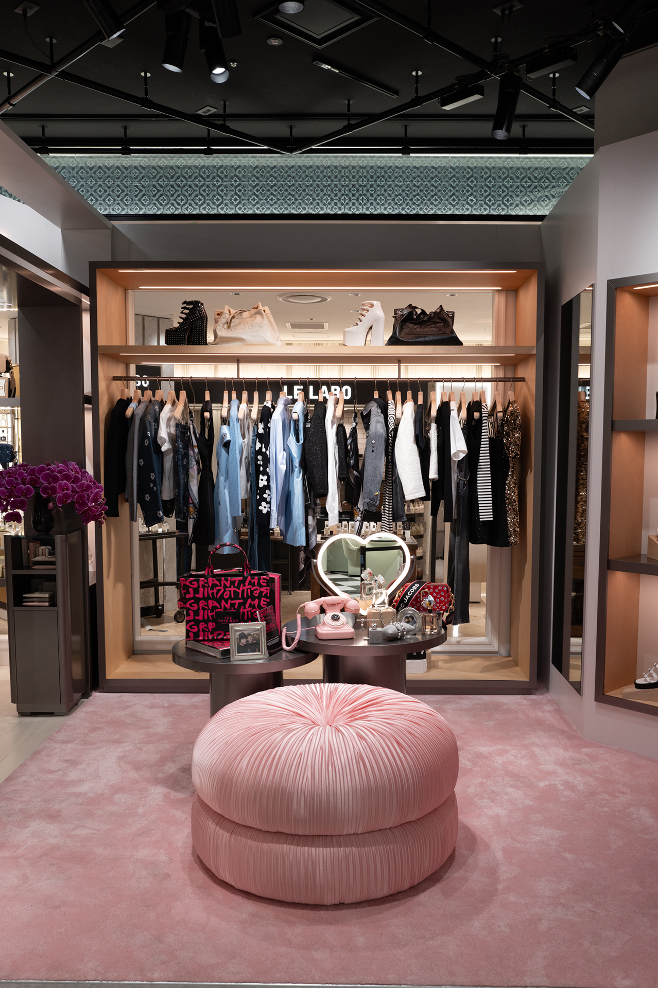 そして会場を彩るのは、2020年フォールコレクションを最後に、その後はニューヨークのバーグドルフ・グッドマン限定で展開していたランウェイコレクション。シューズやハンドバッグ、スモールレザーグッズ、ジュエリー、フレグランスなどの最新コレクションも取り揃えられている。
