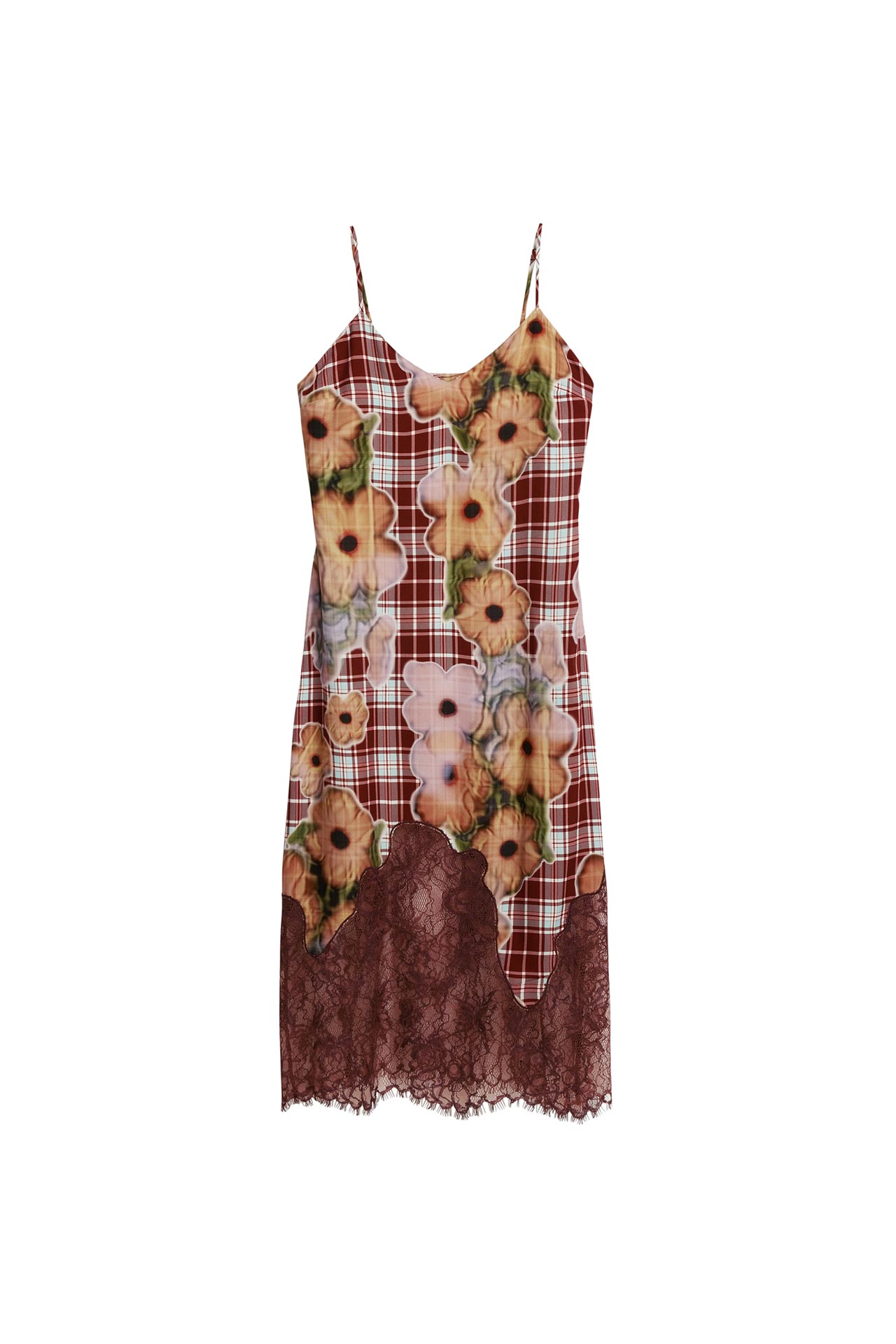 ラインナップするのは、立体的なポケットが付いたオーバーサイズのクロップジャケットや、アシンメトリーレースをあしらったヘムラインのスリップドレスのほか、コーディネートのポイントで使用したいボタニカルなボクサーパンツも登場。グリーンのサテンジャケットとパンツのセットは、繊細できらめきのある仕上げと意外なポケットの配置で、斬新なトラックスーツルックを提案する。また、コンセプトに沿った抽象的なデザインにも注目。水彩画風の花柄とタータンチェックの組み合わせ、ダークな雰囲気を醸し出すひまわりやデイジーに幾何学的なチェックを彩ったプリント、ピンクの花園が煙のスクリーンでぼやけるような幻想的なデザインなど、Hillary Taymour によりイマジネーションの世界が奥深く表現された。