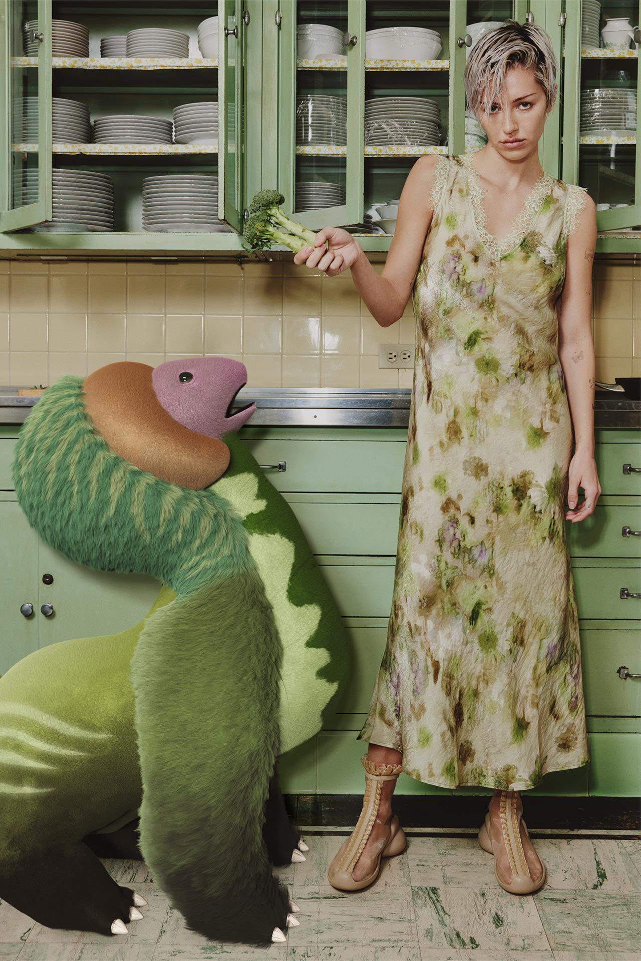ニューヨークを拠点とするデザイナー、Hillary Taymour (ヒラリー・テイモア) により創設された Collina Strada は、反骨的なクリエイティビティとサステナビリティを掛け合わせたユニークさが人気を集めている。「メタモフォシスター」をテーマにファンタジーな世界観を演出した第1弾に続き、今作は「イマジネーション」を軸に展開。ノスタルジックな視点から、子供のころに見た夢の世界を表現する。モデルに起用されたのは、これまでにも Desigua のシーズンビジュアルに登場してきた Amelia Gray (アメリア・グレイ) の妹である Delilah Bell (デライラ・ベル) 。幼心を感じさせるどこか懐かしいビジュアルは、かつての記憶を思い起こさせる。