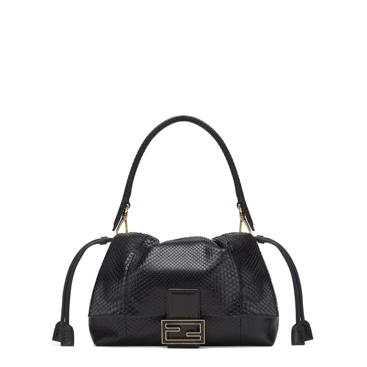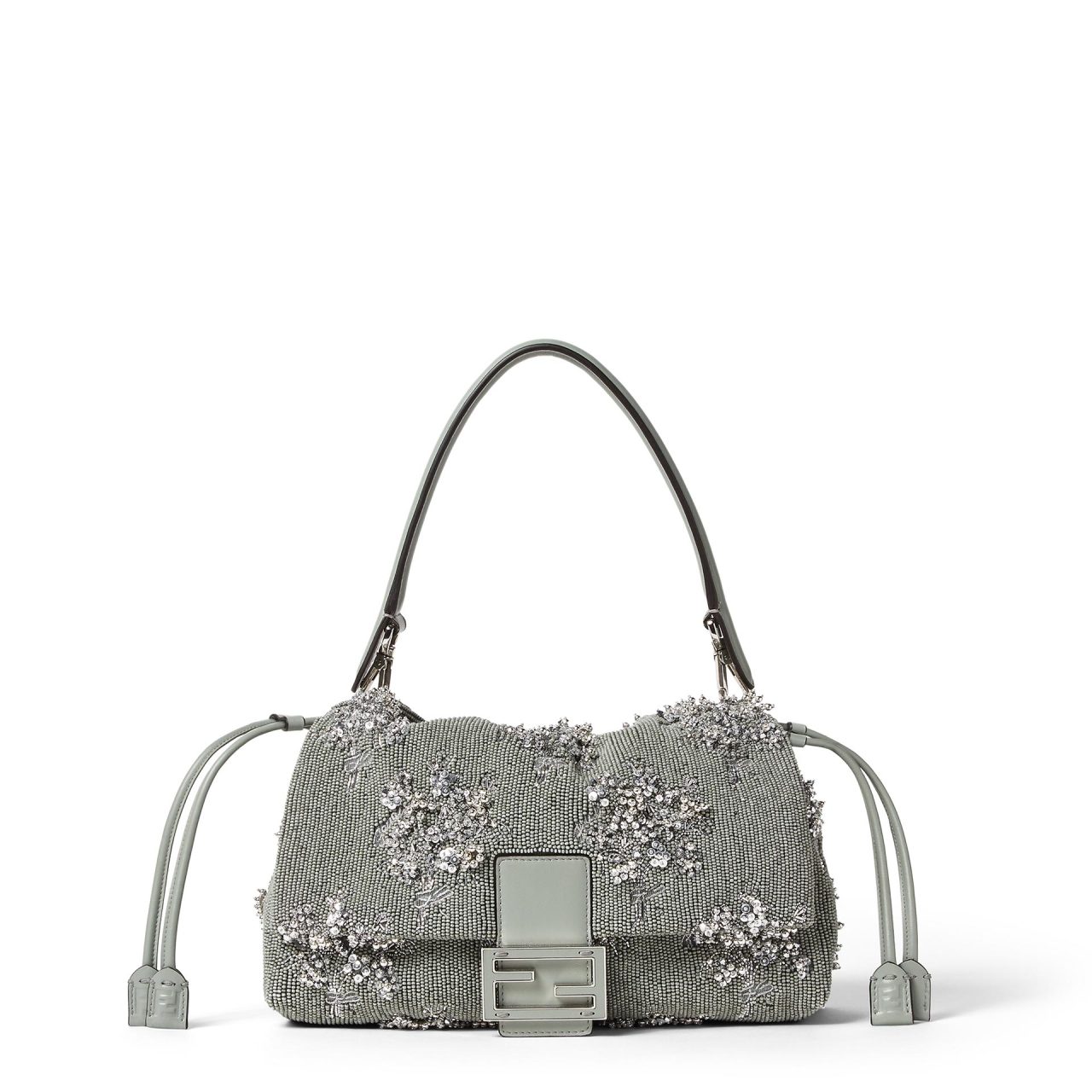 FENDI が新たに発売したのは、アイコニックなショルダーバッグ「Baguette (バゲット)」よりもサイズが大きいことから「Baguette」の母親ともいえる存在として知られる「Mamma Baguette」。長方形のシェイプやフラップの開閉、小脇に抱えるスタイルなど、「Baguette」の特徴が反映されている。また、シグネチャーである「FF」ロゴバックルには、メゾンが誇るレザーグッズのヘリテージに敬意を表し、レザーのインレイも施されている。さらにラージ、ミディアム、スモールの3つのサイズで展開するほか、調節可能なレザーストラップによりハンドバッグやクロスボディバッグとして使用することもできる快適さと収納力を備える。ブラックパイソンに加えて、タイムレスなカラーパレットがビーズやスエードのベースに施された今シーズンを象徴するユニークなフローラルエンブロイダリーによって彩られている「Mamma Baguette」は、FENDI 直営店および公式オンラインにて販売中だ。