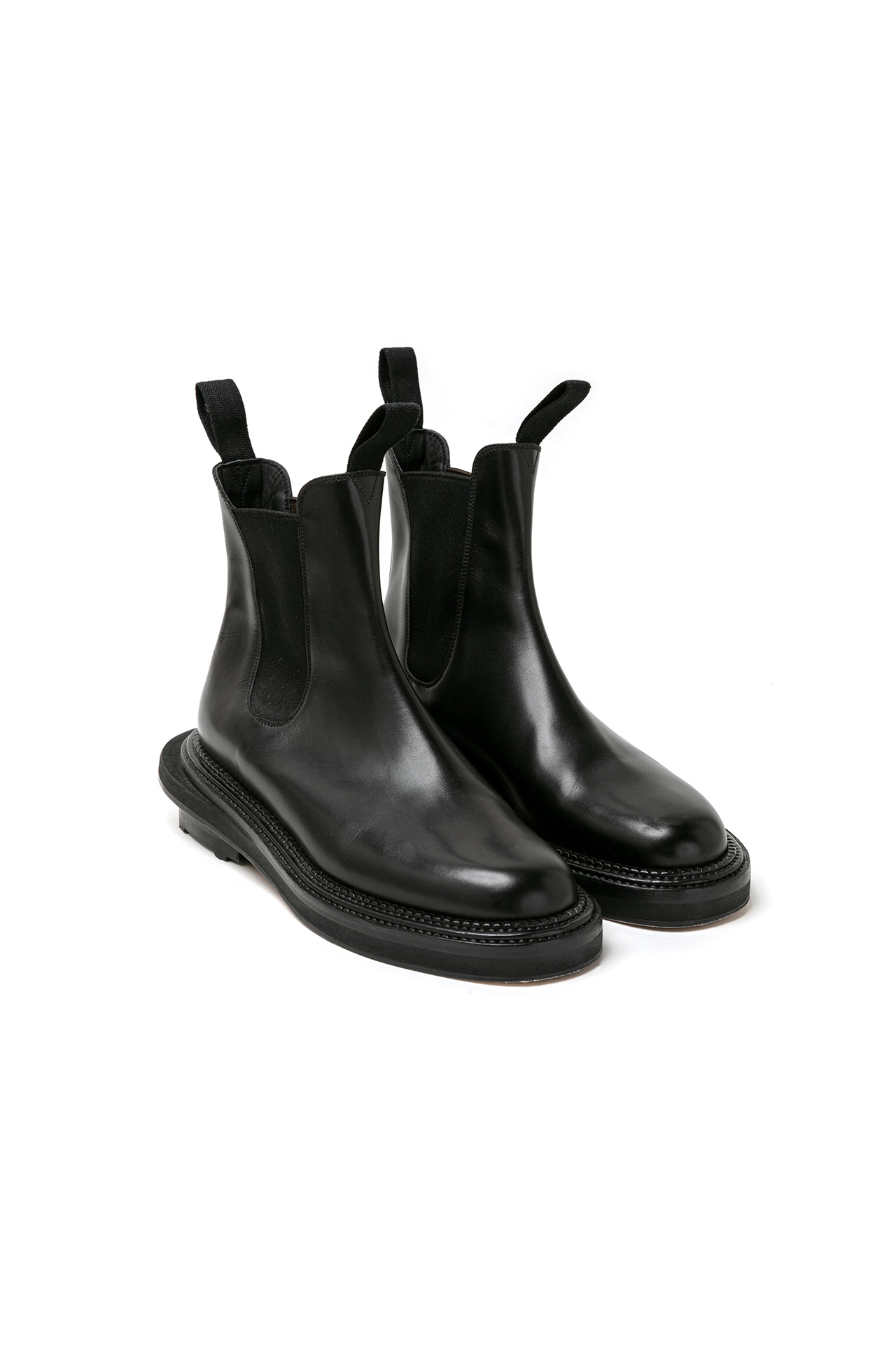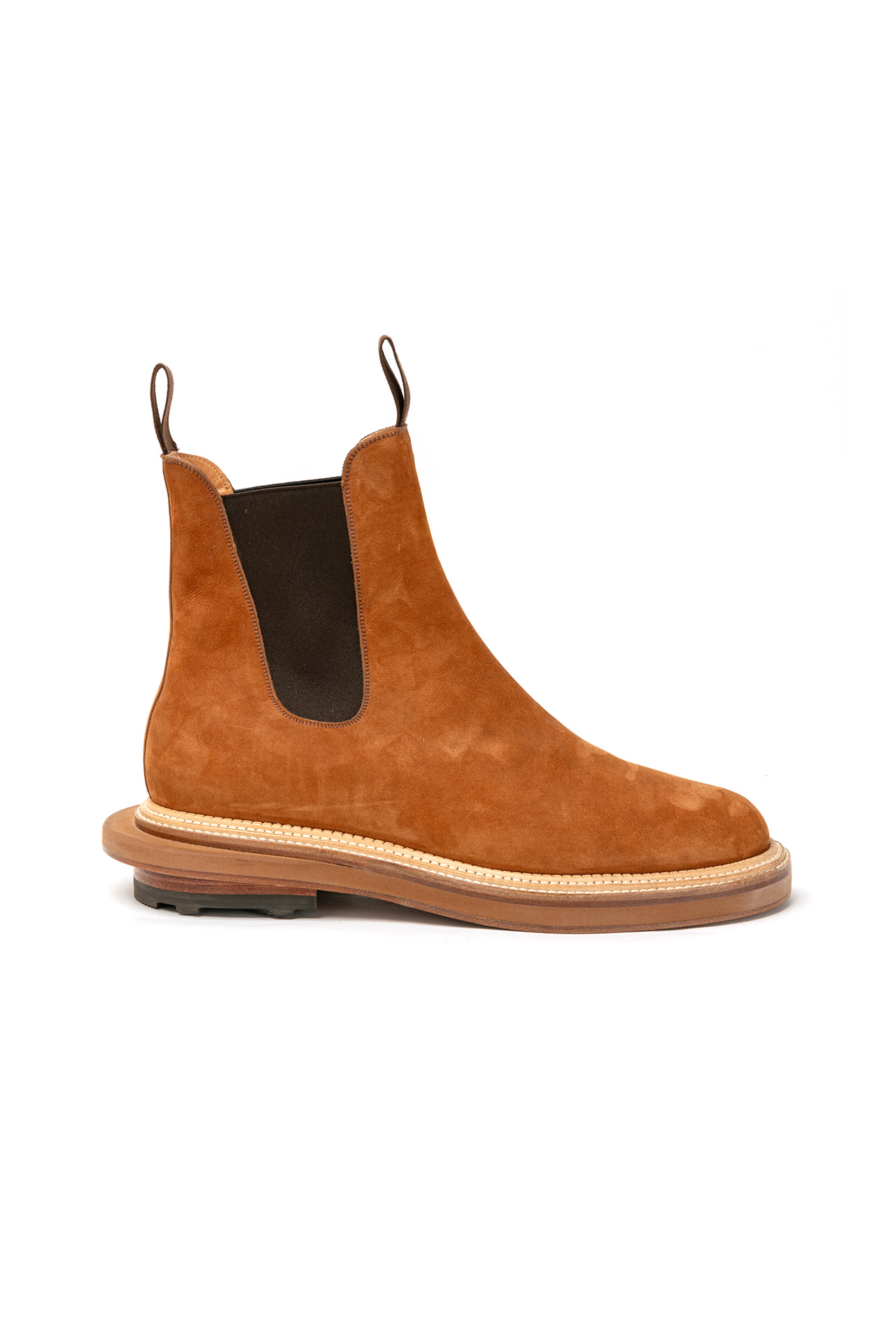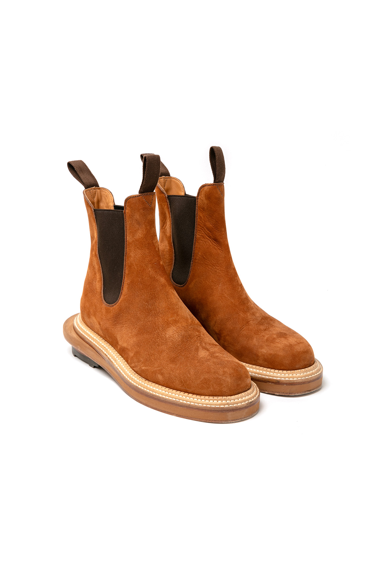 今回のコラボでは、J.M. WESTON のアイコニックなアイテムであるローファーとサイドゴアブーツを再解釈した2つのモデルが登場。カーフレザーのローファーは、ミュールタイプにもなる快適なデザインに。上品で洗練されたシルエットのサイドゴアブーツは、カーフレザーに加え、ヌバックも素材違いで展開。