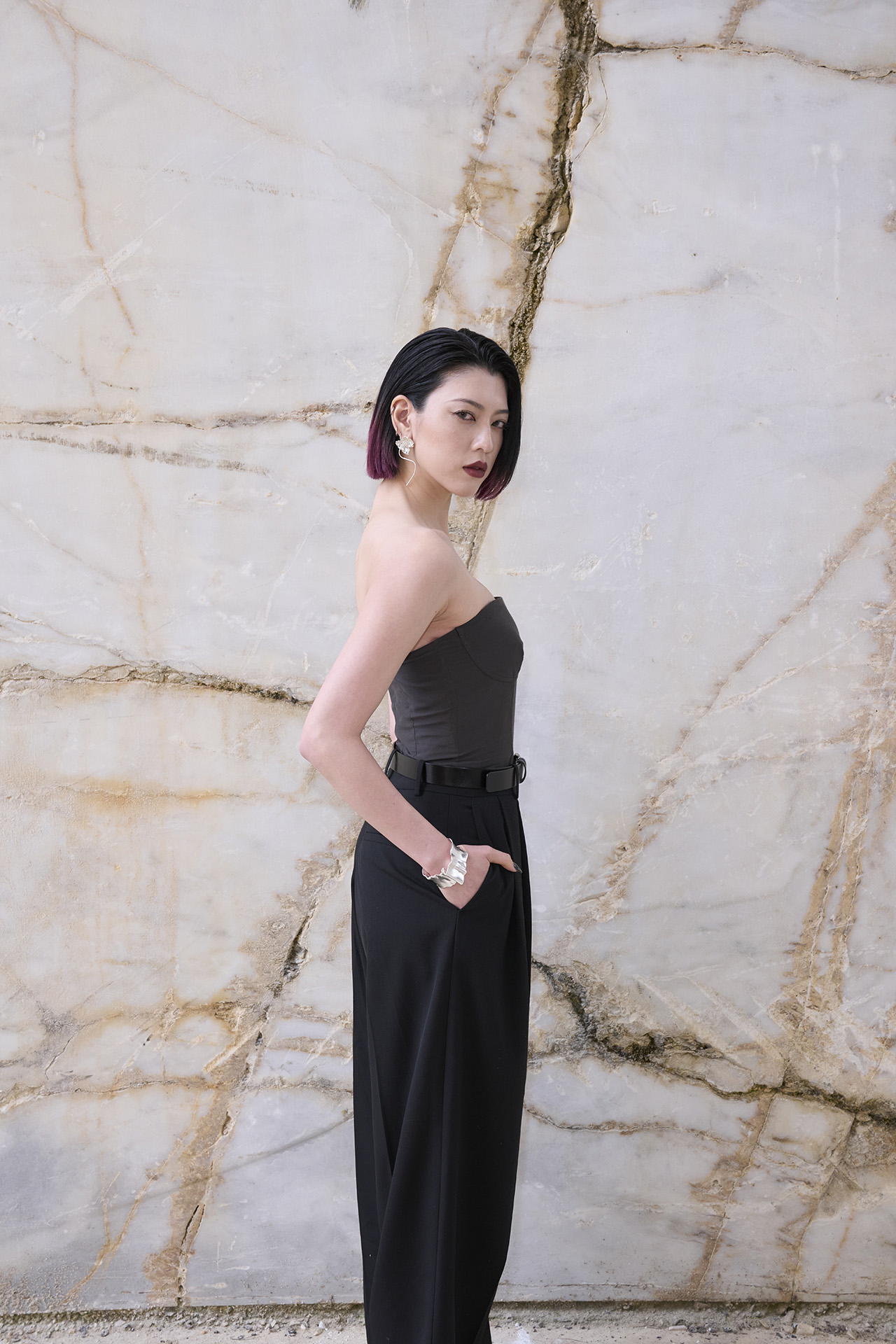 ショー後、ローンチとなったばかりの新作に身を包み、ディナー会場へと集結したゲストたち。会場にて、三吉は今回のショーについて「ひらひらと舞うようなディテールやマーブル柄が素敵で、どんな日常にもモダンに馴染むルックがたくさんあったので、このまま街を散策したくなりました。」と答えてくれた。