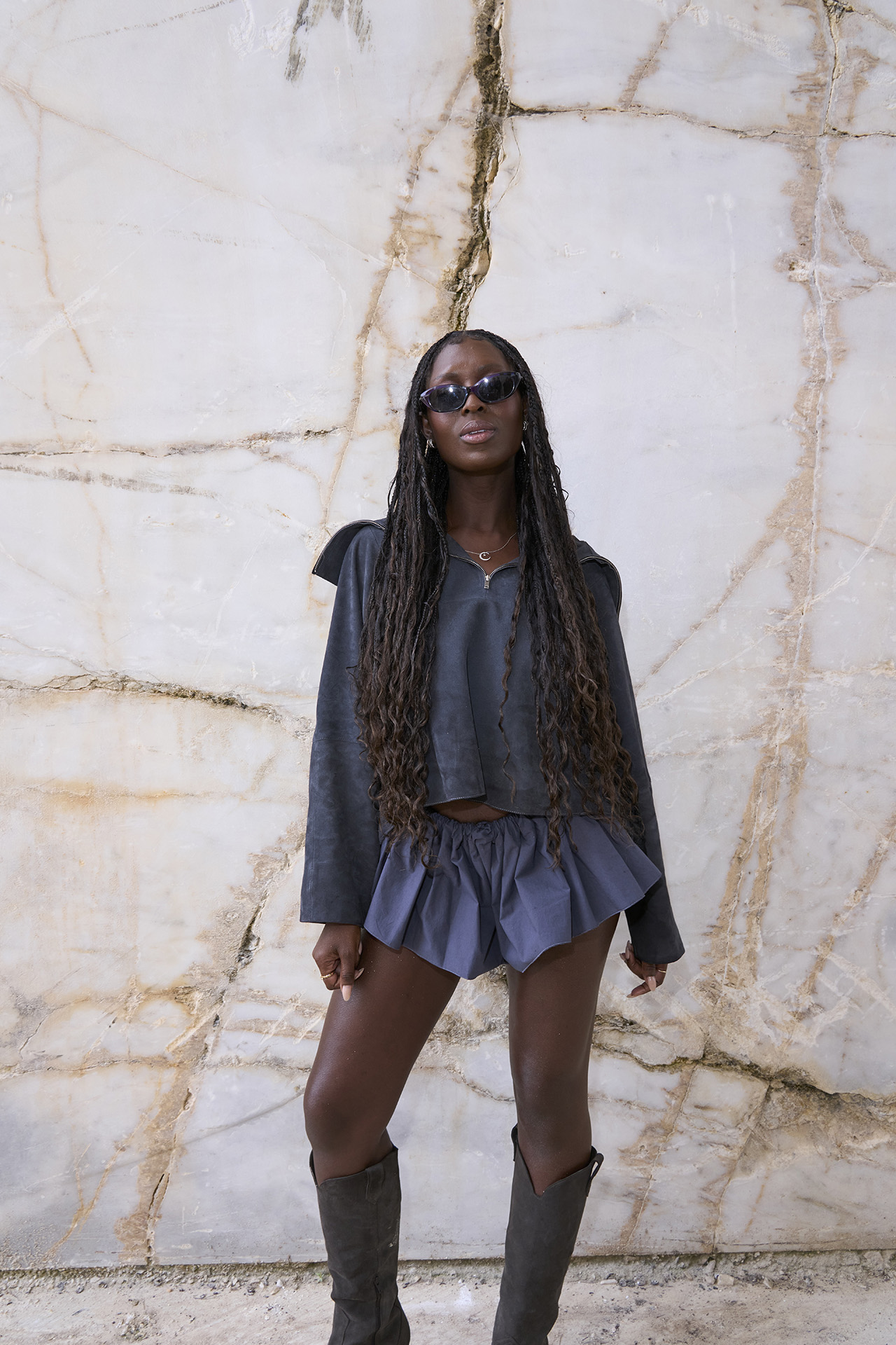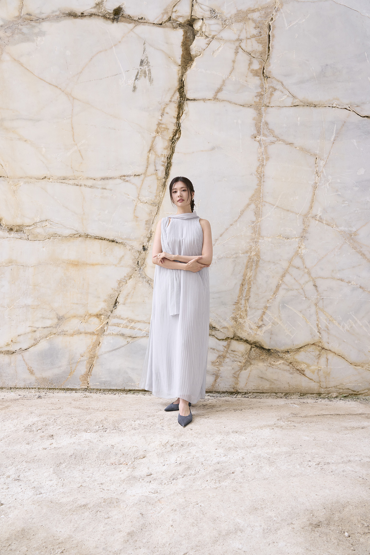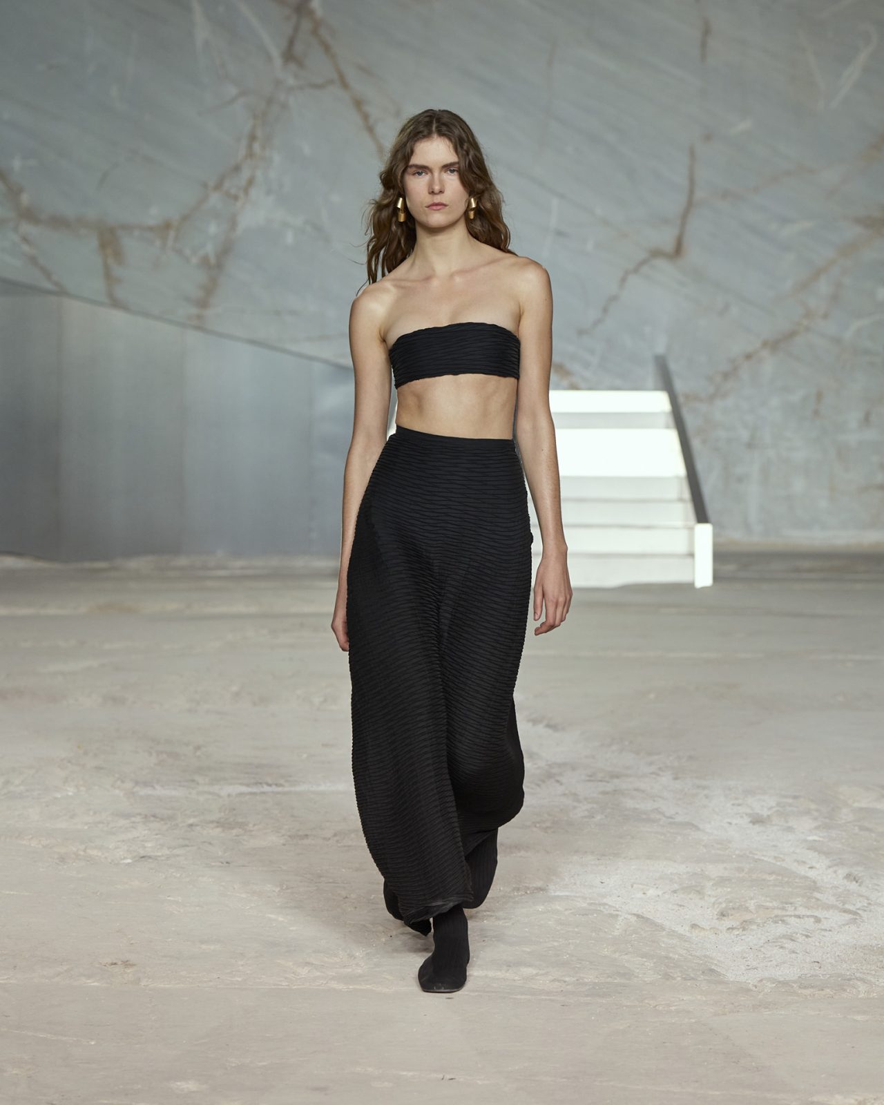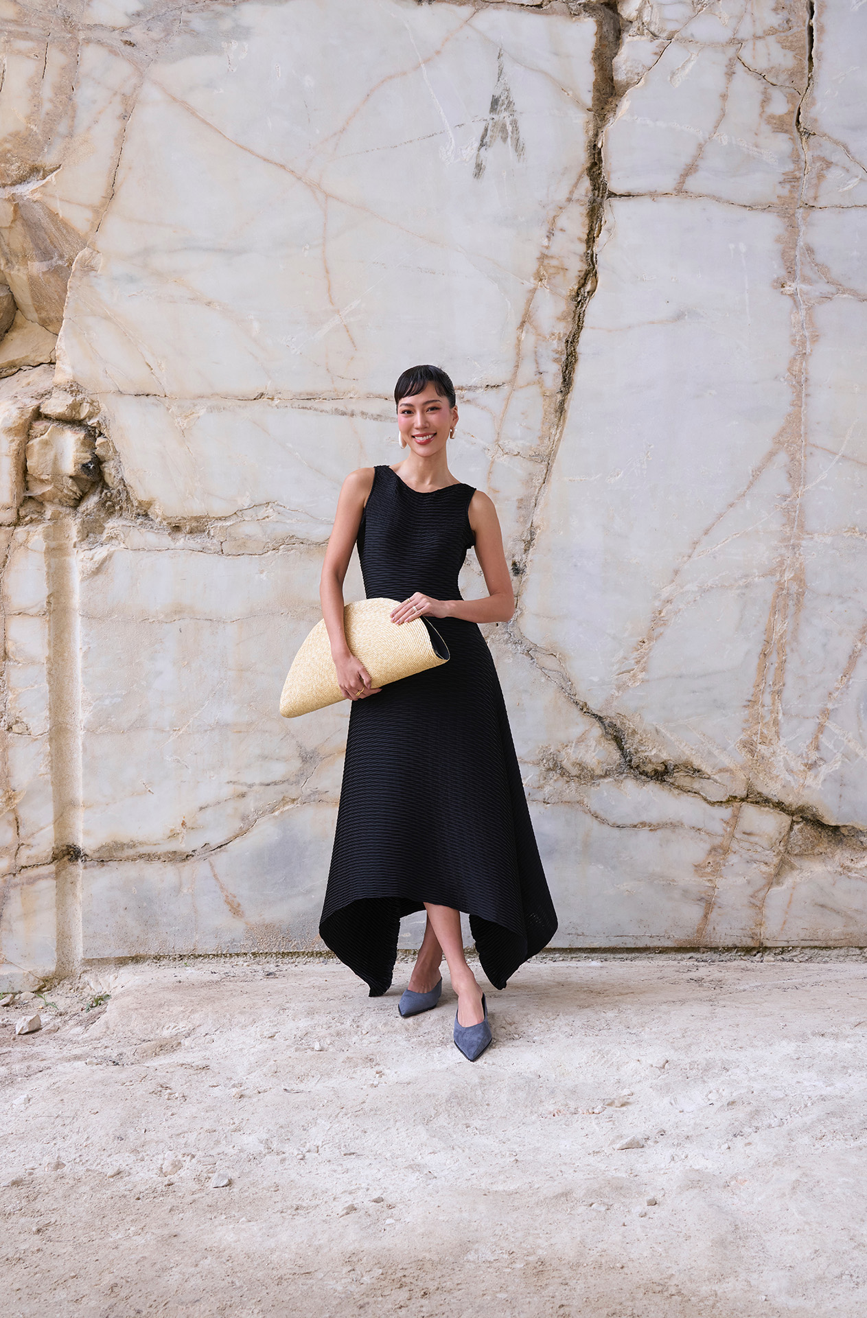 今回の舞台になったのは、パルテノン神殿などに使われる大理石が採掘されたディオニソス大理石採石場。大理石に囲まれた会場が、コンセプチュアルでありながら意外性のあるコントラストを生み、コレクションのクリーンなミニマリズムさと彫刻的なラインを強調する。