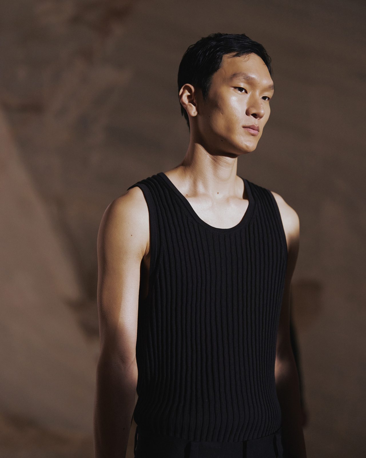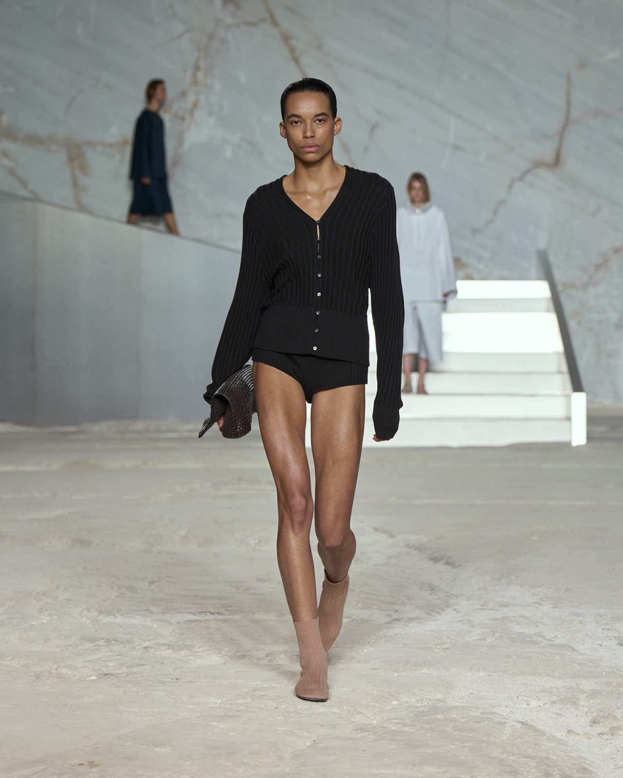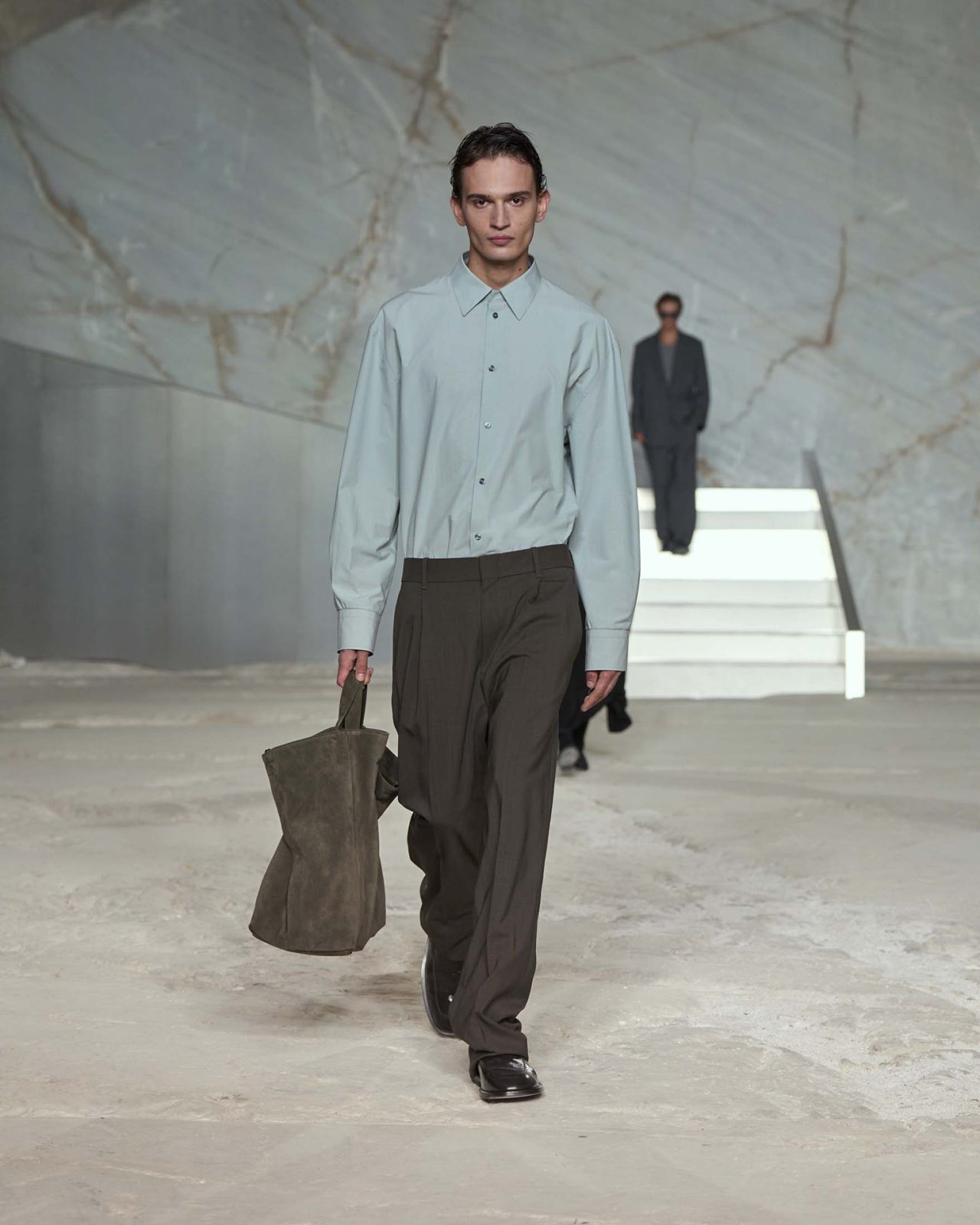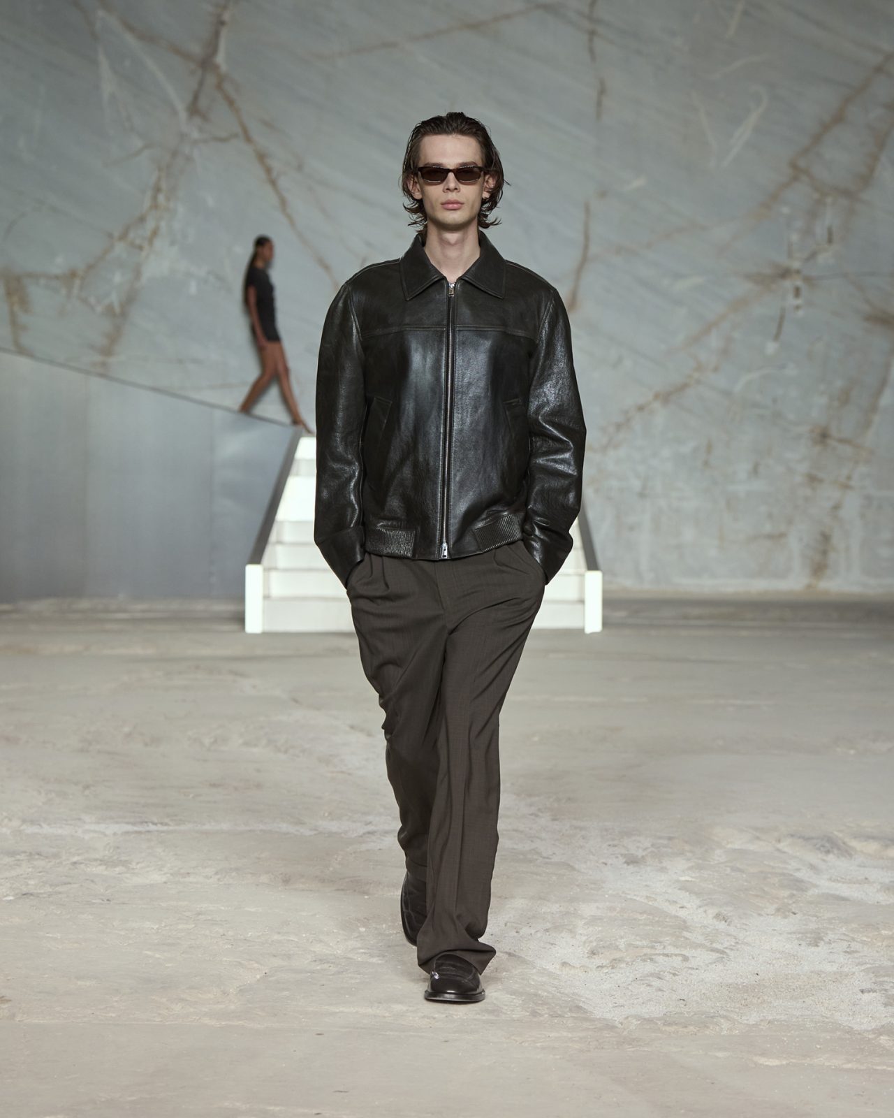 メンズウェアでは、シンプルながらも機能的なアイテムたちが登場。クラシックなテーラリングがノースリーブに落とし込まれ、伝統的なデザインに新たな視点をもたらす。夏の定番でもある、シルクのセットアップは気取らないエレガンスさを、バミューダショーツは洗練されながらもリラックスしたムードを演出。エッセンシャルアイテムの上に重ねられたサマーレザージャケット、柔らかなレザーサンダルやミュールローファーが、現代的なエッジを加えてくれる。