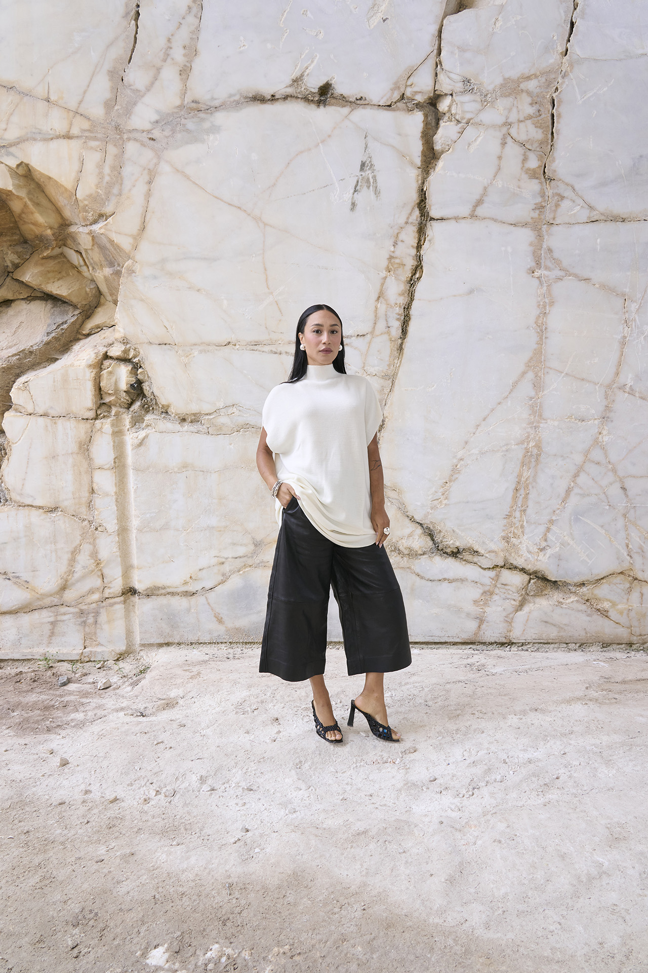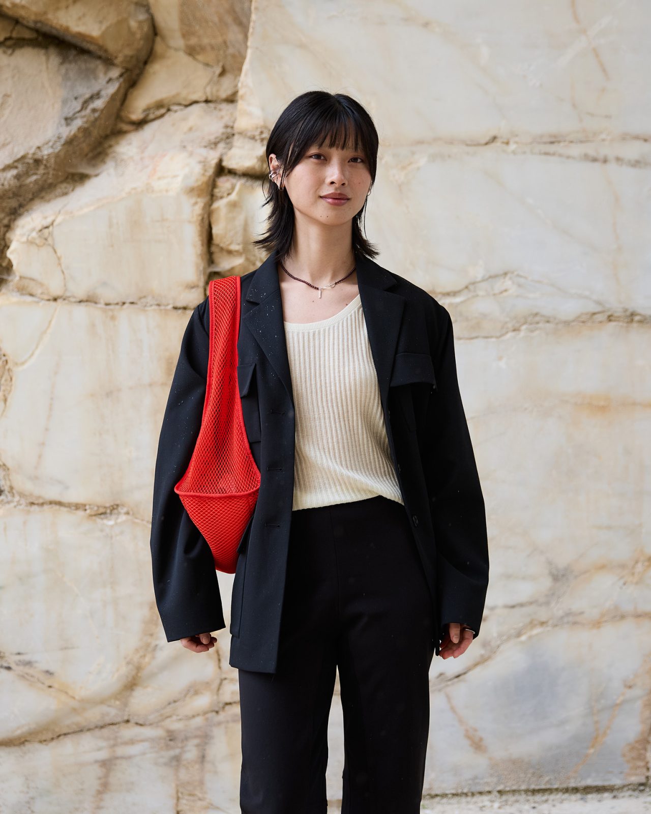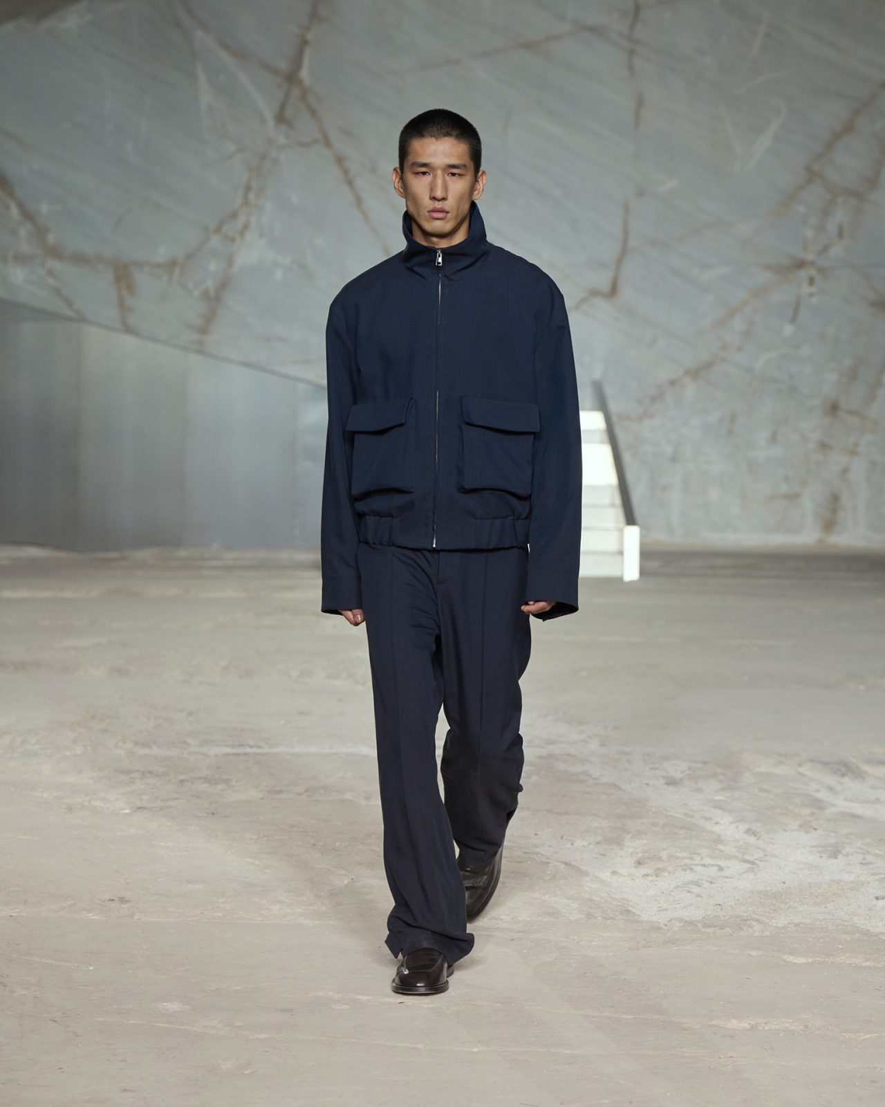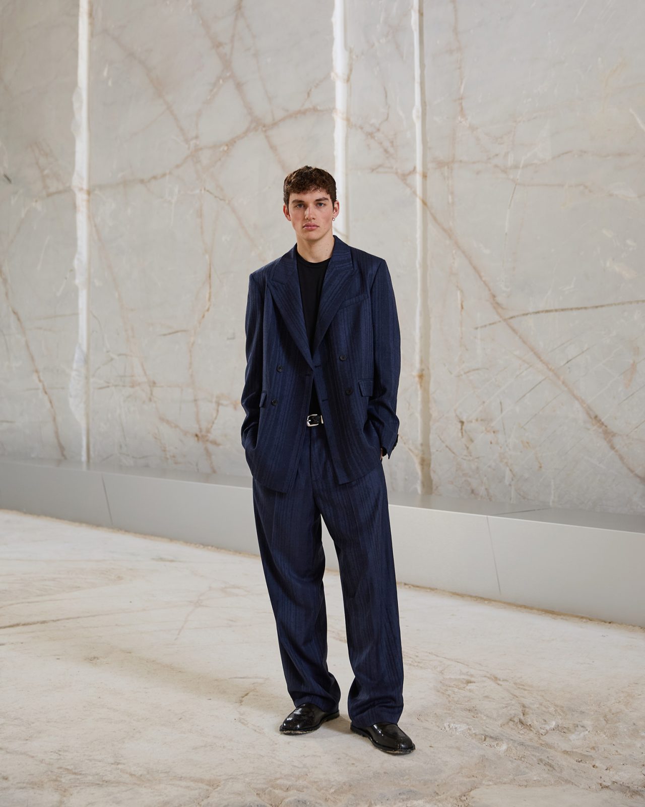 メンズウェアでは、シンプルながらも機能的なアイテムたちが登場。クラシックなテーラリングがノースリーブに落とし込まれ、伝統的なデザインに新たな視点をもたらす。夏の定番でもある、シルクのセットアップは気取らないエレガンスさを、バミューダショーツは洗練されながらもリラックスしたムードを演出。エッセンシャルアイテムの上に重ねられたサマーレザージャケット、柔らかなレザーサンダルやミュールローファーが、現代的なエッジを加えてくれる。