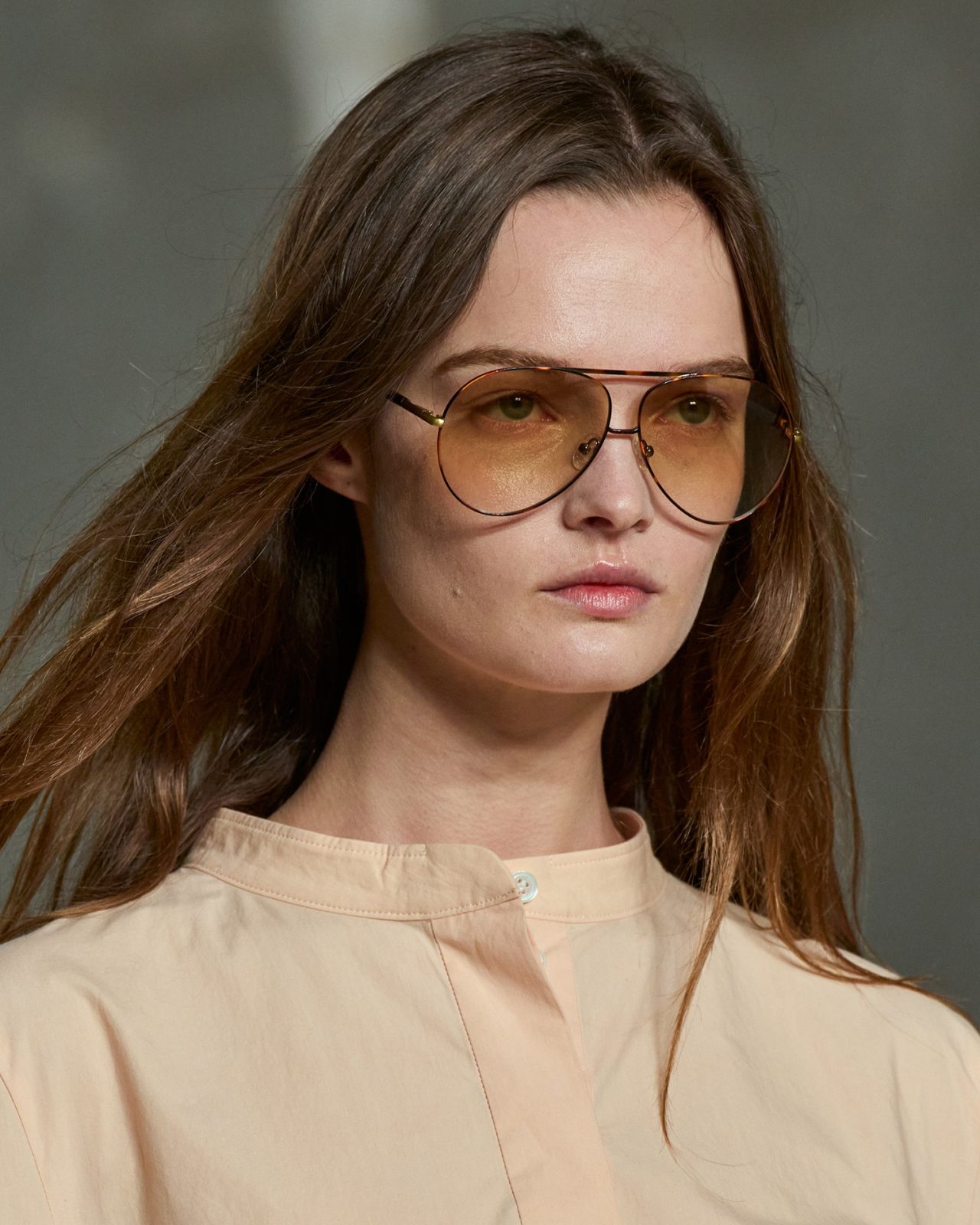 今シーズンでは、ブランドらしい定番のアイテムを自由な感性で再解釈したほか、ルネサンス絵画が着想源のマーブル模様のプリントもお目見え。花のつぼみをレンズに押し付けて作られ、繊細なディテールが表現された。