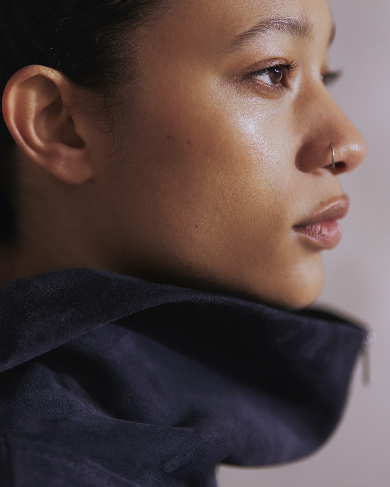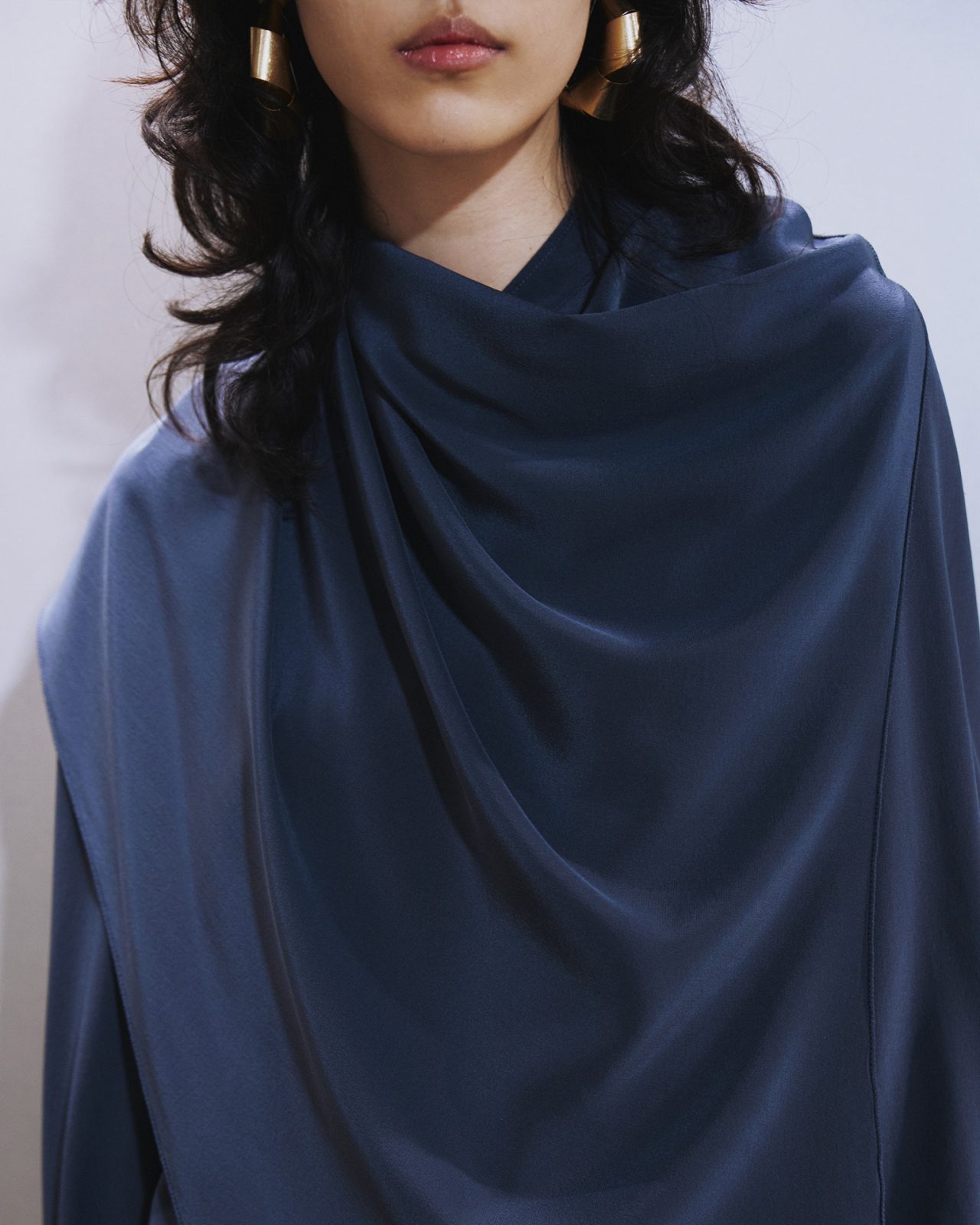 また、オフホワイトやアースカラー、ダークブラウンが基調となった本コレクション。くすんだブルーから豊かなネイビーへと移行し、テラコッタがこれからの季節の装いに明るさを添えてくれる。
