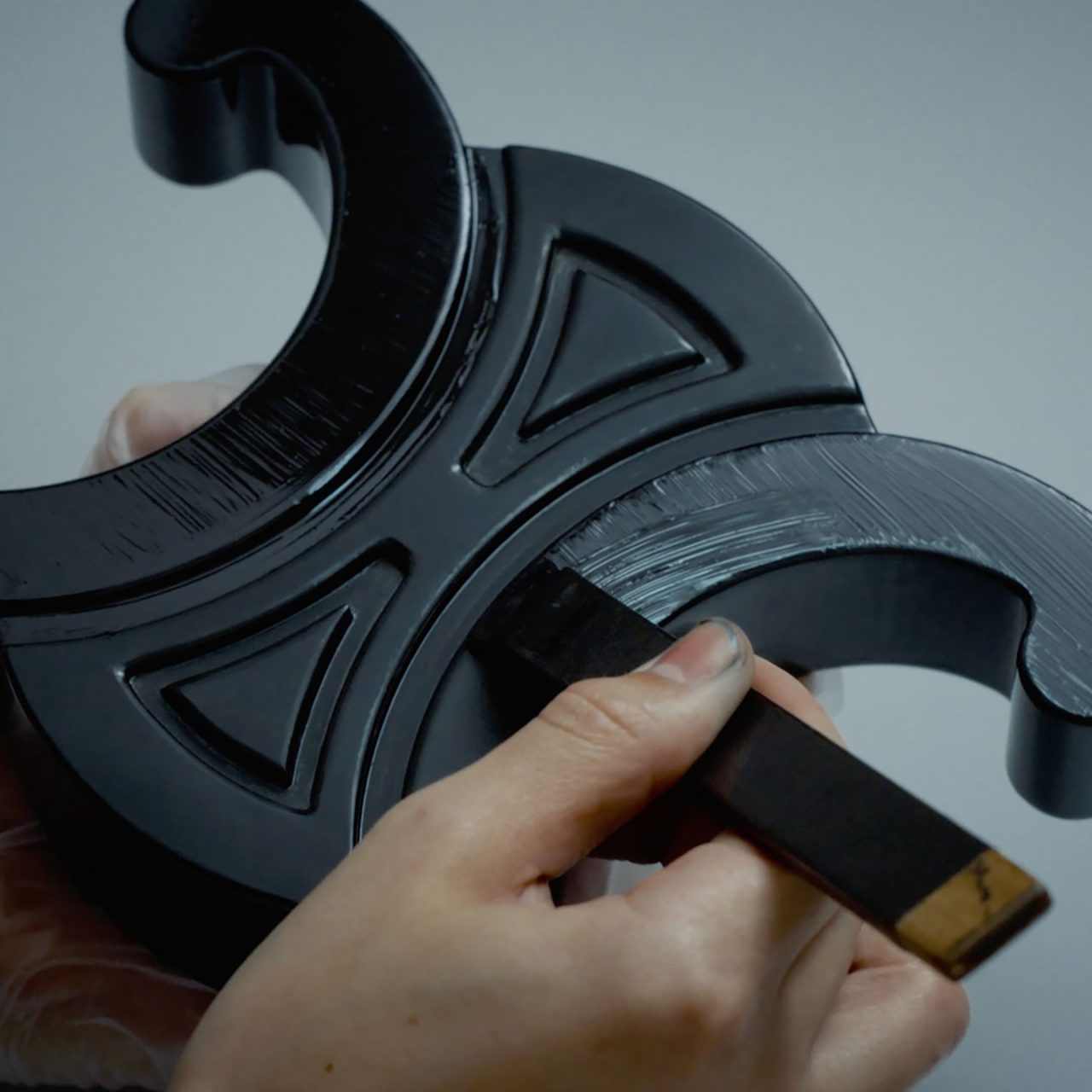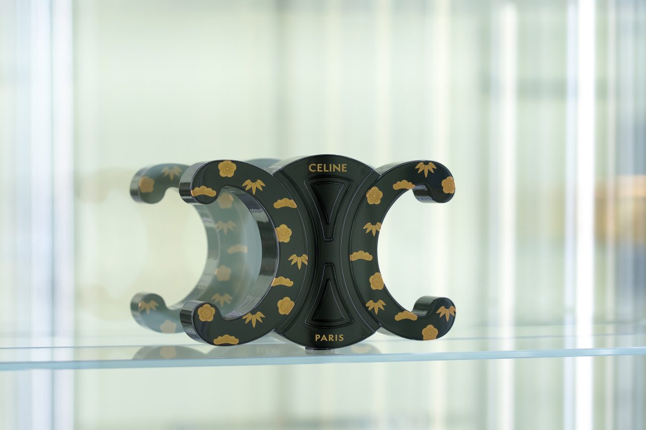 本展覧会は、日本のアーティストと CELINE との文化的な交流を表現。日本の伝統工芸である「漆」と、メゾンのエンブレムである「トリオンフ」を再解釈し、匠の技と CELINE が築いてきた日本との深い絆に光を当てている。