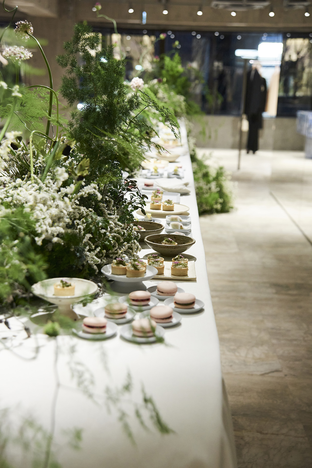 また、パリを拠点とするクリエイティブ・カリナリー・スタジオ「We Are Ona」がコンテンポラリーアートとガストロノミーを融合した、ポップアップレストランがスペシャルなおもてなしを披露。「We Are Ona」との日本初となるコラボレーションでは、ミシュラングリーンスターを獲得した、Sayaka Sawaguchi (サヤカ・サワグチ) シェフによる季節感あふれる斬新な食とデザインを演出。DJ デュオ、Masaya Fantasista (マサヤ・ファンタジスタ) と Mikey Varot (マイキー・ヴァロット) によるサウンドスケープ、フラワーアーティストである edenworks (エデンワークス) の篠崎 恵美によるフラワーインスタレーションとともに、JIL SANDER の一夜を彩る。