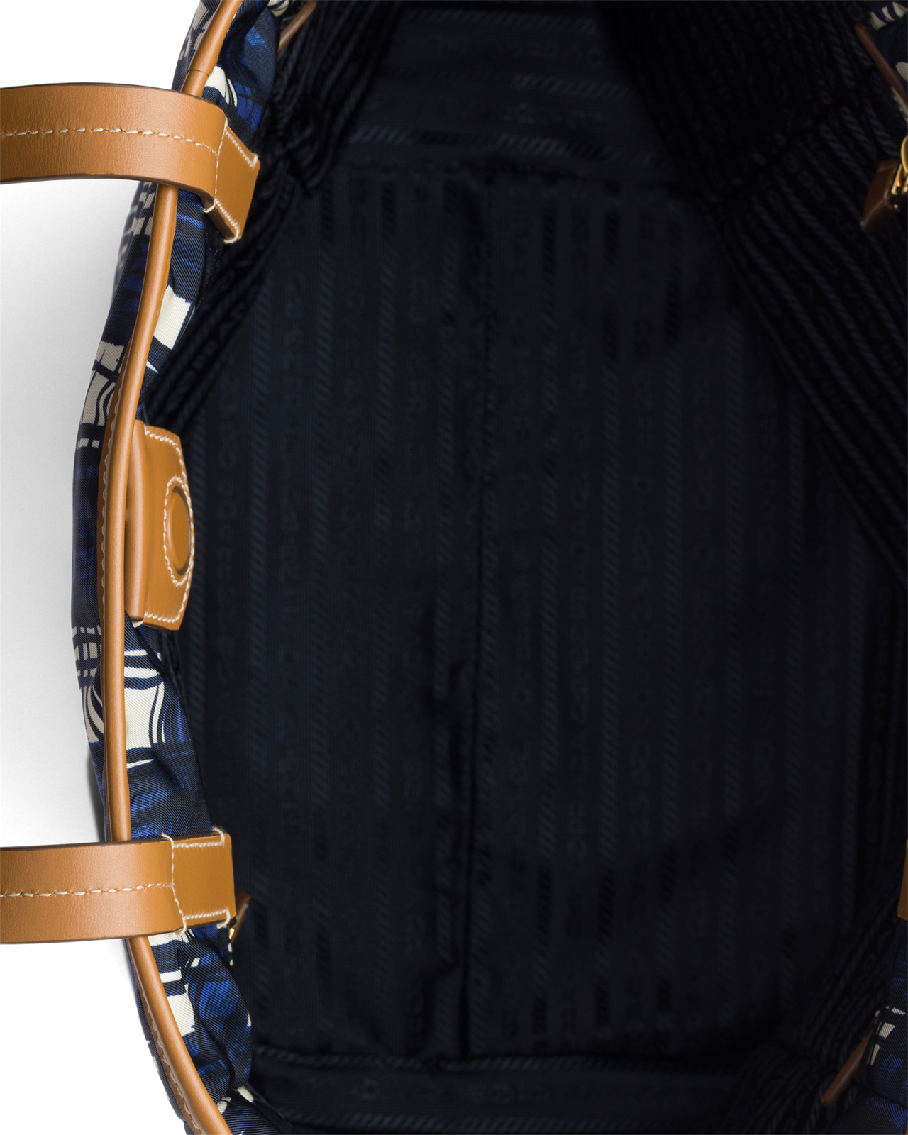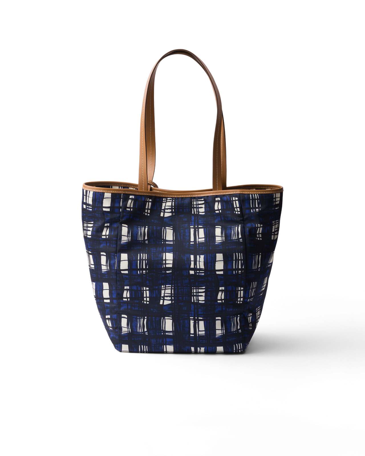 幾何学的なラインと不規則なストロークで描かれたモダンなプリントが目をひくこのトートバッグ。ゆとりのある実用的なフォルムに、レザーディテールと職人技が宿る繊細なステッチを施し、上質な仕上がりに。中央には艶やかなエナメルメタルのトライアングルロゴをあしらい、上品なアクセントを添えた。また、本アイテムはサステナブルな再生ナイロン「Re-Nylon (リ ナイロン)」を使用。環境に配慮しながらも、洗練されたデザインを実現した。国内でしか手に入らない特別なバッグをチェックしてみて。